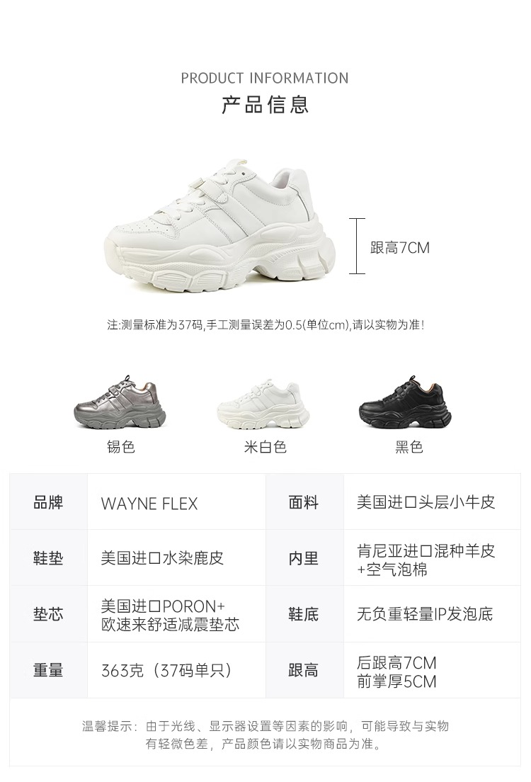 厚底老爹鞋 |Wayne Flex韦恩时尚透气轻便小白鞋女休闲运动百搭鞋子WF3075