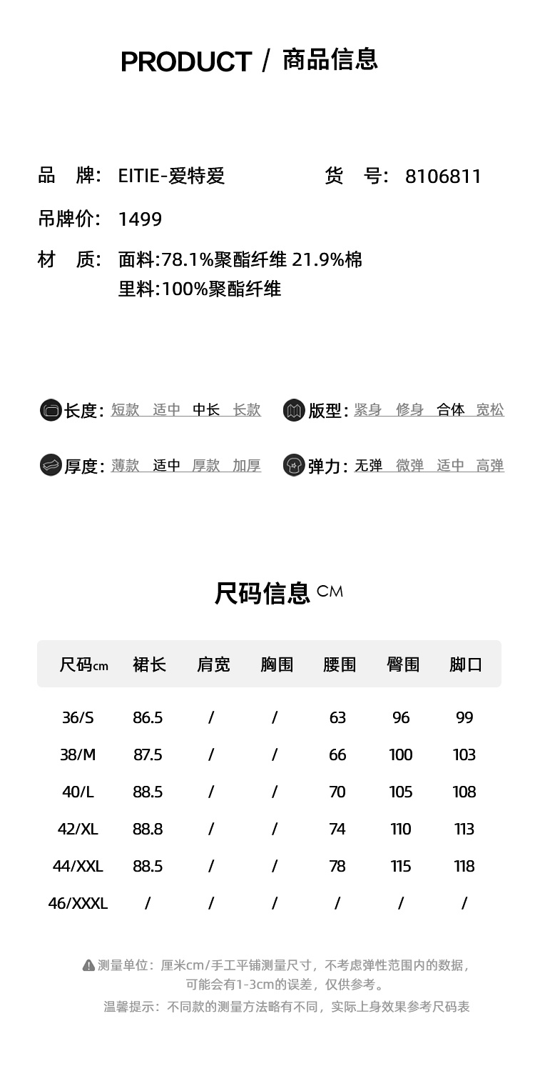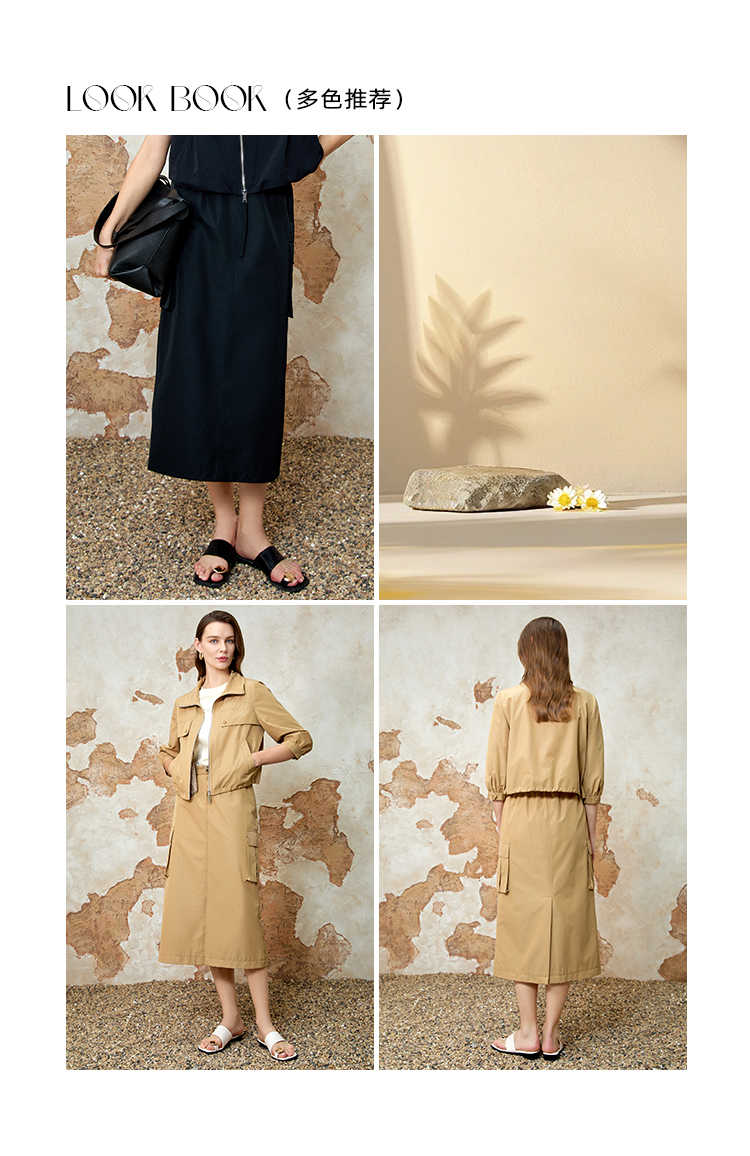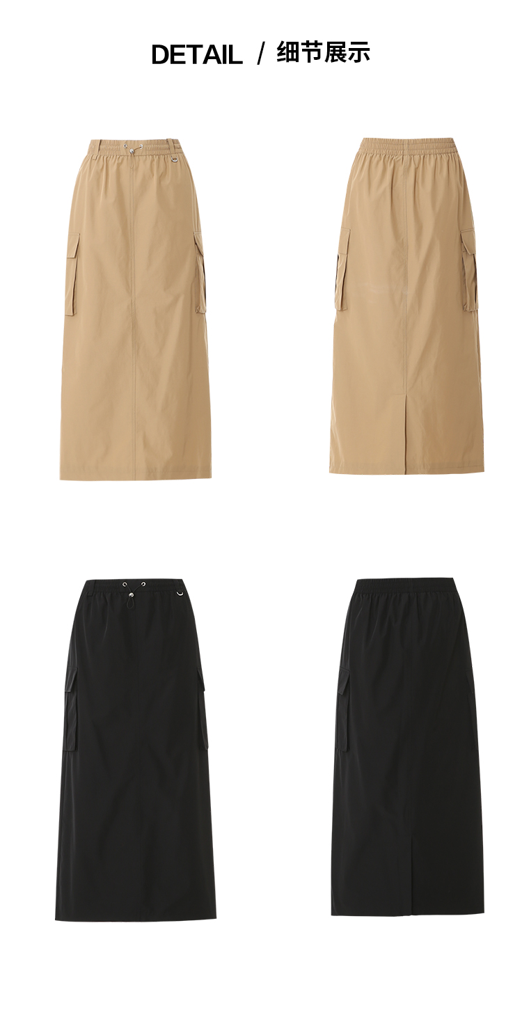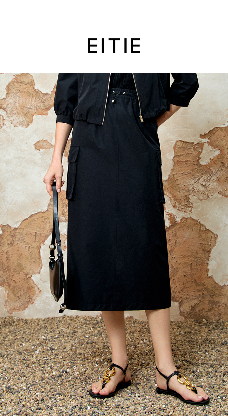 EITIE爱特爱舒适直筒抽绳松紧腰休闲显瘦半身裙春季新款8106811
