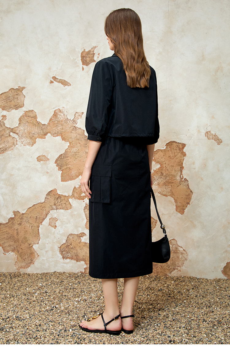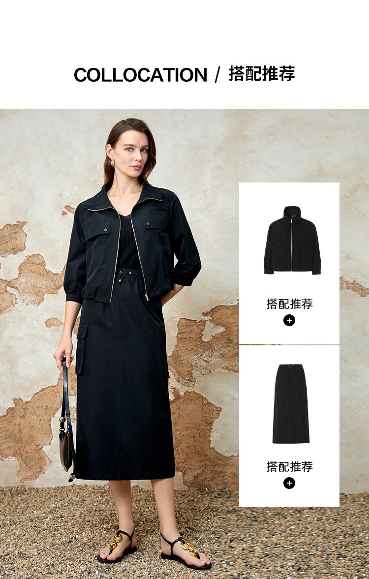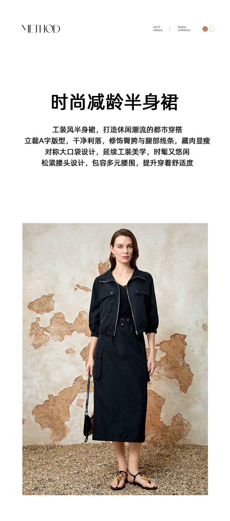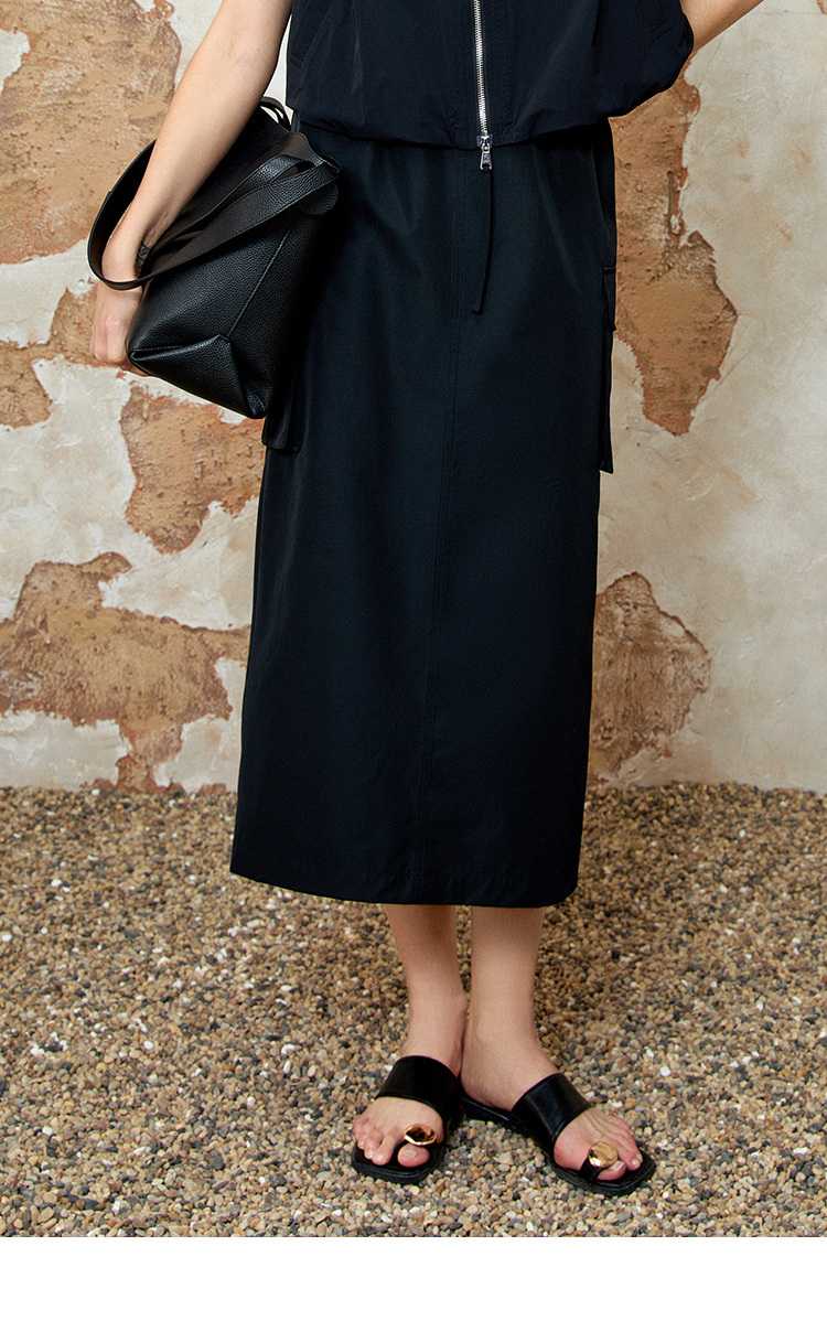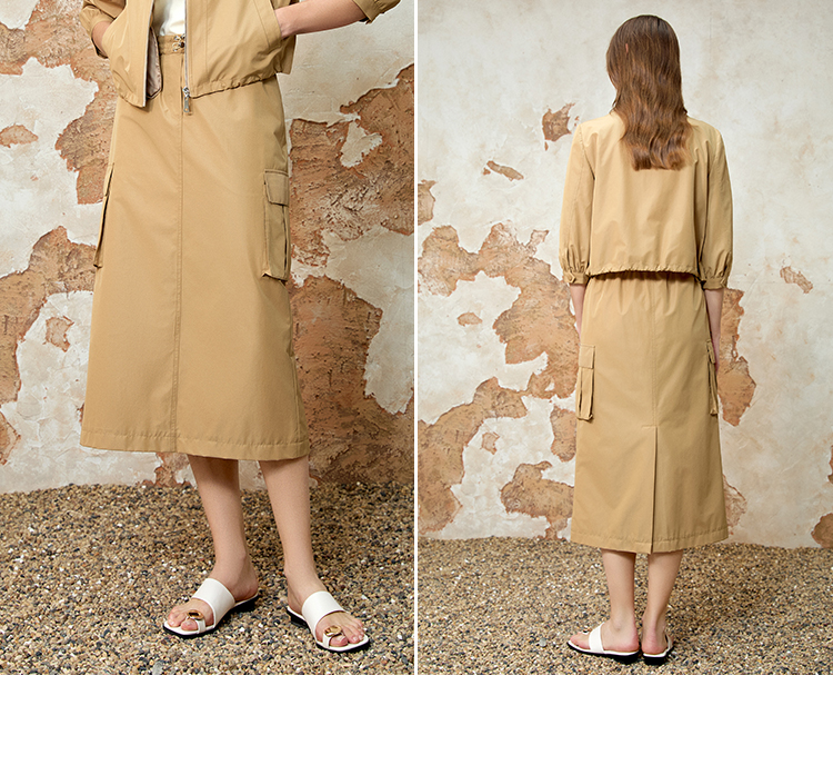 EITIE爱特爱舒适直筒抽绳松紧腰休闲显瘦半身裙春季新款8106811