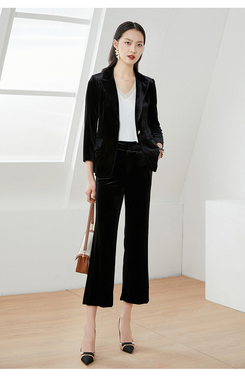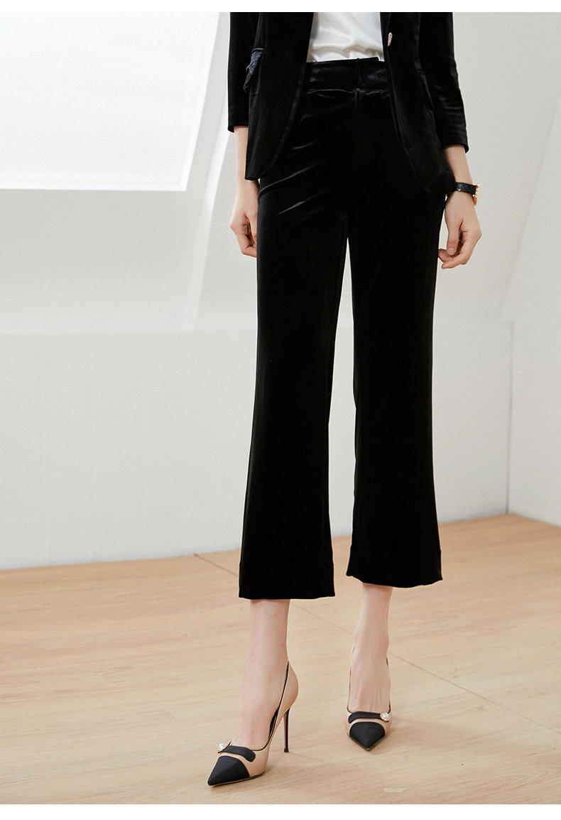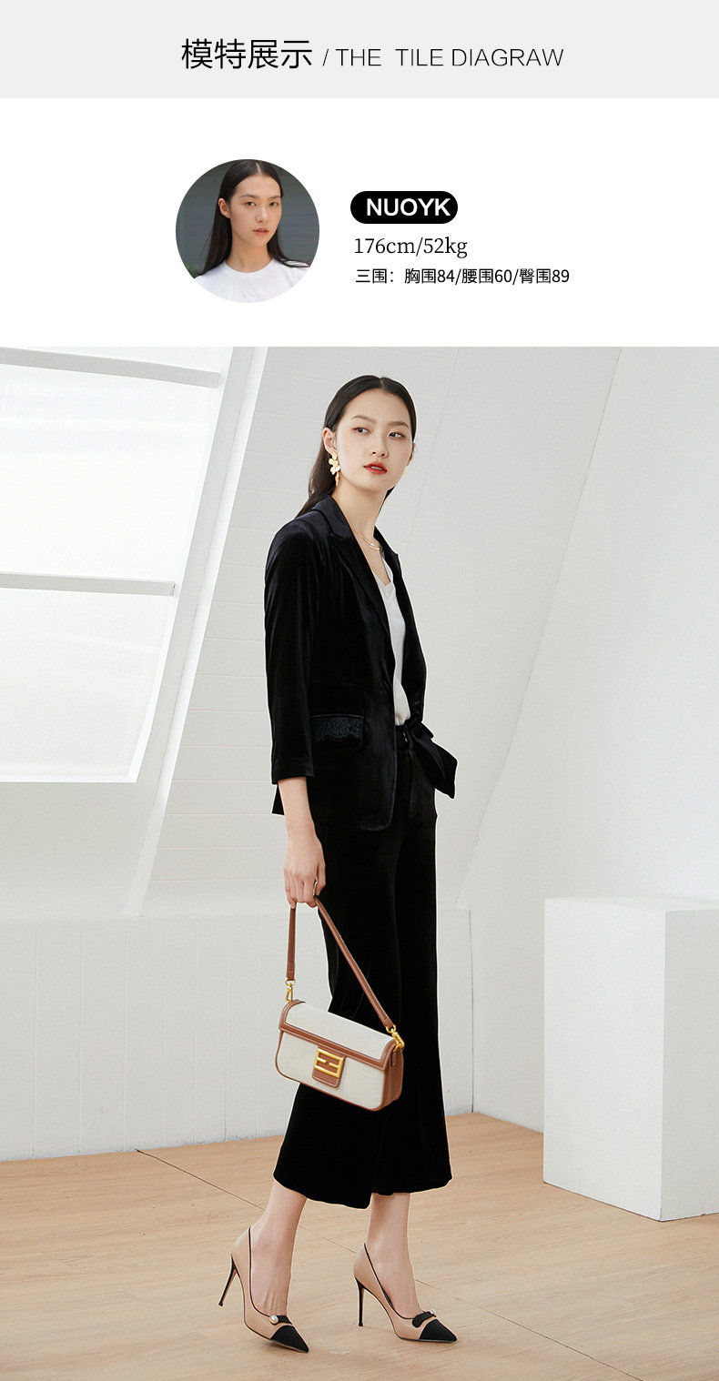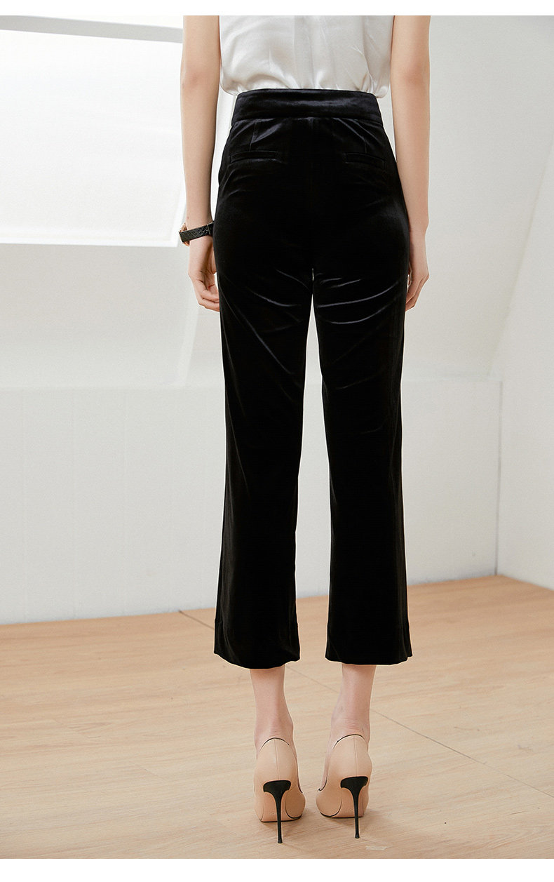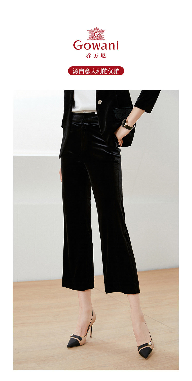 乔万尼新款金丝绒阔腿裤女高腰垂感灯芯绒直筒EI1F958