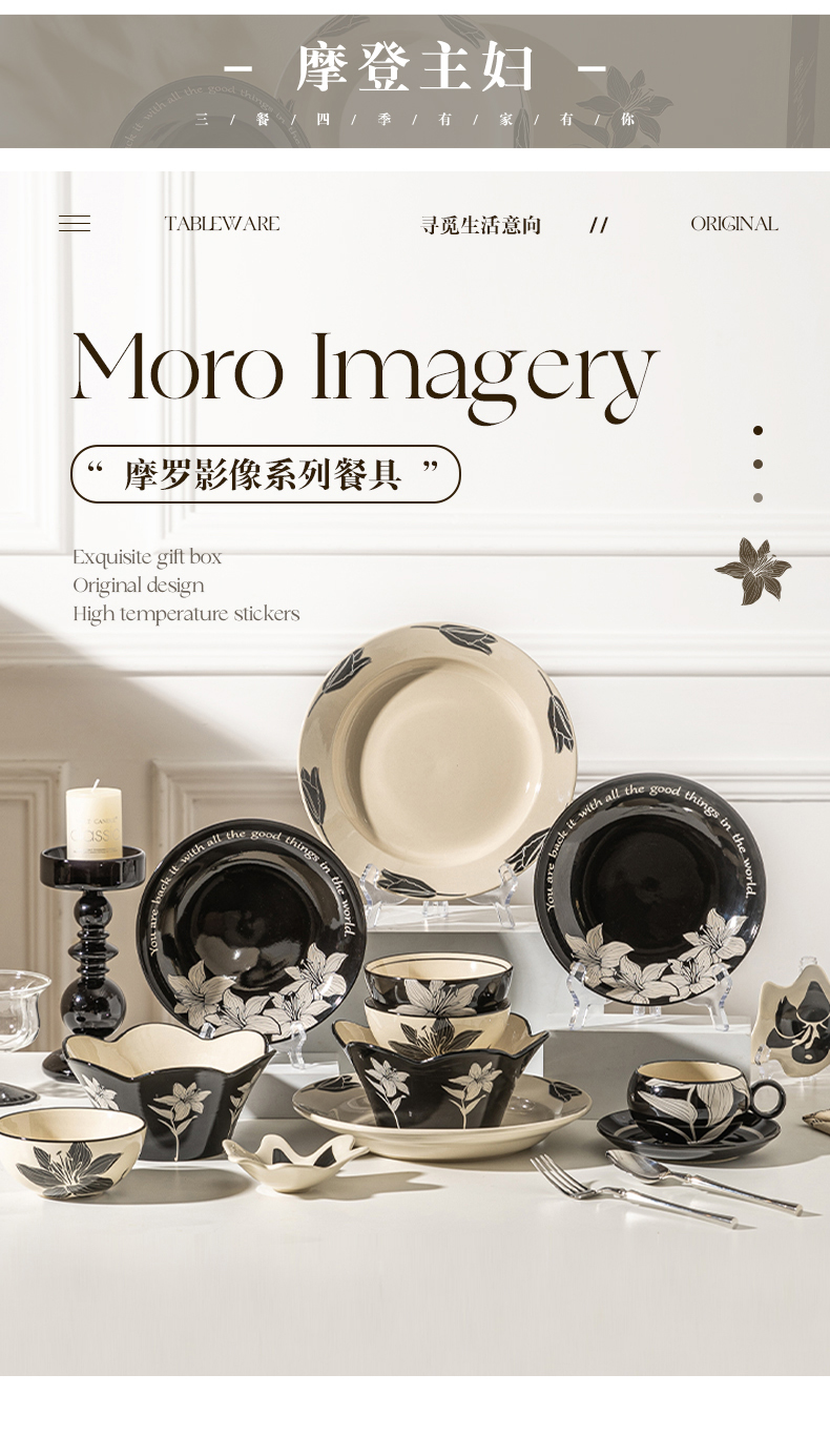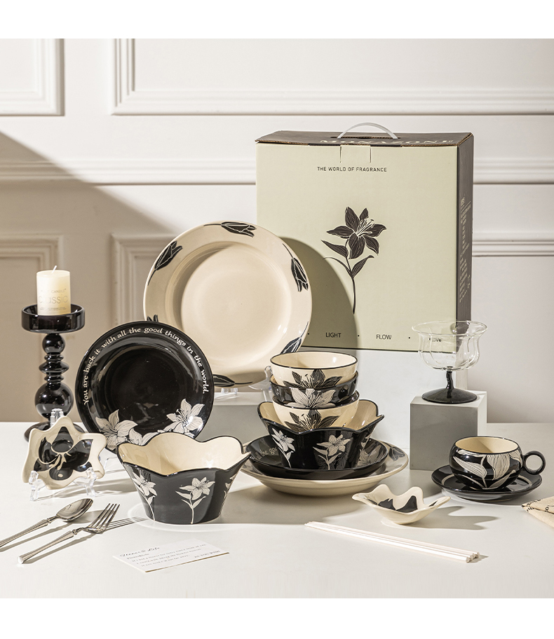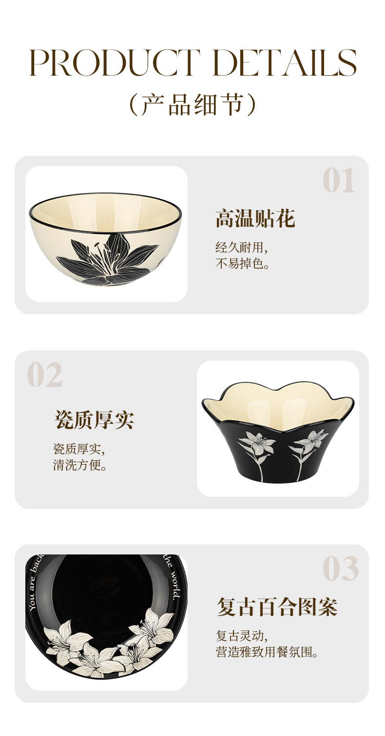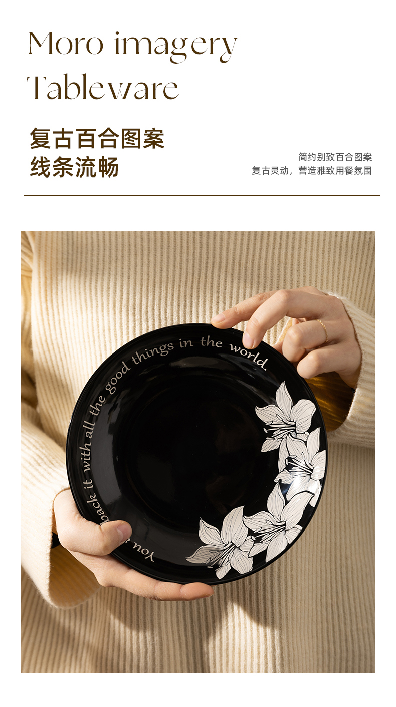 摩登主妇摩罗影像百合花餐具碗碟套装家用2023新款复古乔迁碗盘