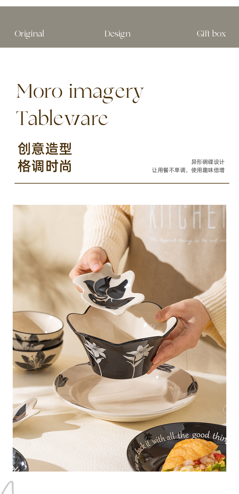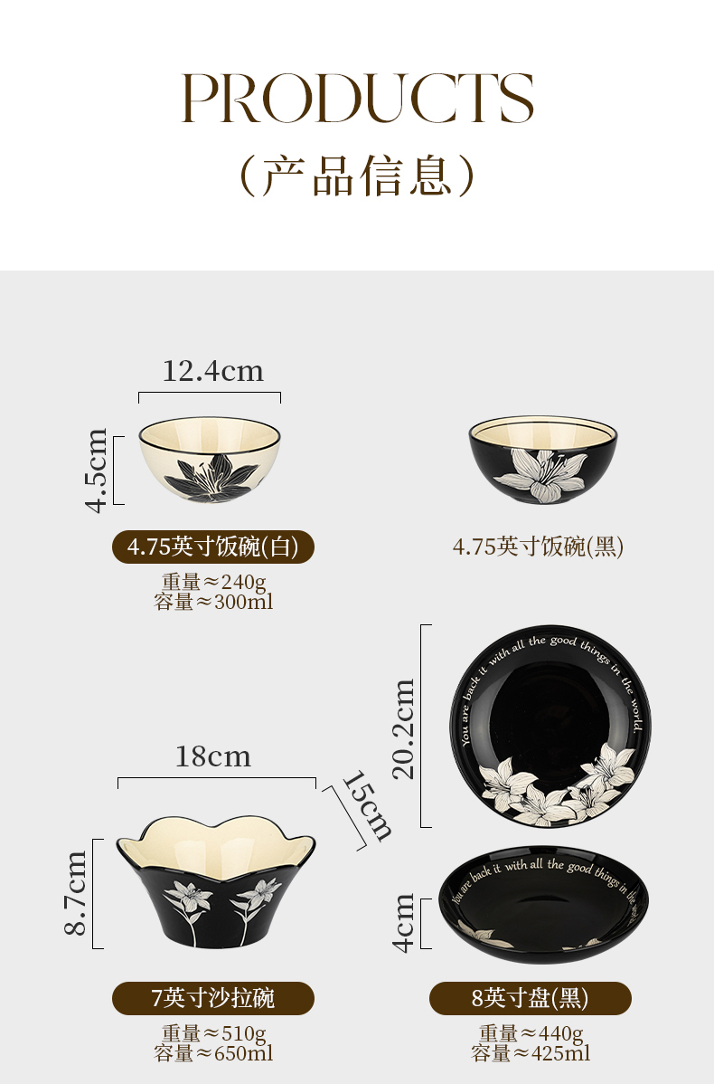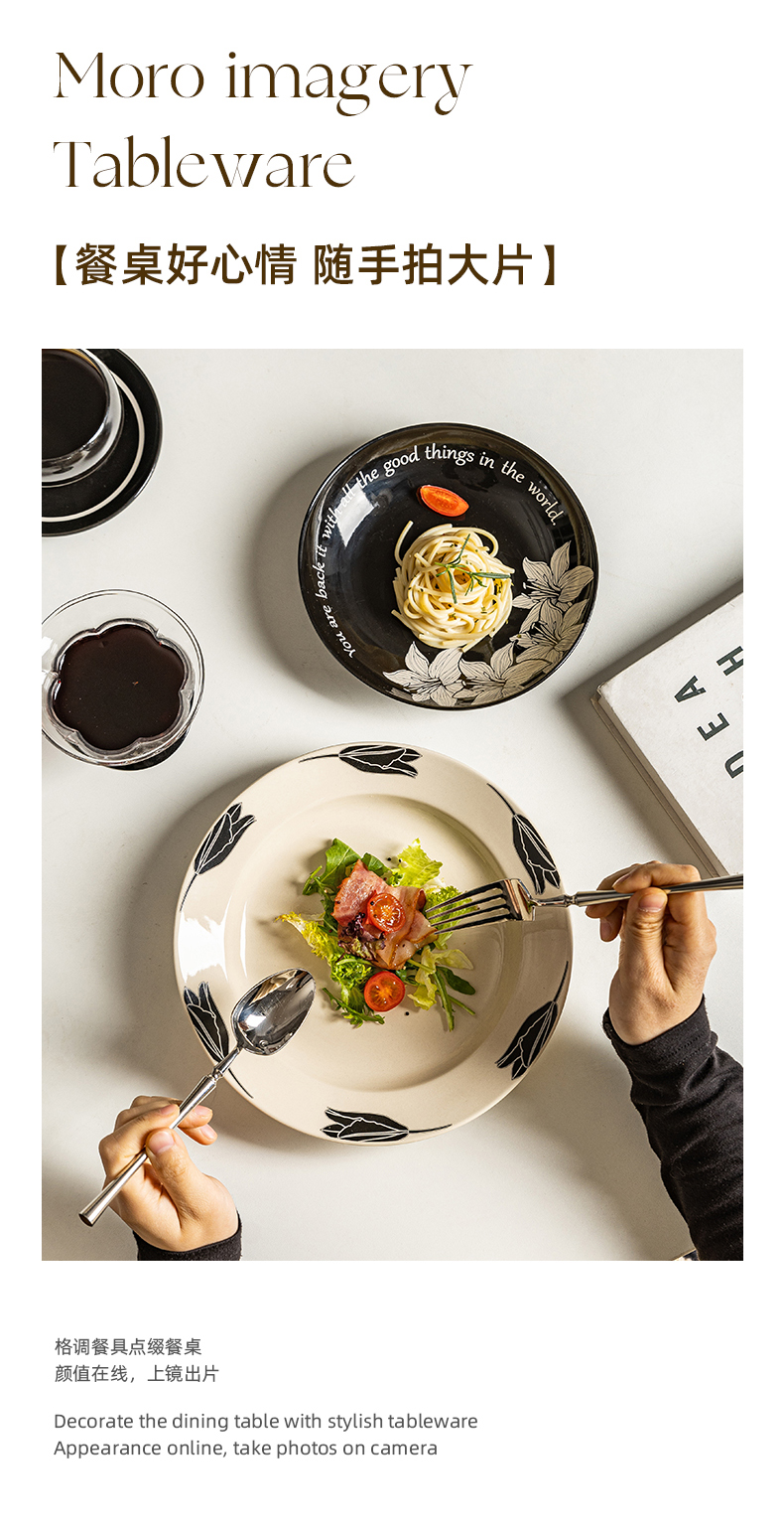 摩登主妇摩罗影像百合花餐具碗碟套装家用2023新款复古乔迁碗盘