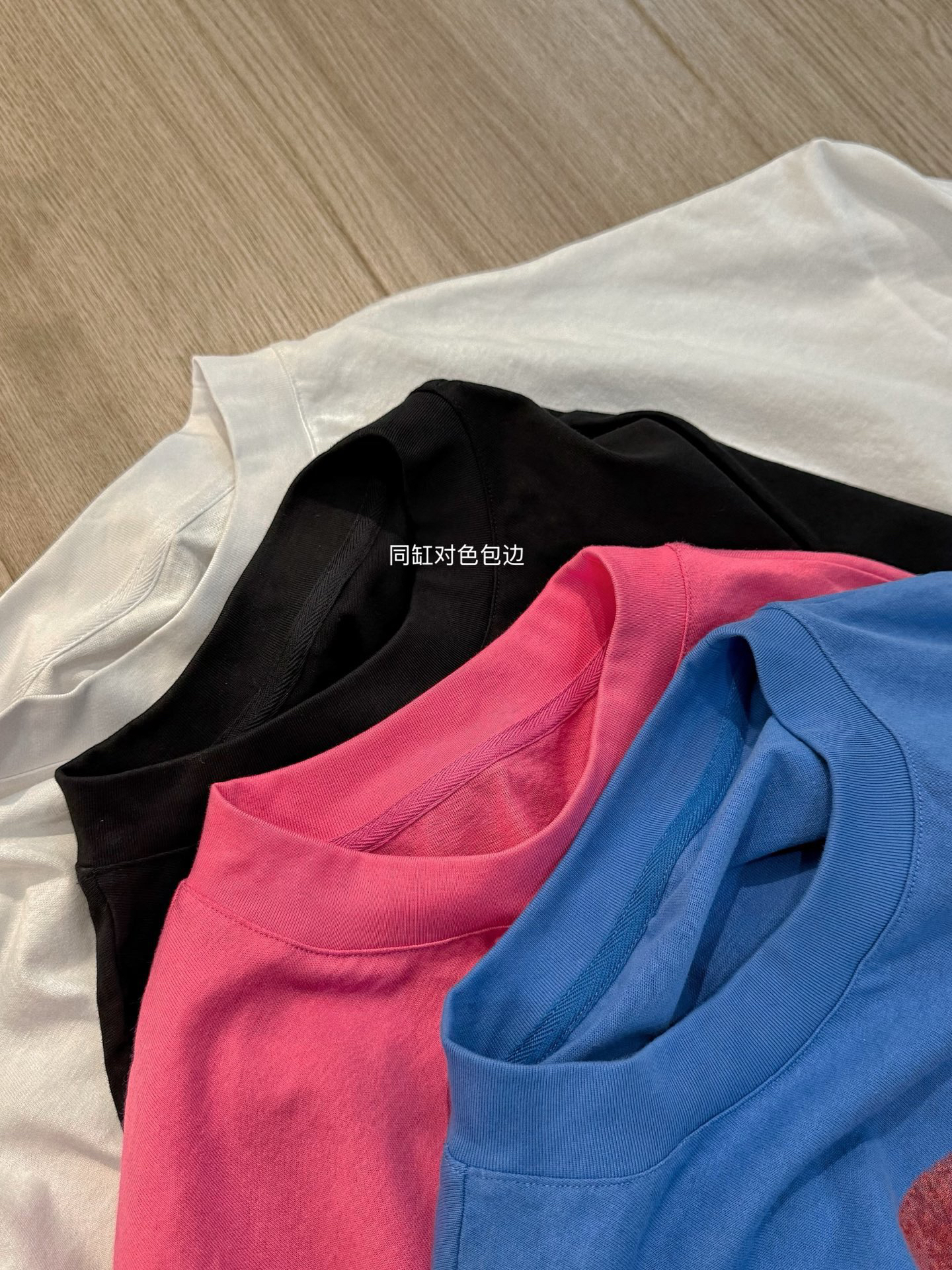 领口采用3cm加宽螺纹拼接 同缸染色螺纹 与大身配色一致 无色差!
