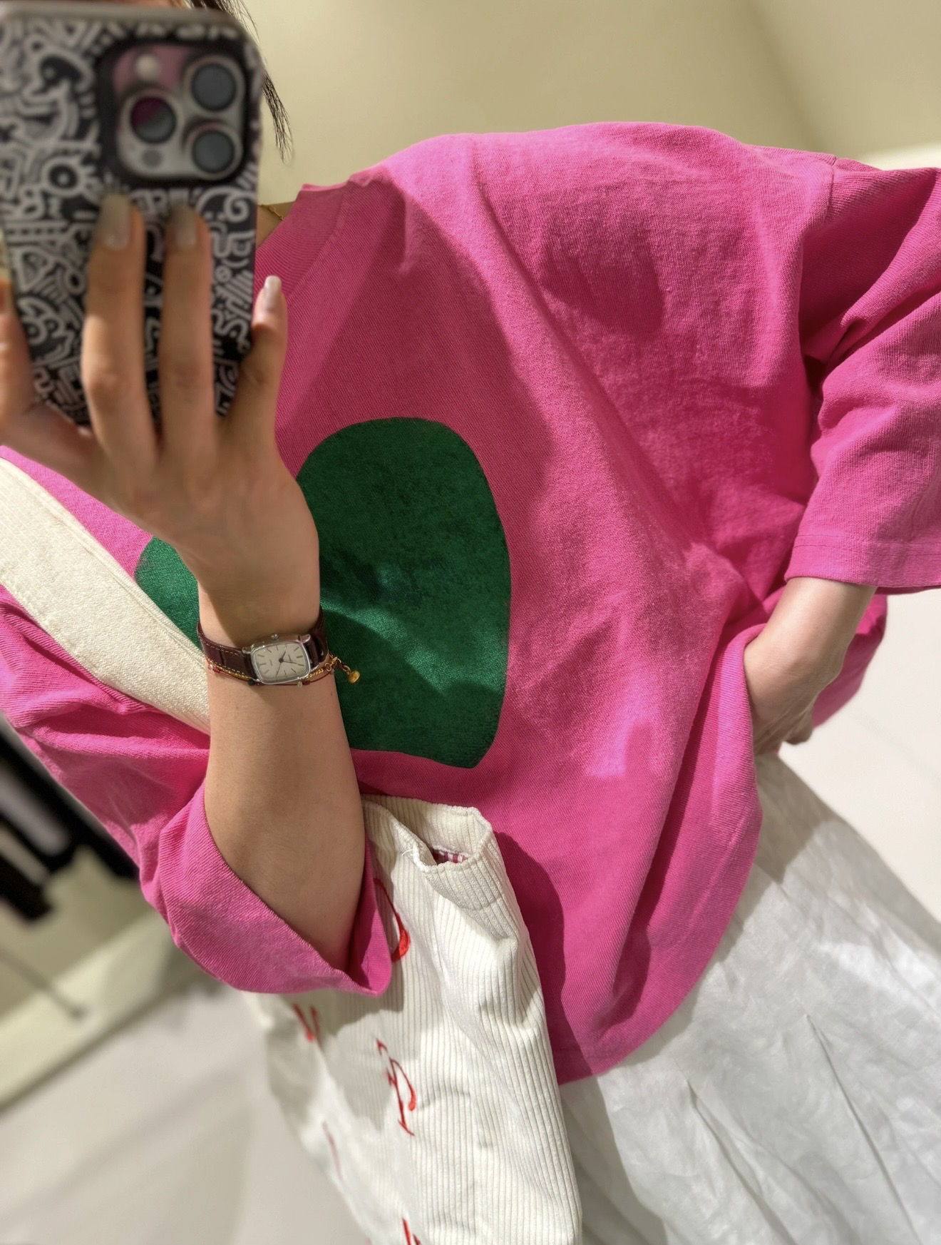 我几乎是不怎么穿粉色的一个人,但是这件上身真的无脑穿搭都好看!