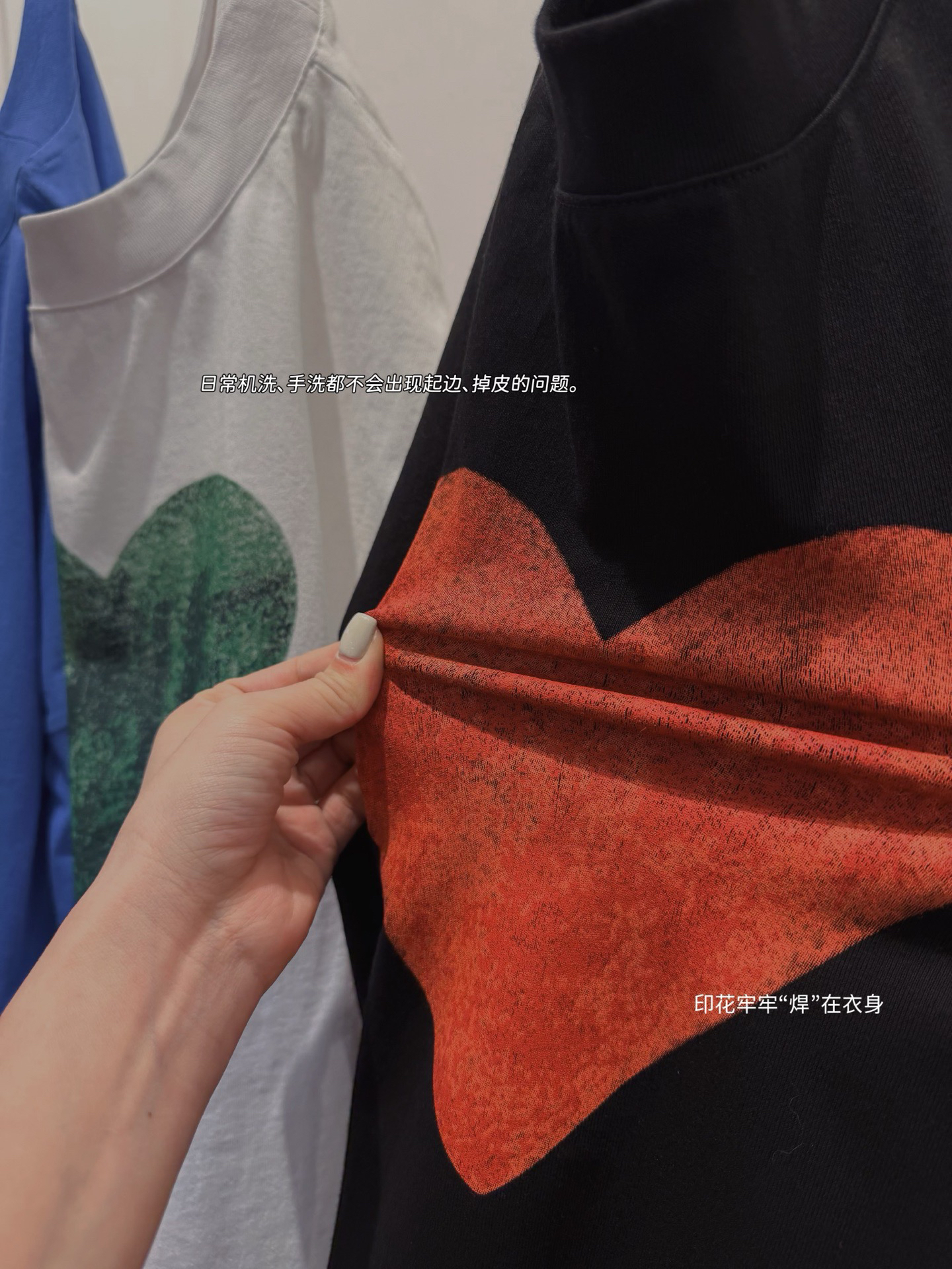 印花采用环保油墨,色彩鲜明且色牢度高,而且无毒无异味!与面料的粘合度强,不易开裂变形!印花多次洗涤后 图案饱和度依旧!