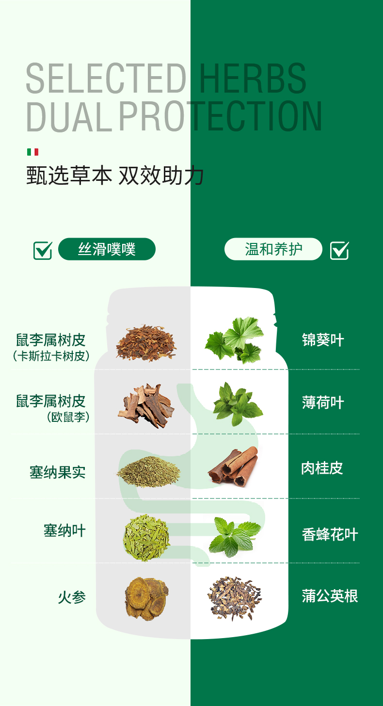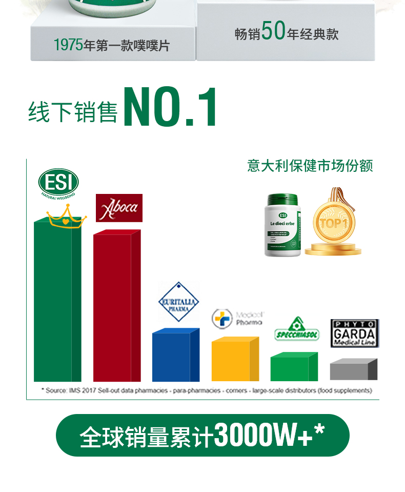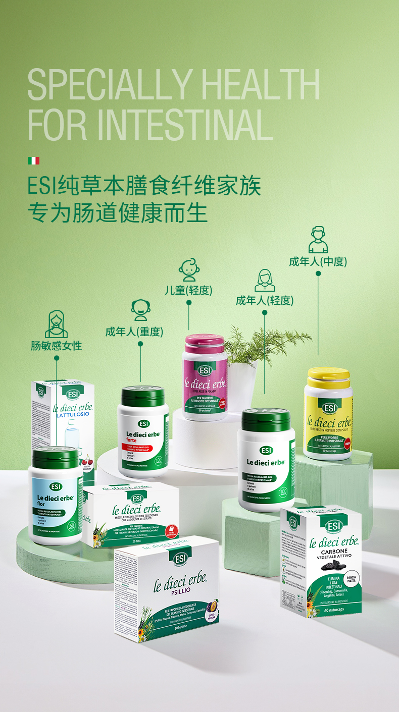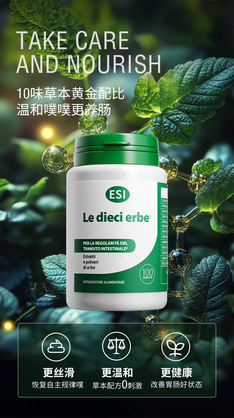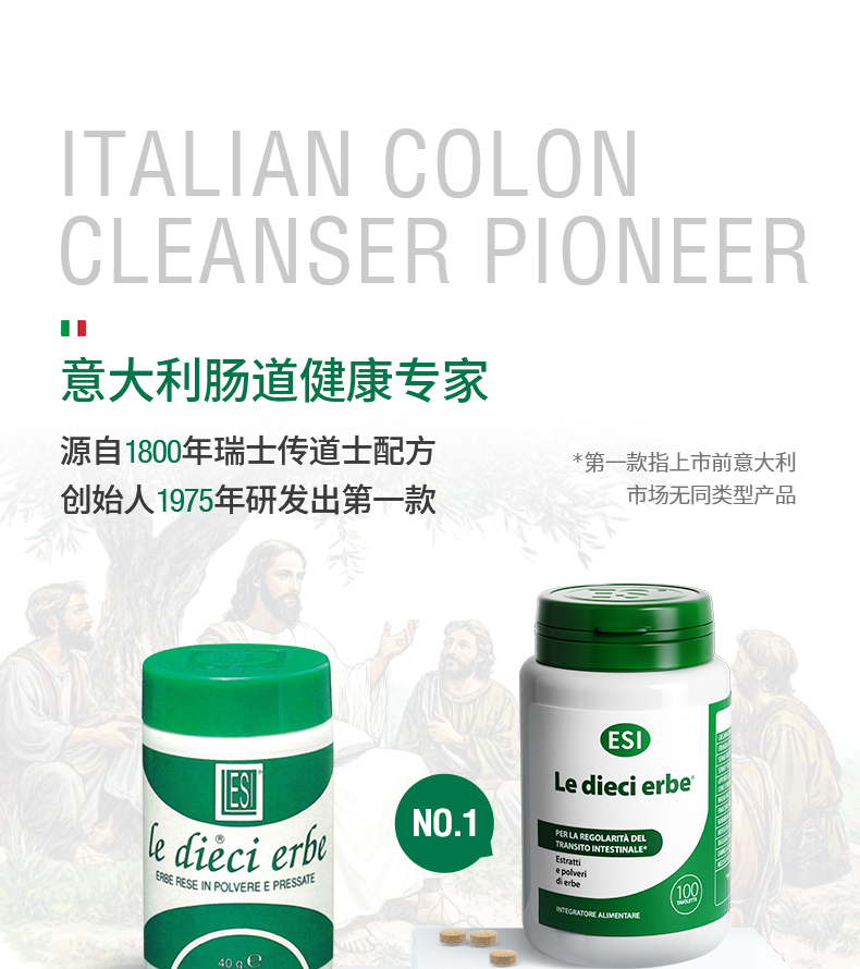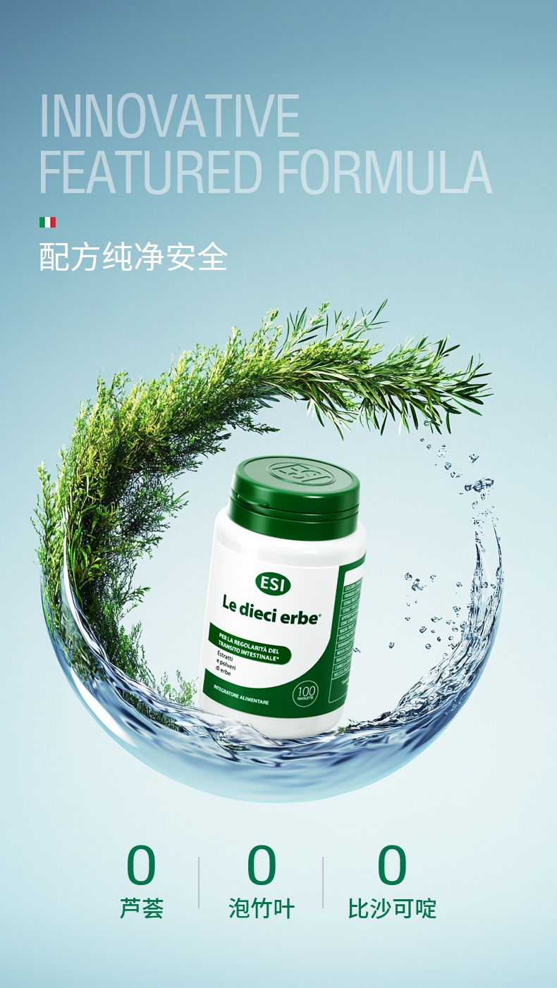 【郑州保税仓】意大利ESI纯草本膳食纤维片噗噗片1975经典款100粒/瓶【CC爸妈团购】