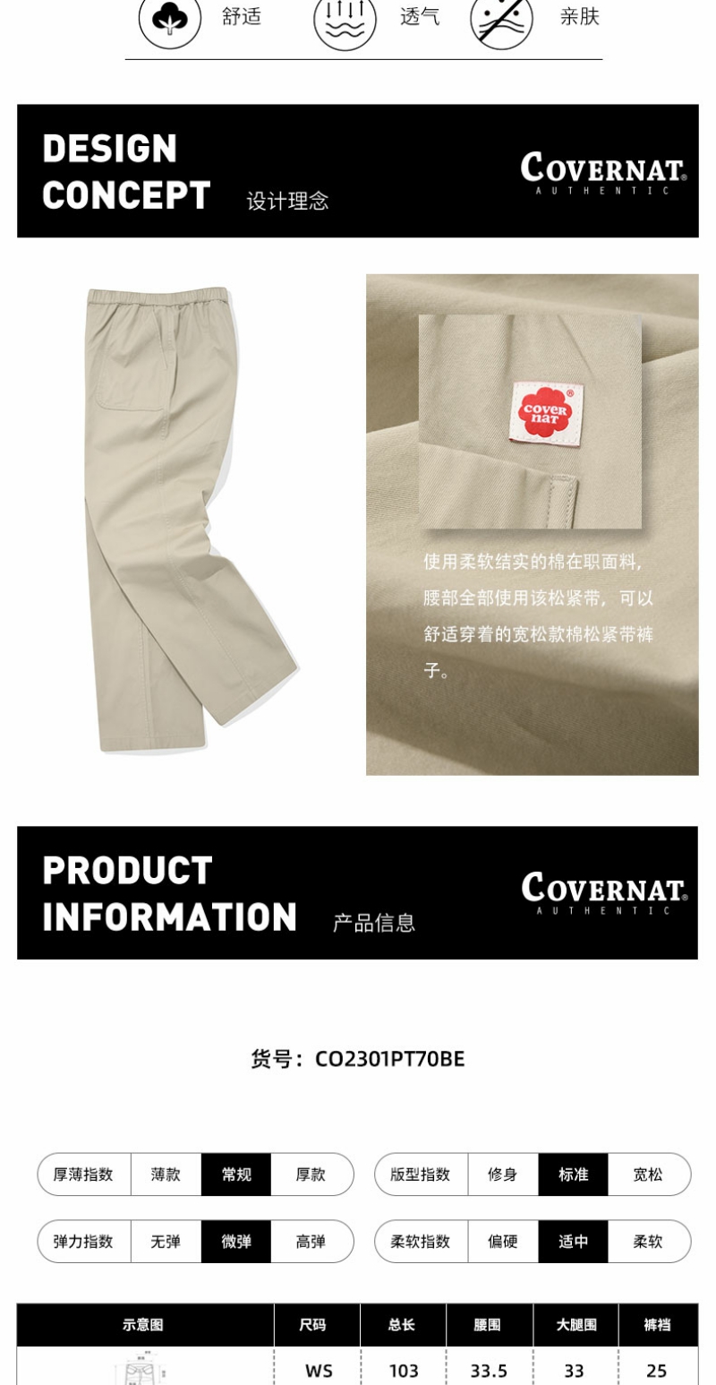 Covernat潮牌休闲裤春季新品无性别宽松直筒长裤子CO2301PT70