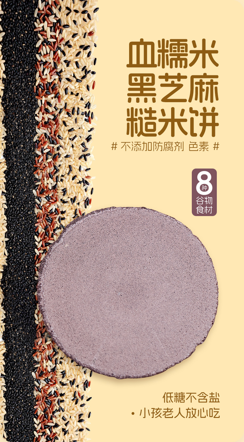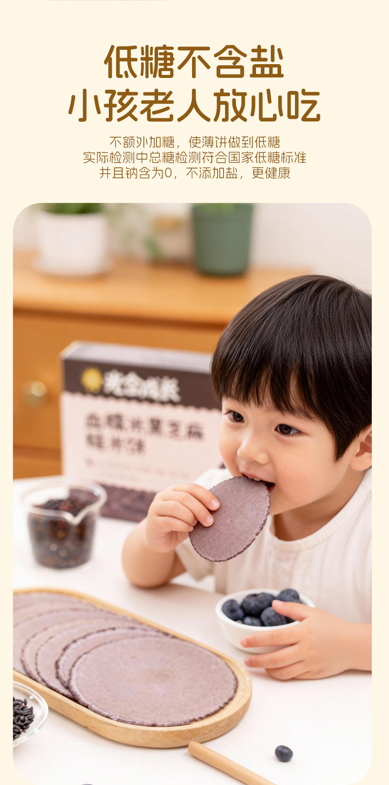 精选 | 血糯米黑芝麻糙米饼 1mm脆薄口感,8种天然谷物食材,低糖不含盐,小孩老人放心吃 150克/盒