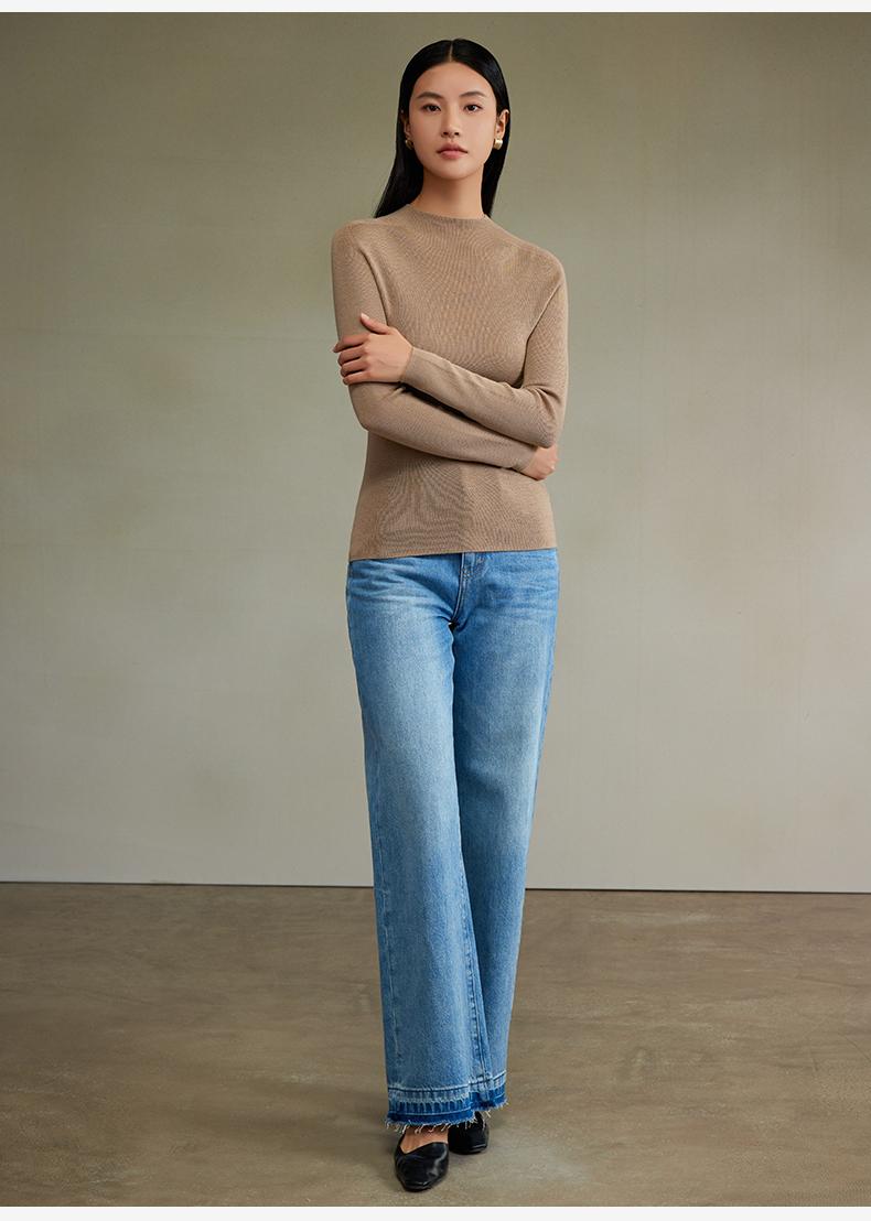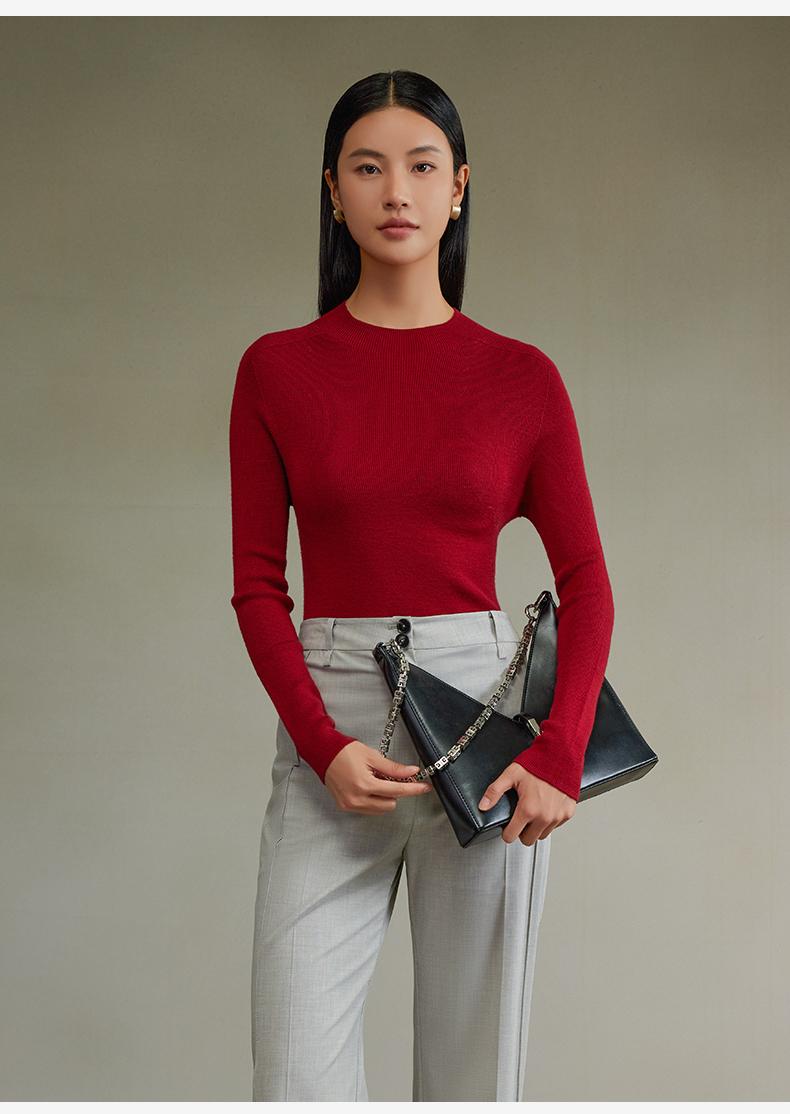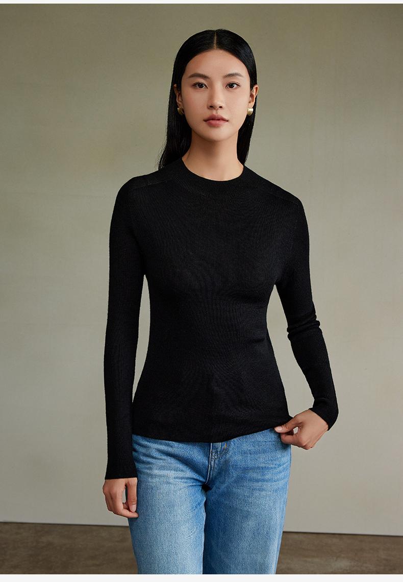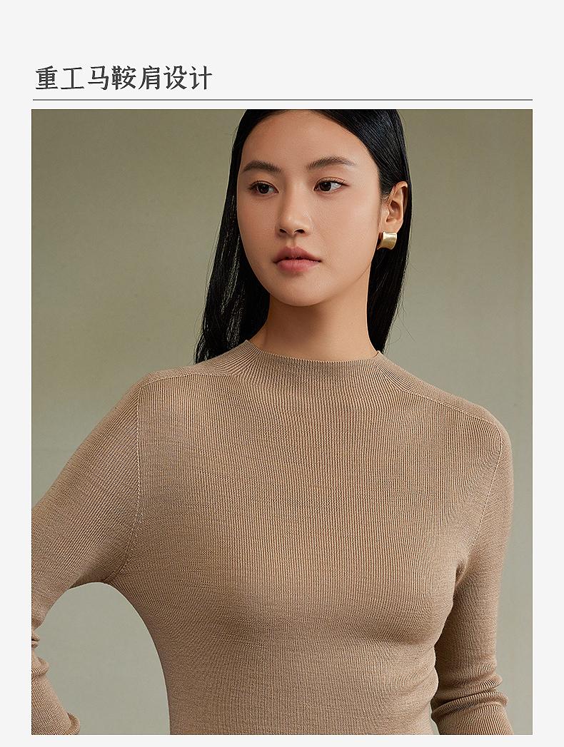 西嘉C+IMPRESS/西嘉可机洗精纺羊毛半高领毛衣女24秋装新款针织打底衫(货号:MY2403067)