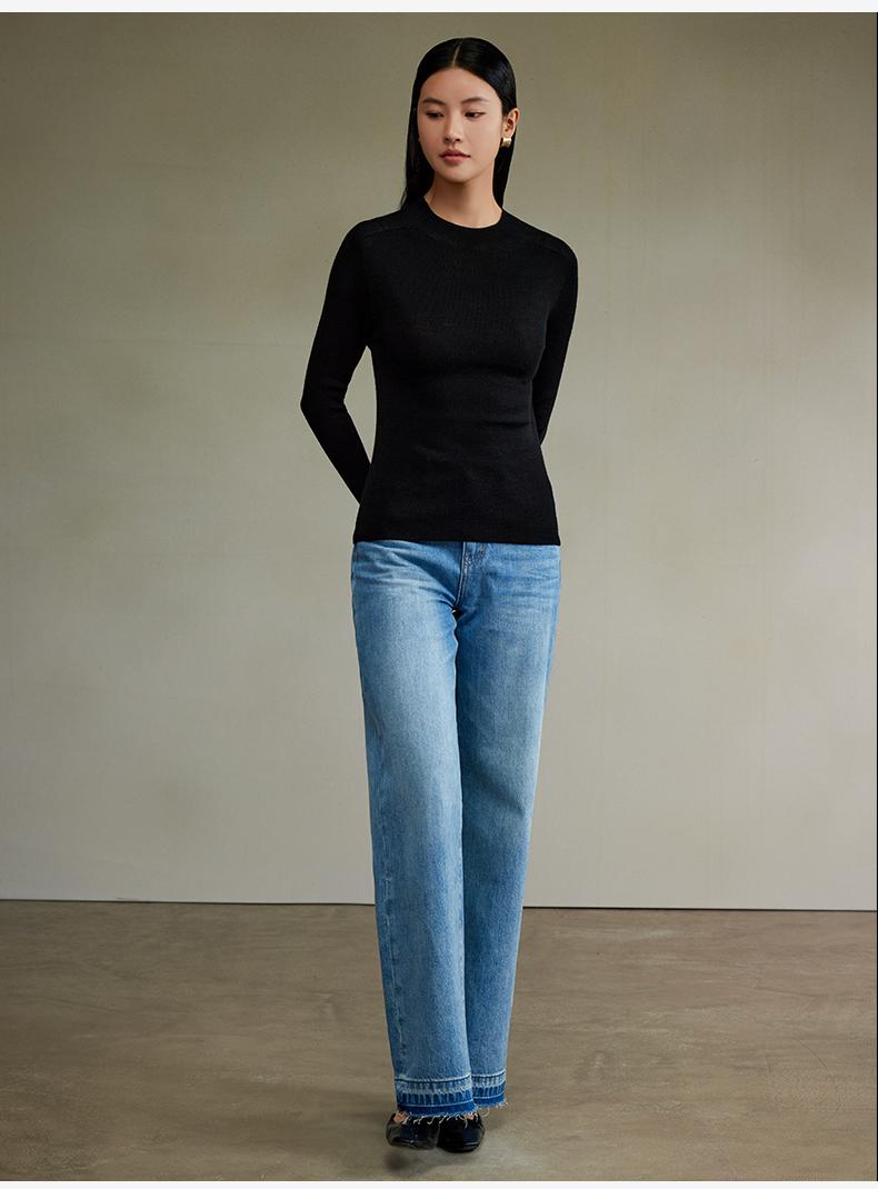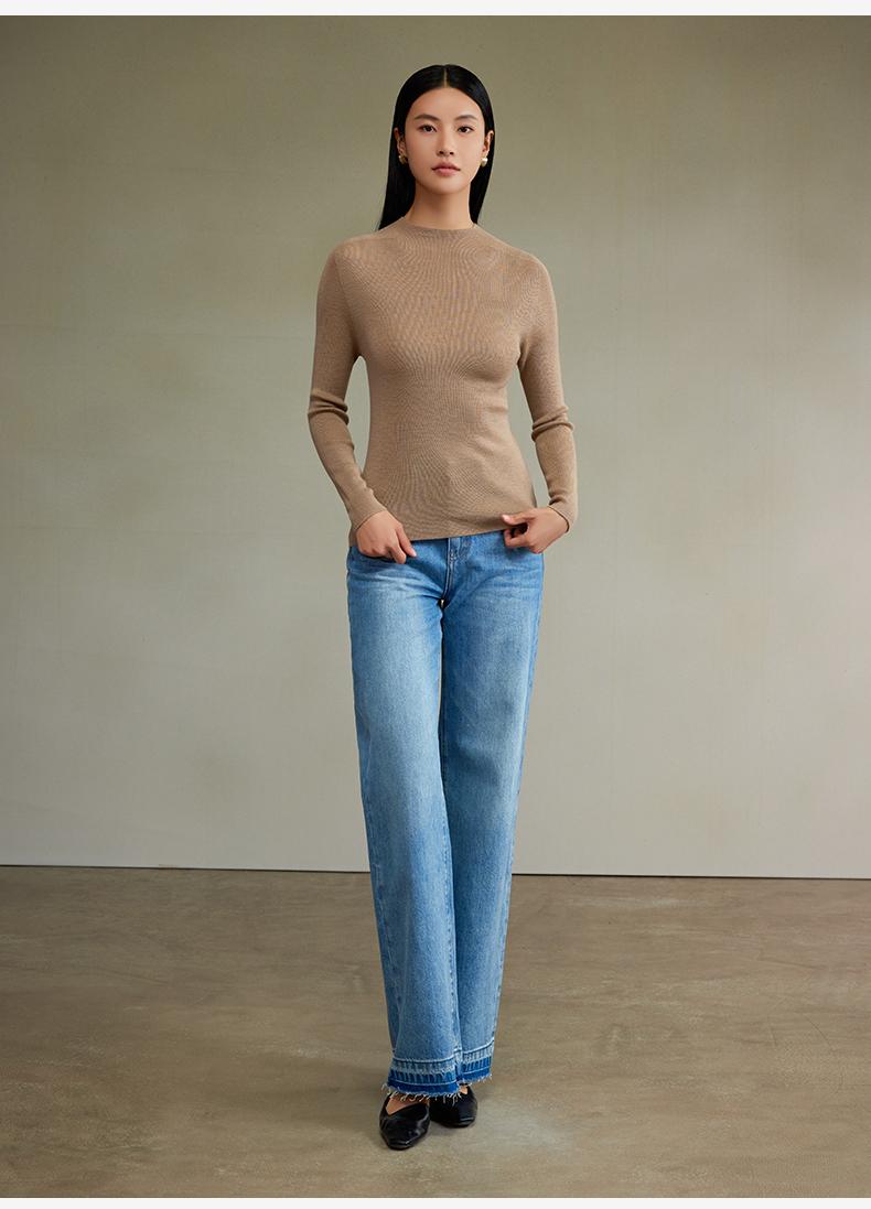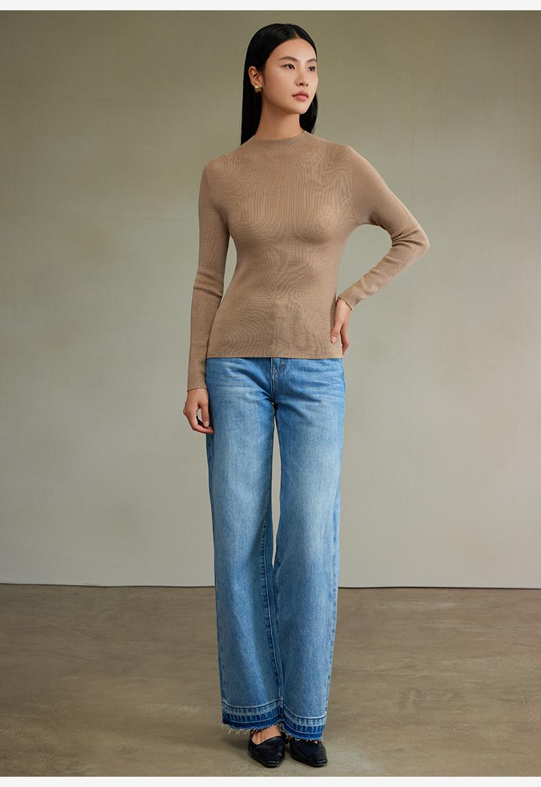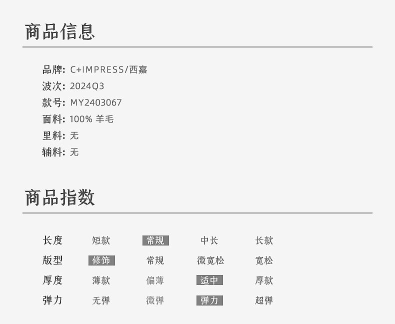 西嘉C+IMPRESS/西嘉可机洗精纺羊毛半高领毛衣女24秋装新款针织打底衫(货号:MY2403067)