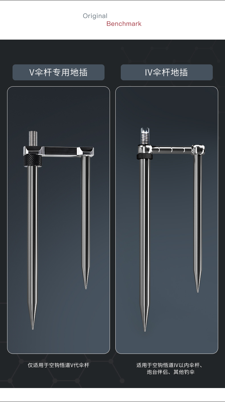 空钩悟道钓鱼伞地插 镜面不锈钢配件12mm螺纹口防滑可拆卸伞底座