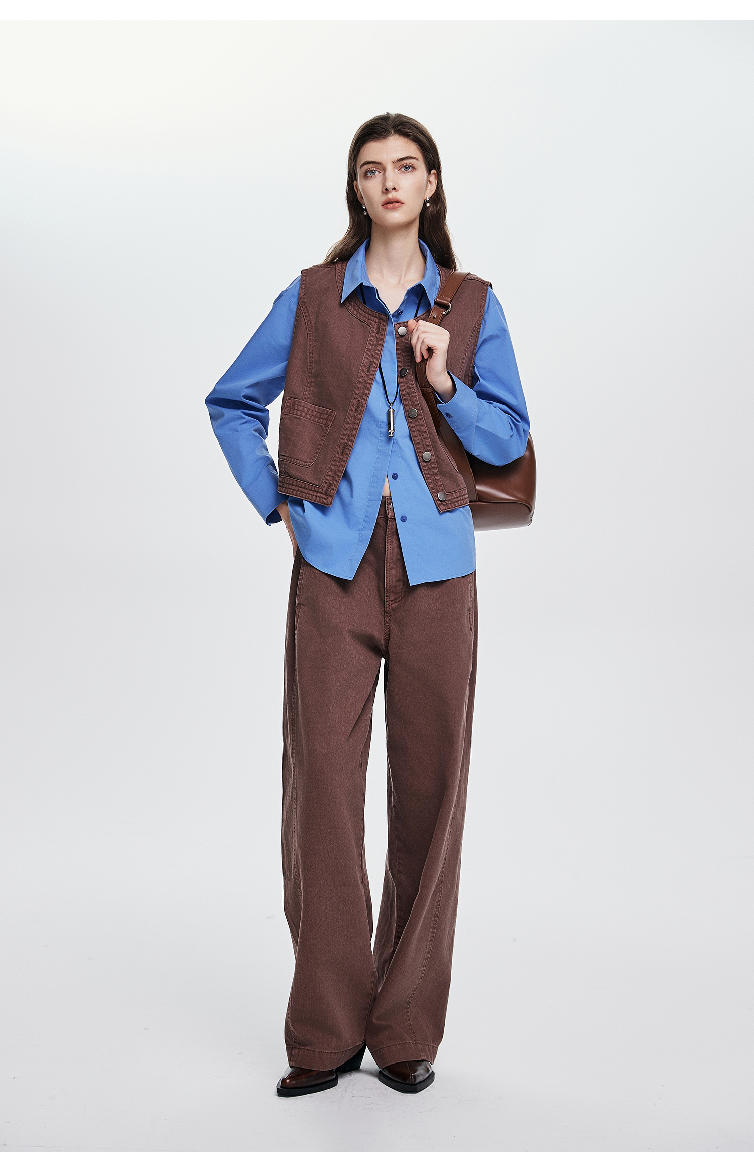 naivee纳薇24秋冬新款直筒阔腿糯米裤松紧腰及地长裤垂感休闲裤女休闲裤248256586