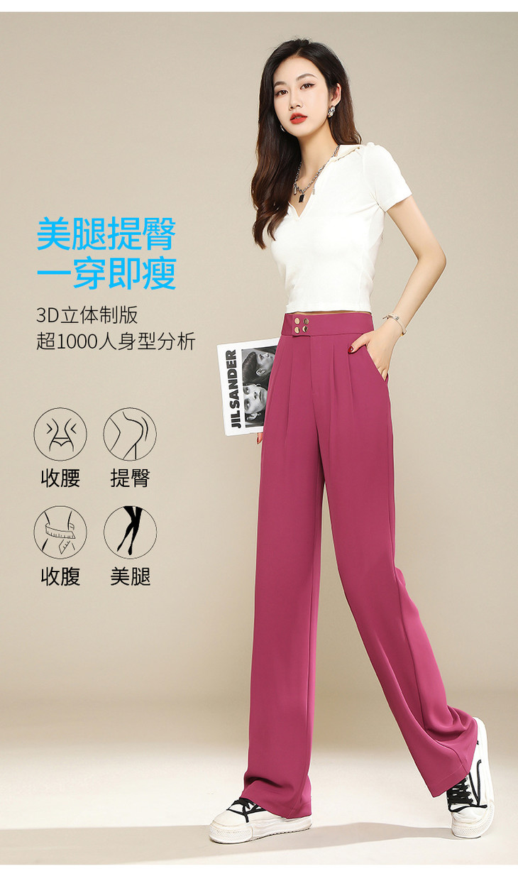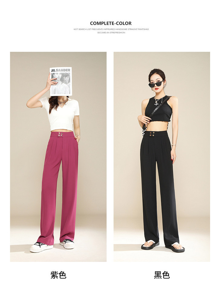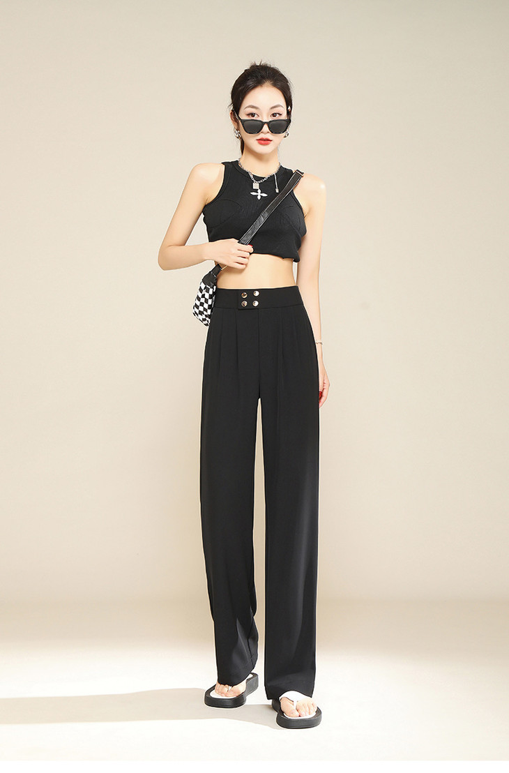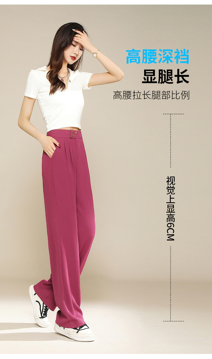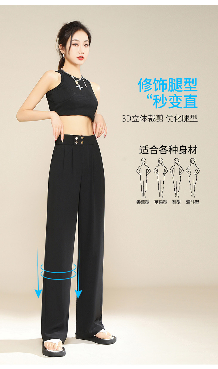 AL86802高腰冰丝阔腿裤女夏季新款垂感小个子休闲西装裤时尚显瘦拖地长裤
