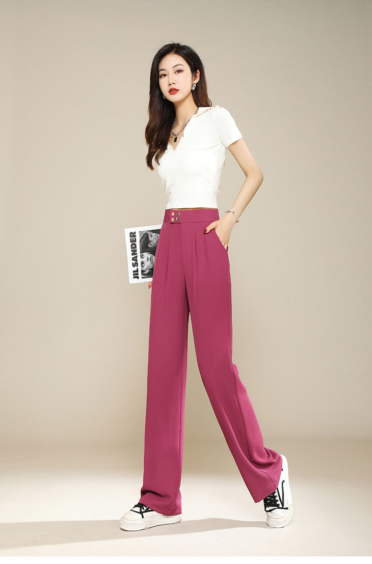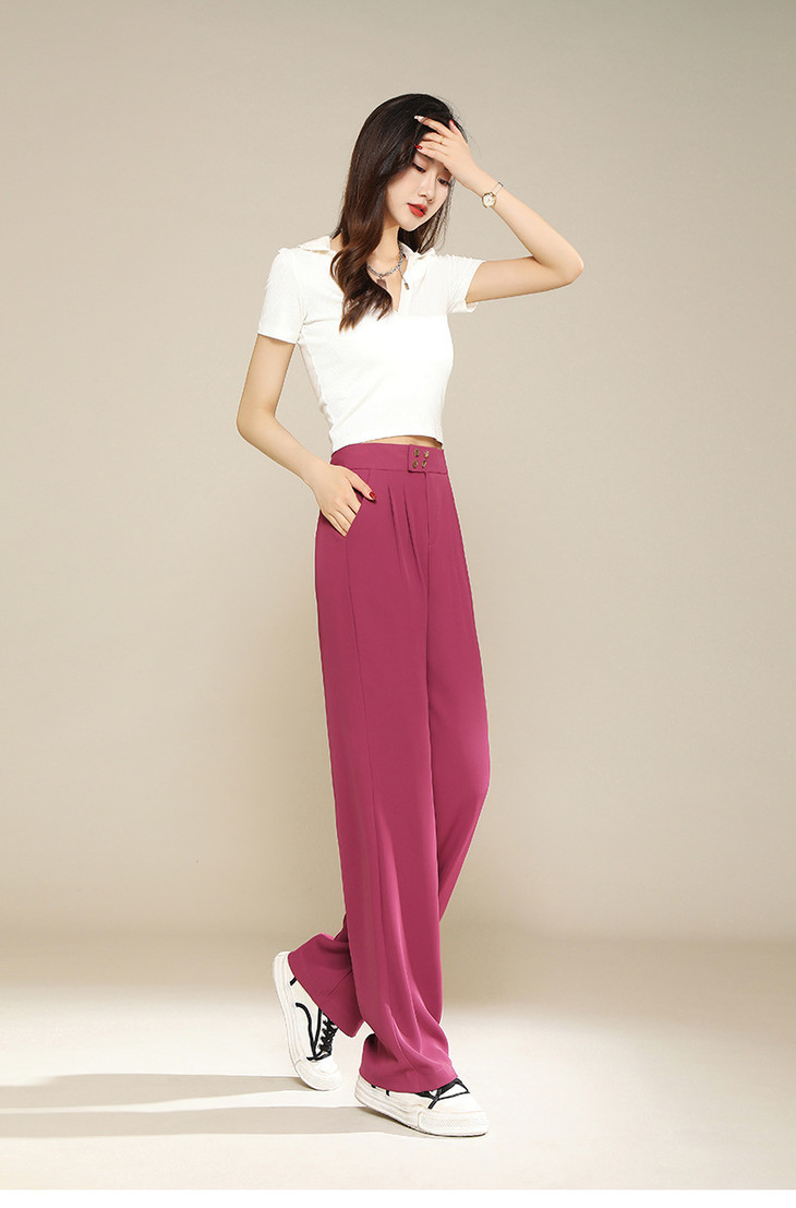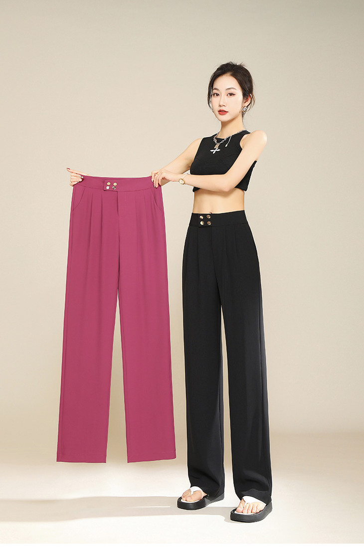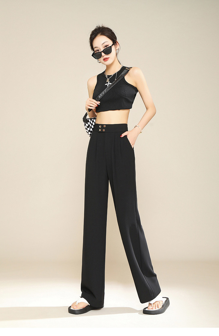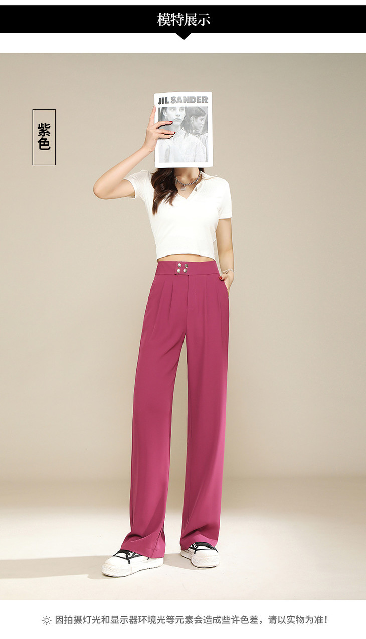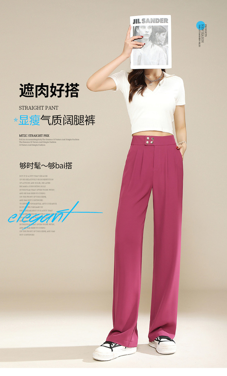 AL86802高腰冰丝阔腿裤女夏季新款垂感小个子休闲西装裤时尚显瘦拖地长裤