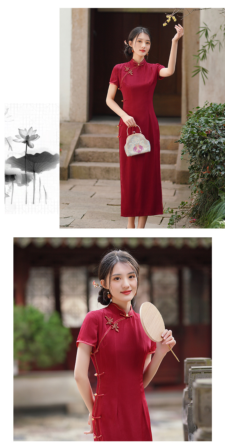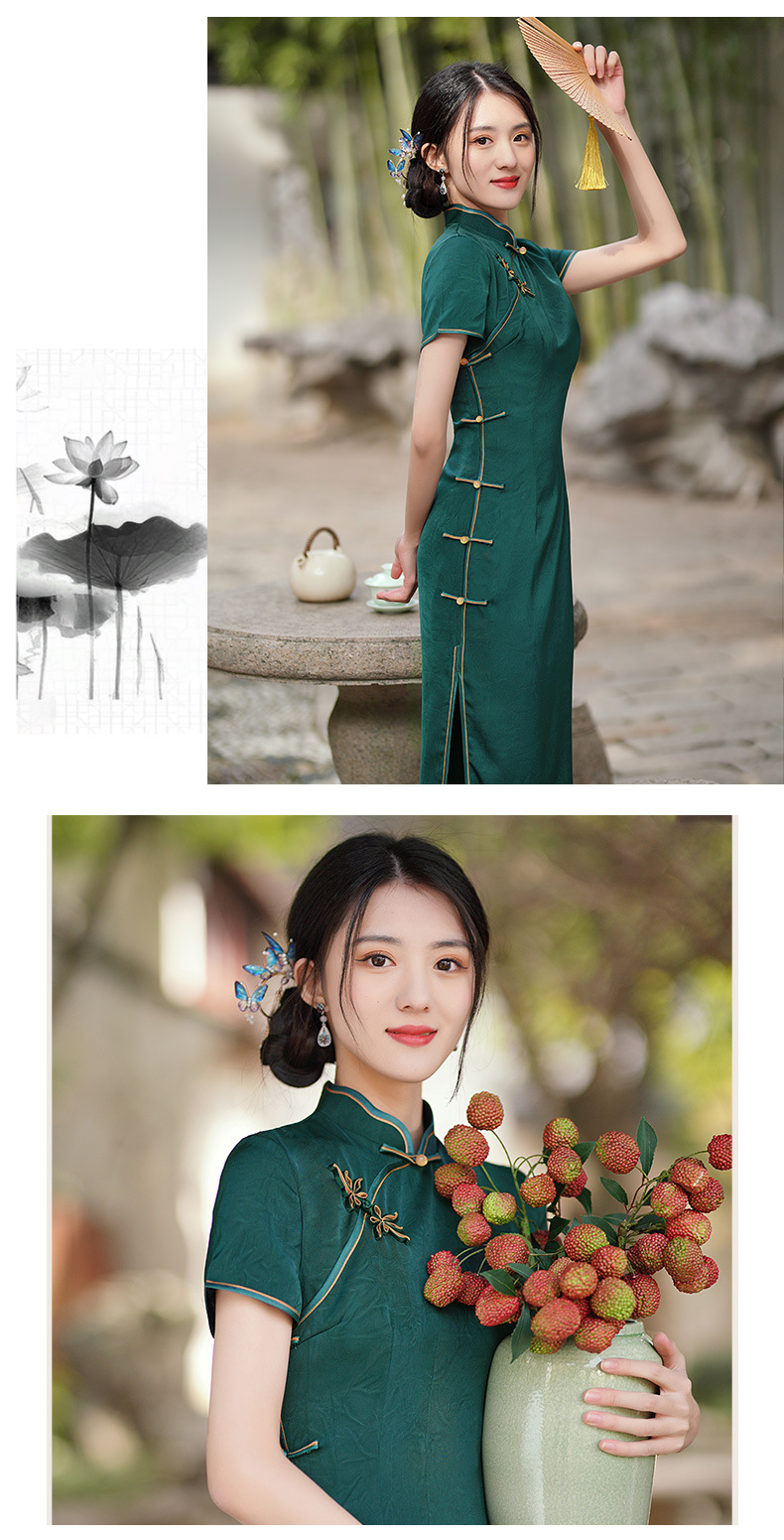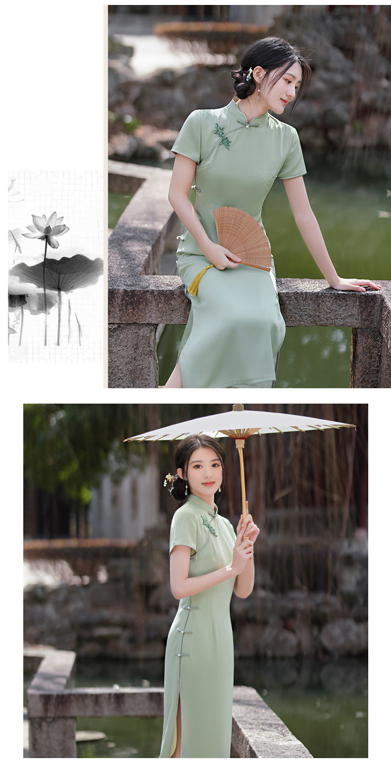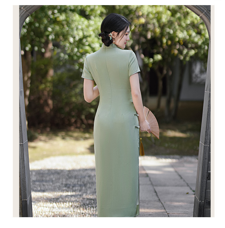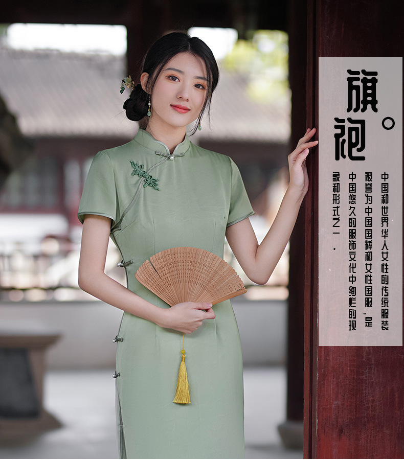 GSJ-3302素雅气质旗袍小个子年轻改良感少女醋酸春夏季