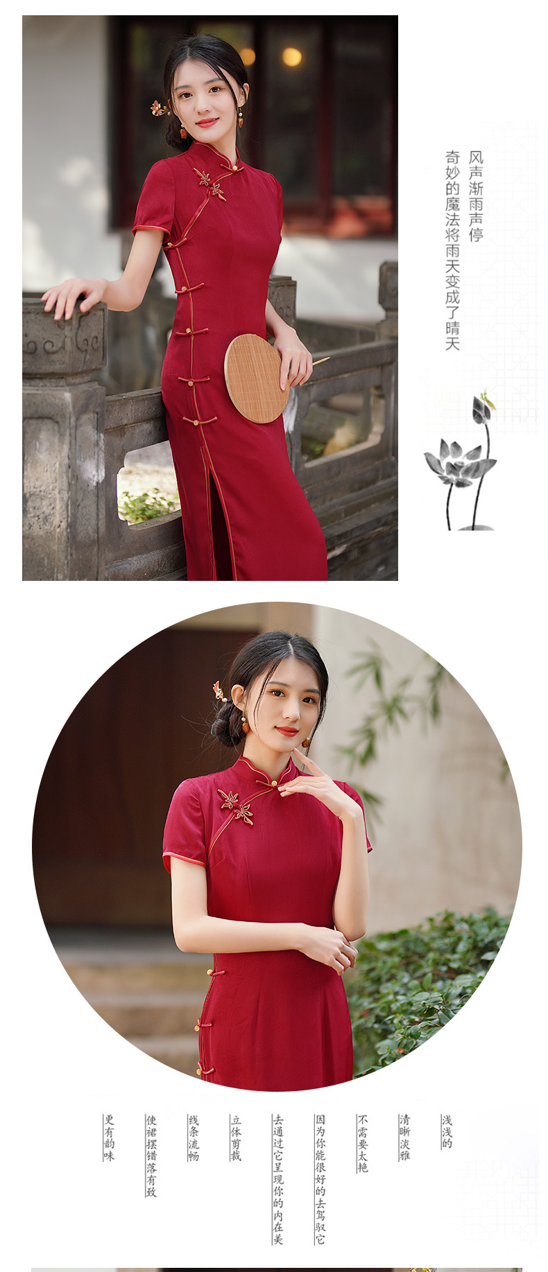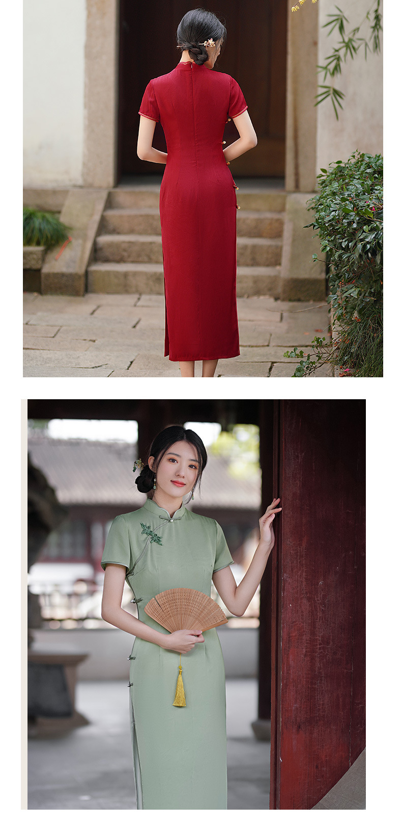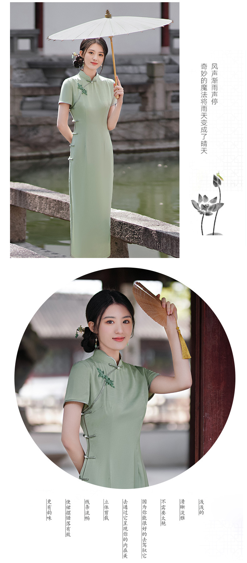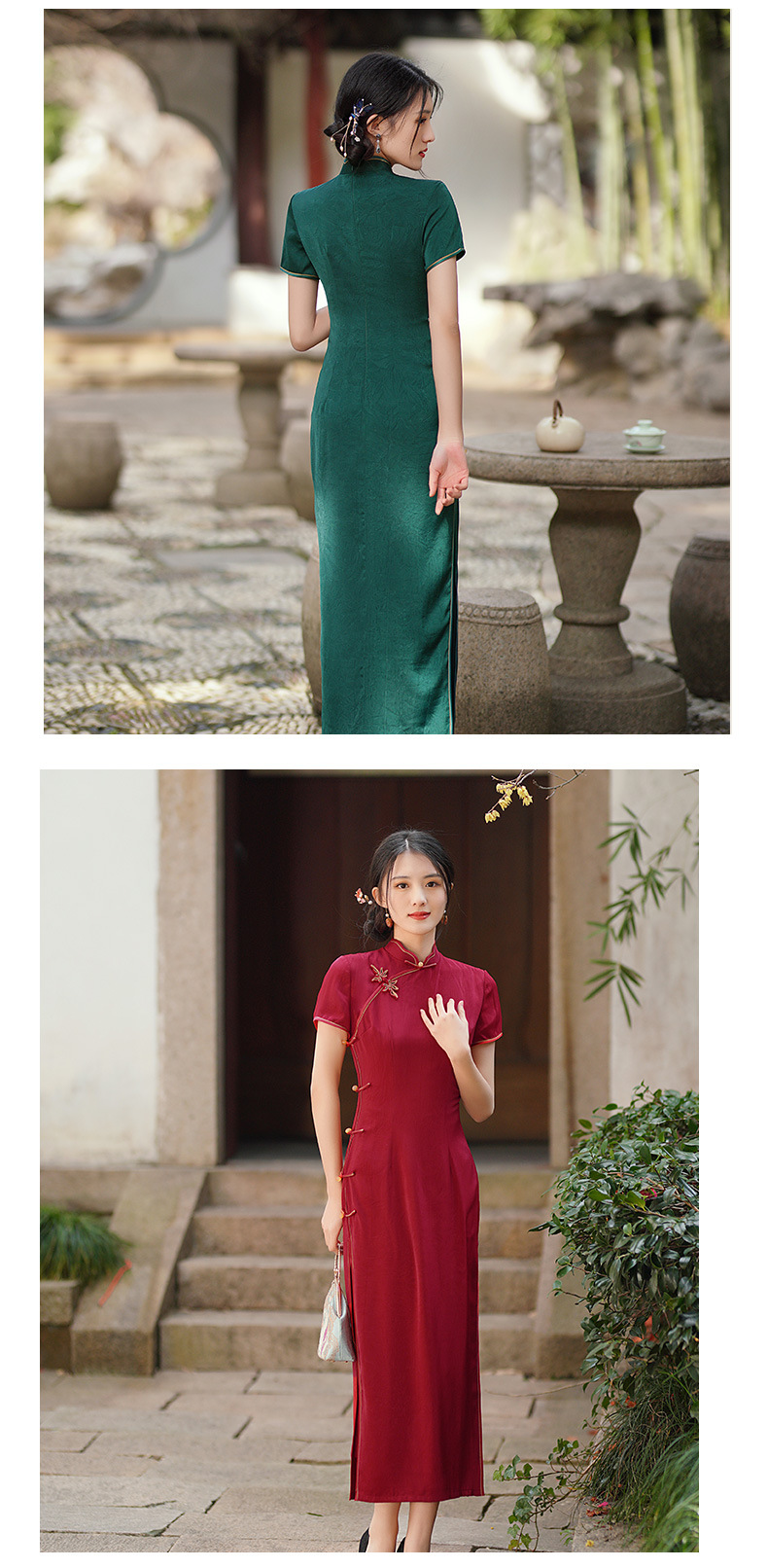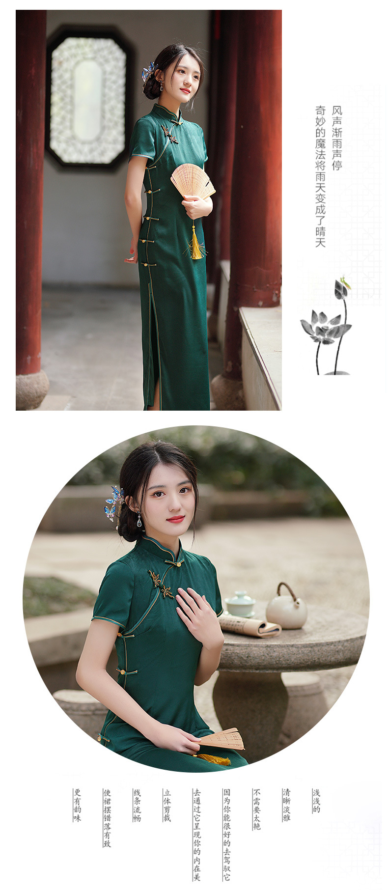 GSJ-3302素雅气质旗袍小个子年轻改良感少女醋酸春夏季