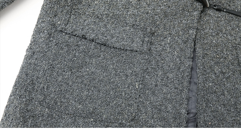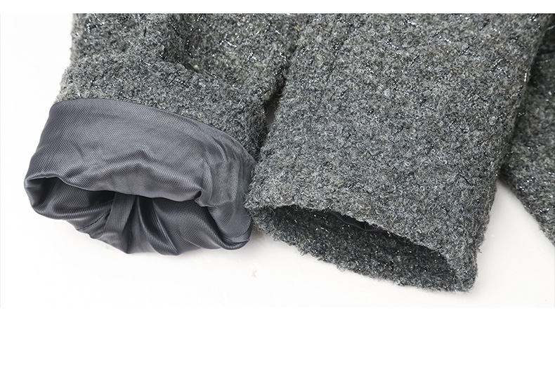 灰色粗花呢牛角扣外套 复古风圆领多口袋毛呢上衣 秋冬质感显瘦百搭女式短款大衣