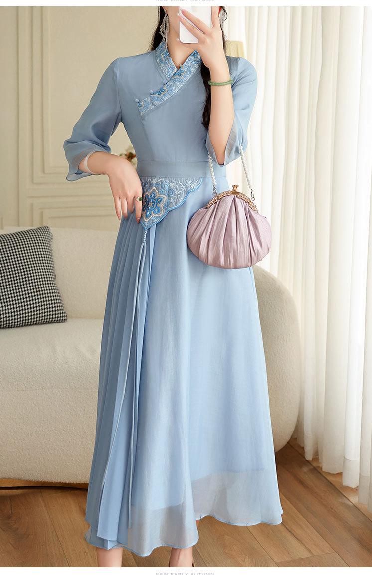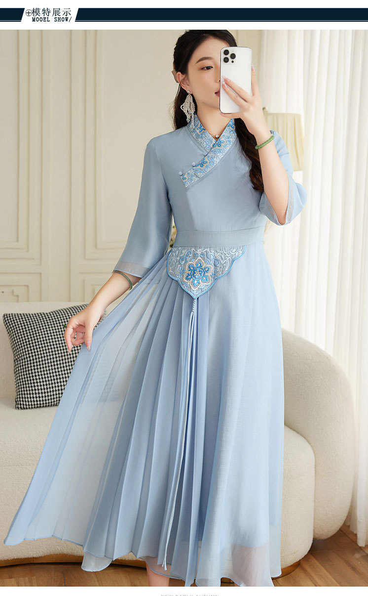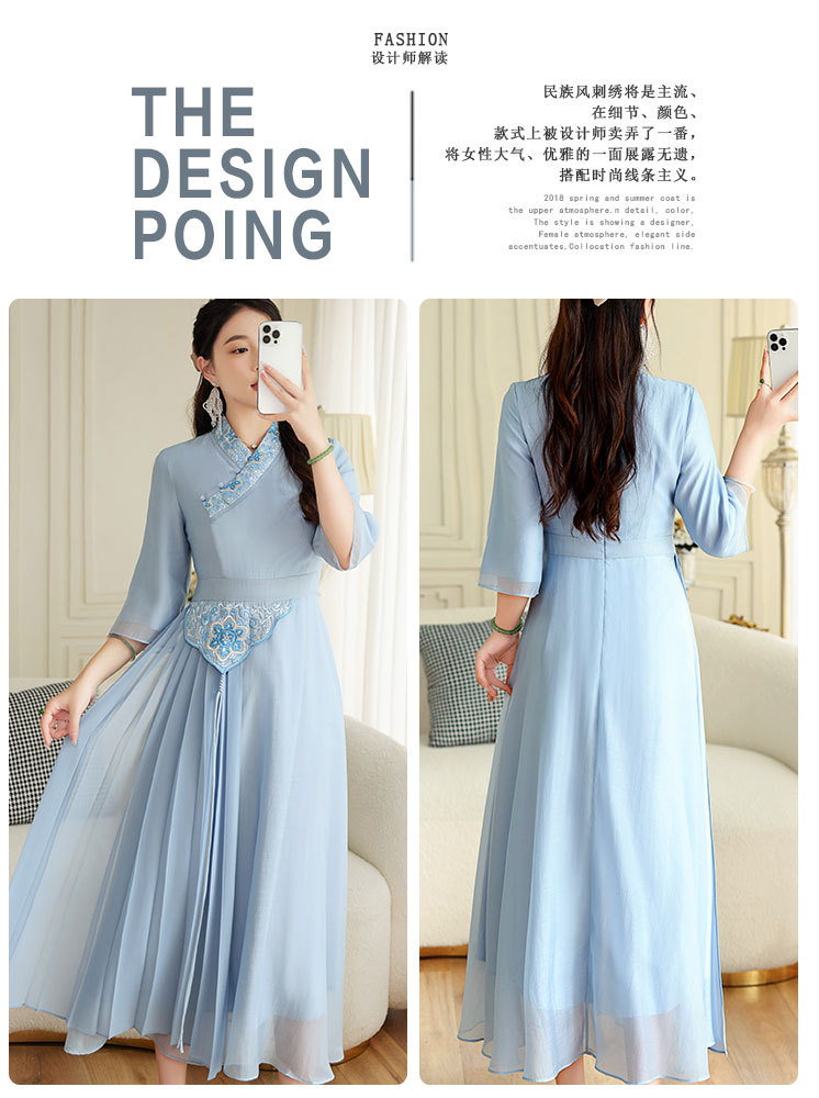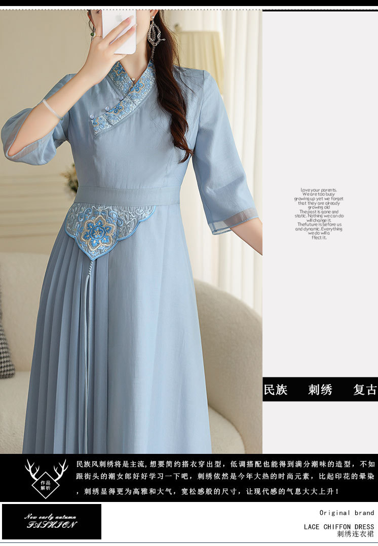 OG-A9205新中式女装改良汉服复古中国风旗袍国潮刺绣飘逸收腰款连衣裙