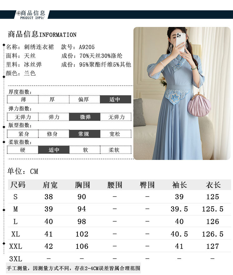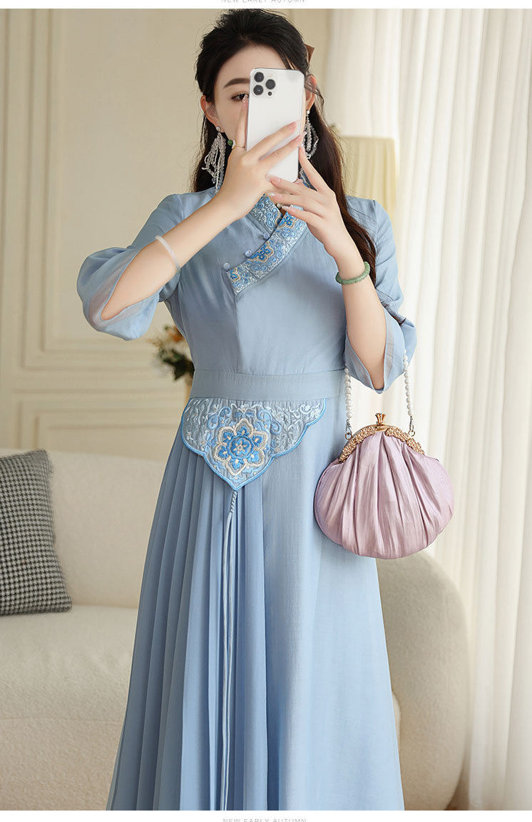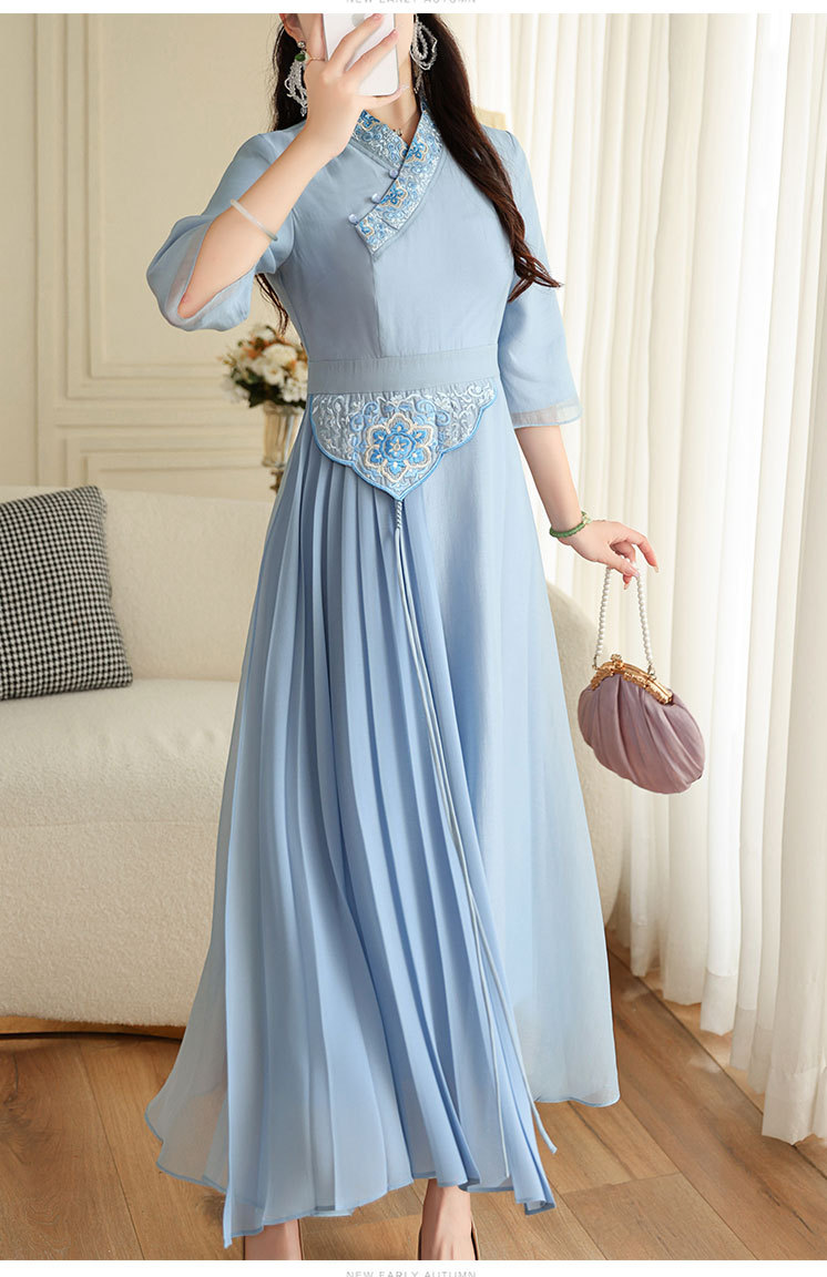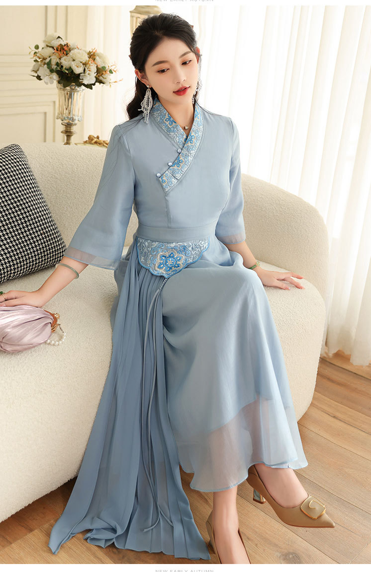 OG-A9205新中式女装改良汉服复古中国风旗袍国潮刺绣飘逸收腰款连衣裙