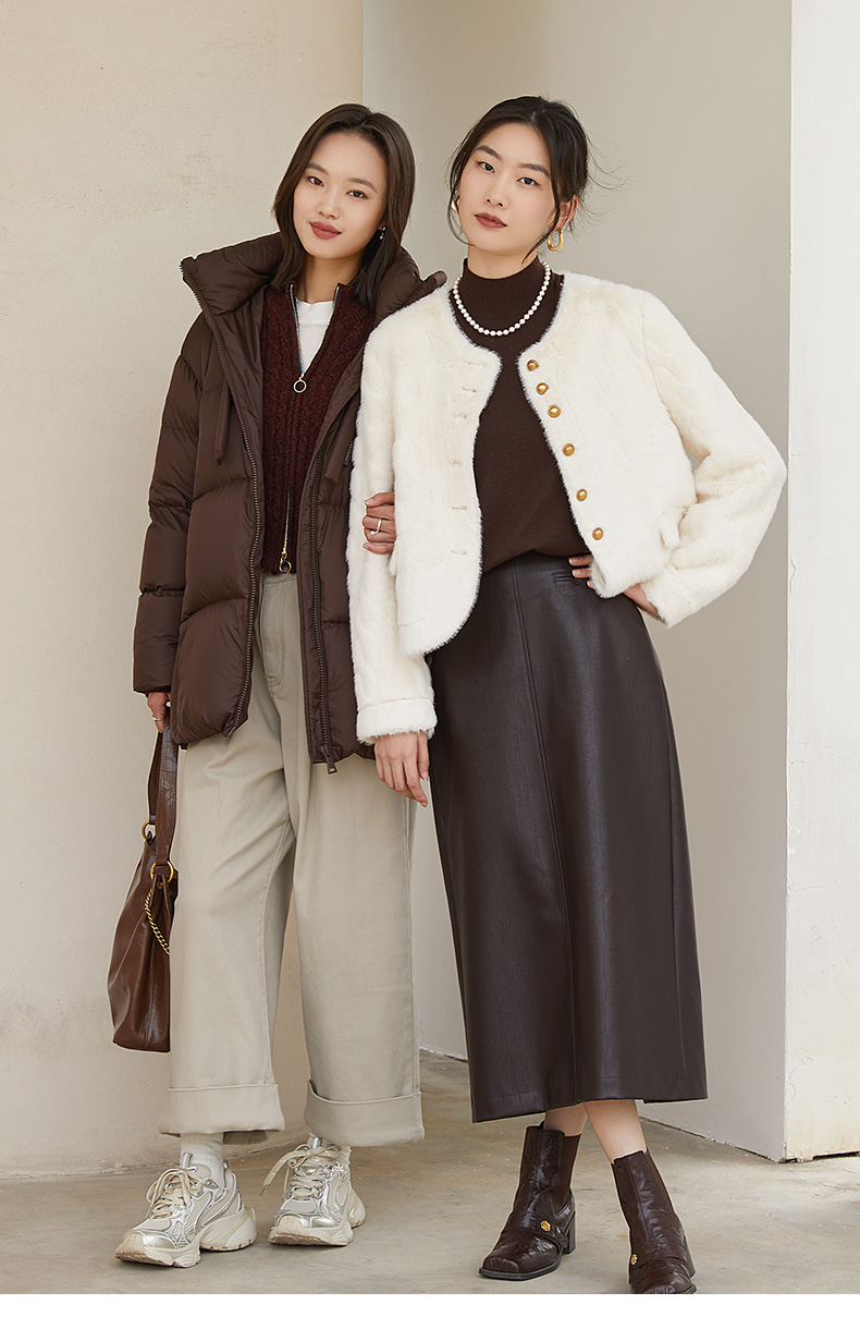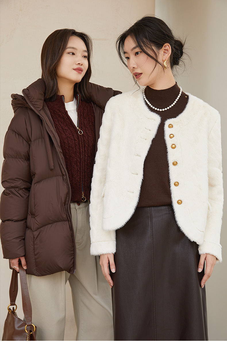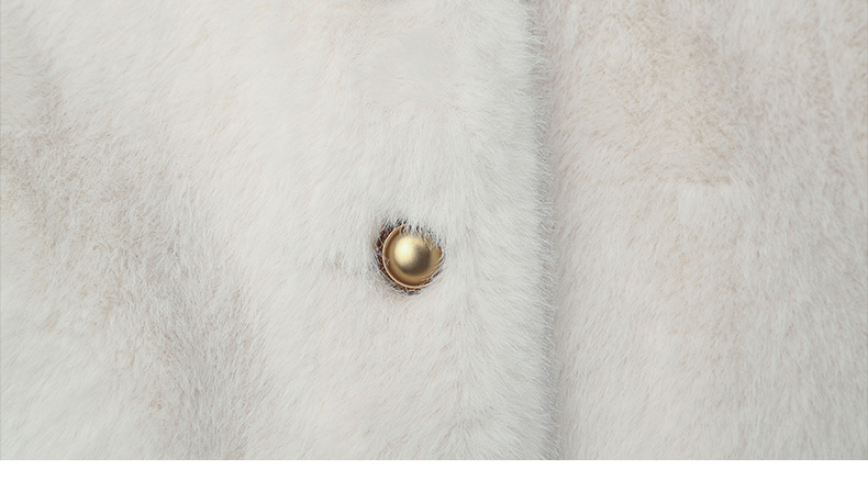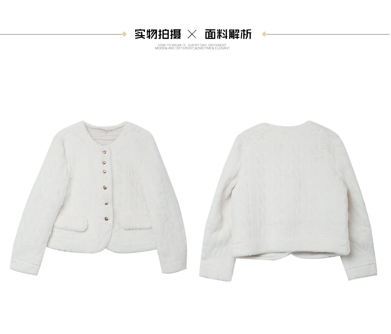 奶白色毛绒感短款圆领外套 金属纽扣双口袋修身显瘦秋冬温柔气质名媛风百搭上衣