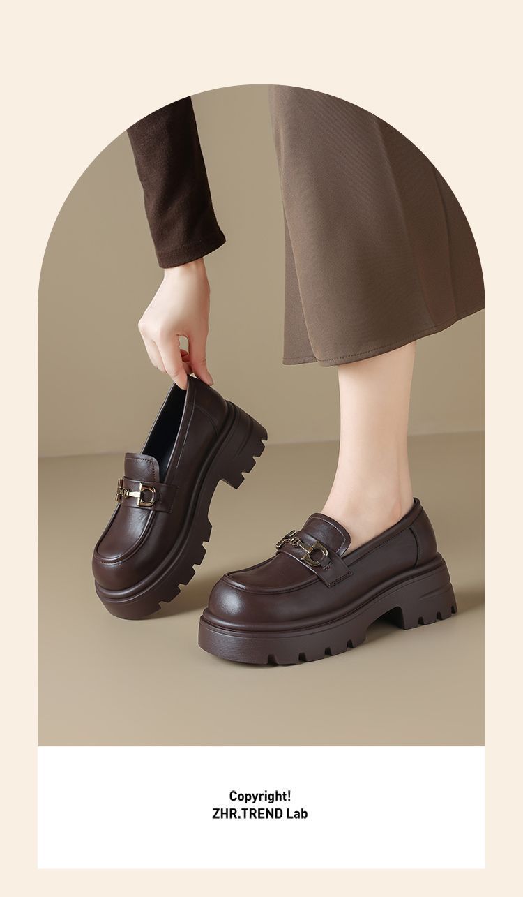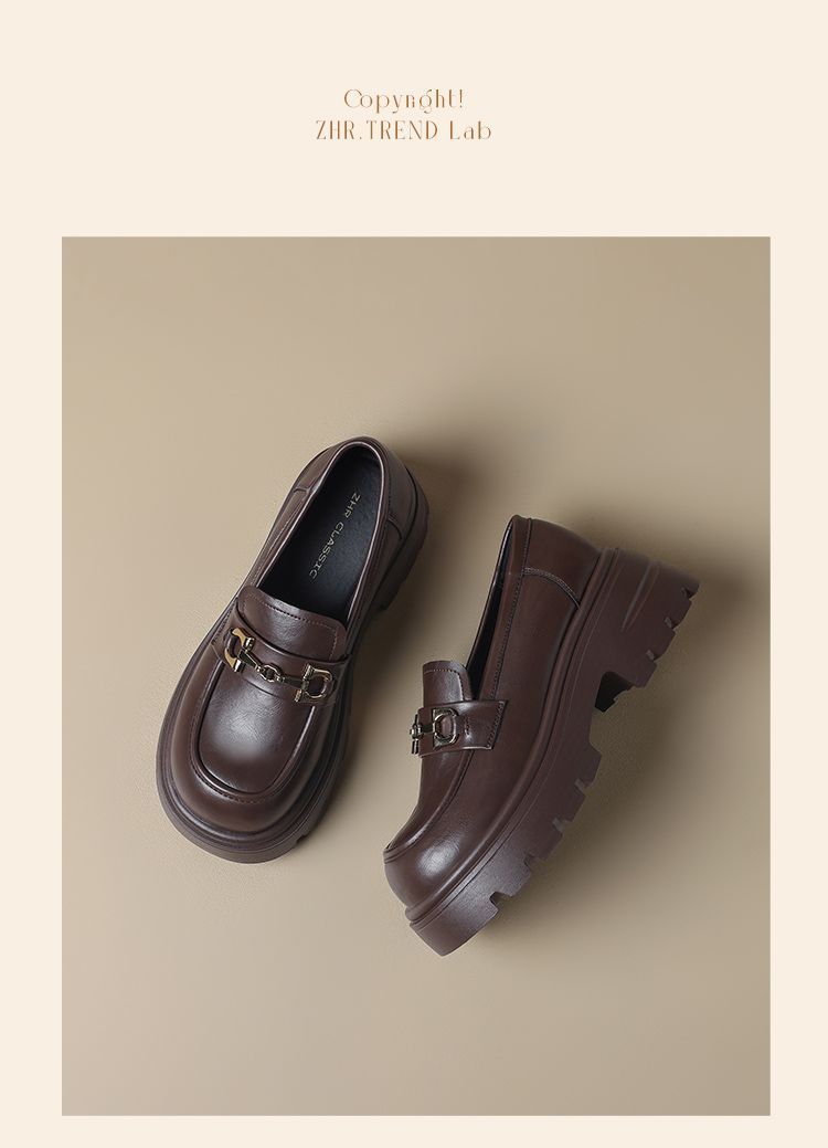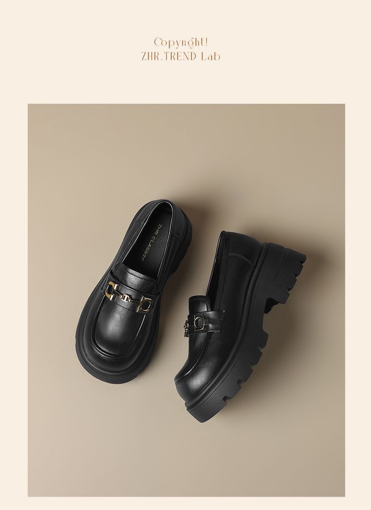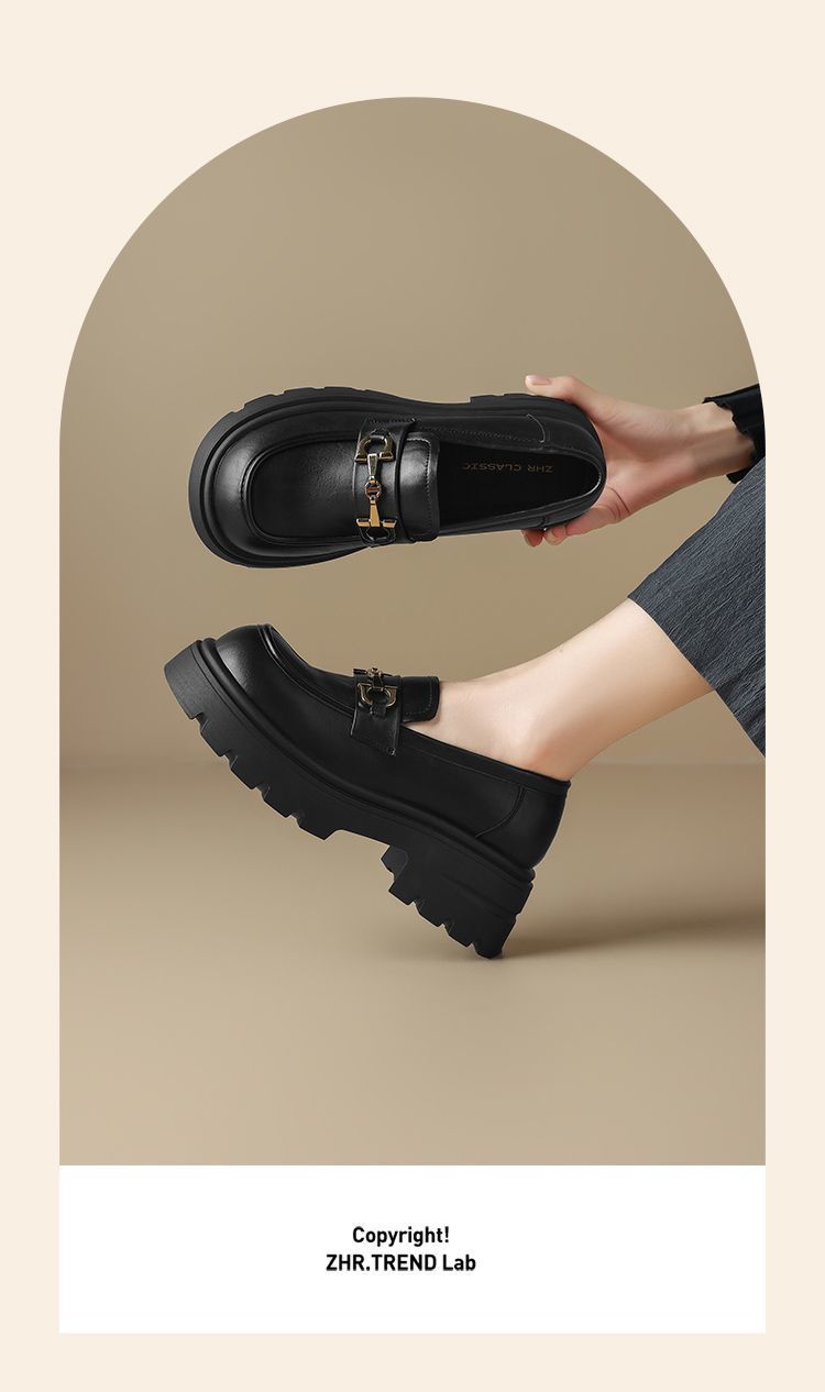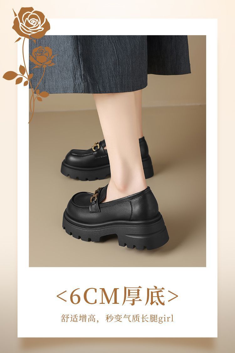 ZHR则则厚底增高6cm乐福鞋单鞋女2025新款百搭高跟小皮鞋学院女鞋