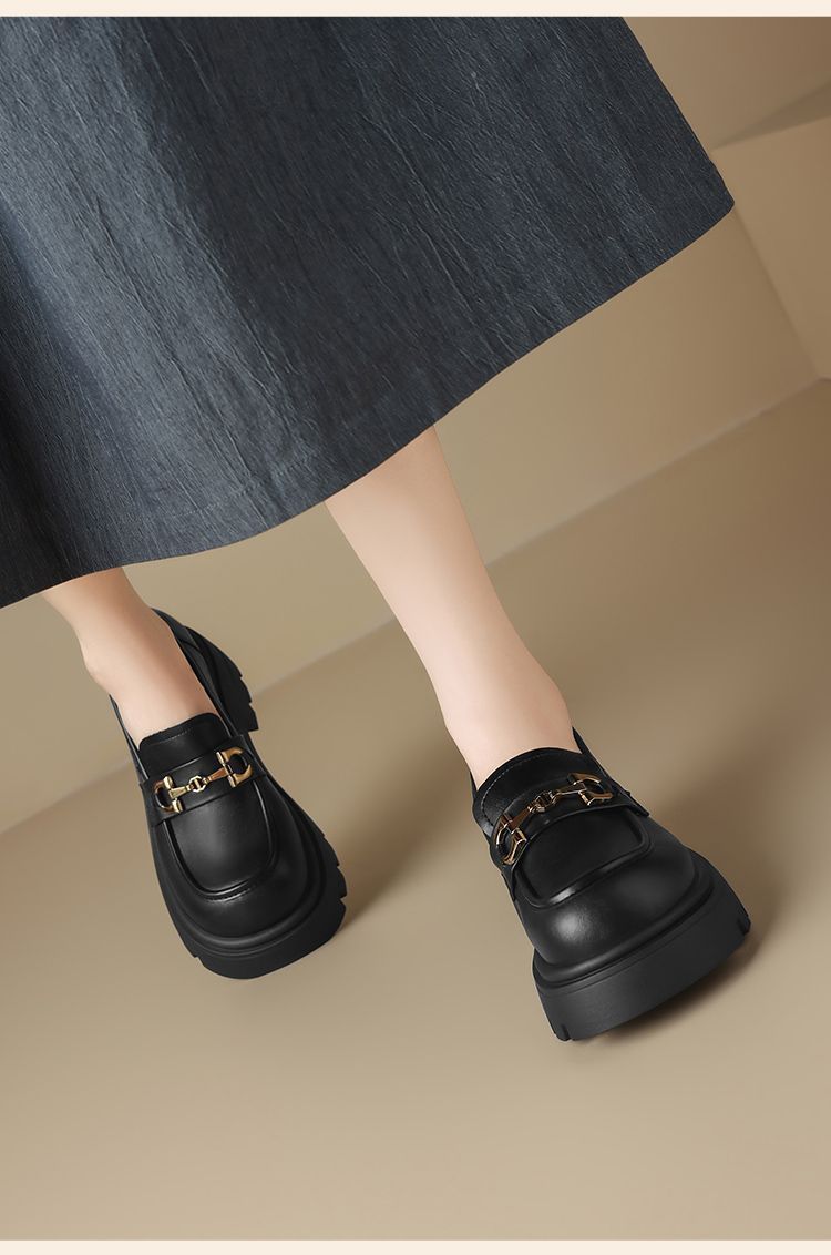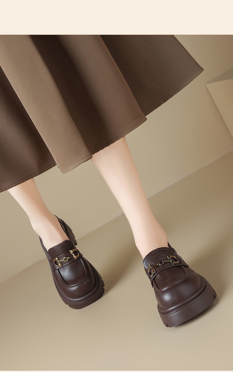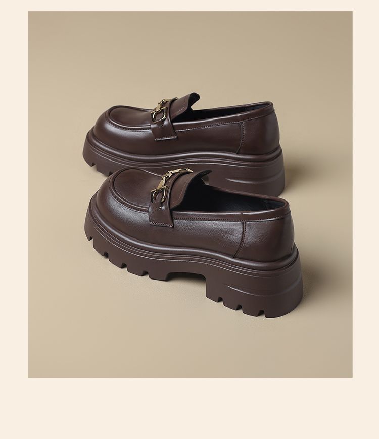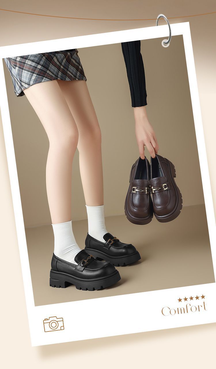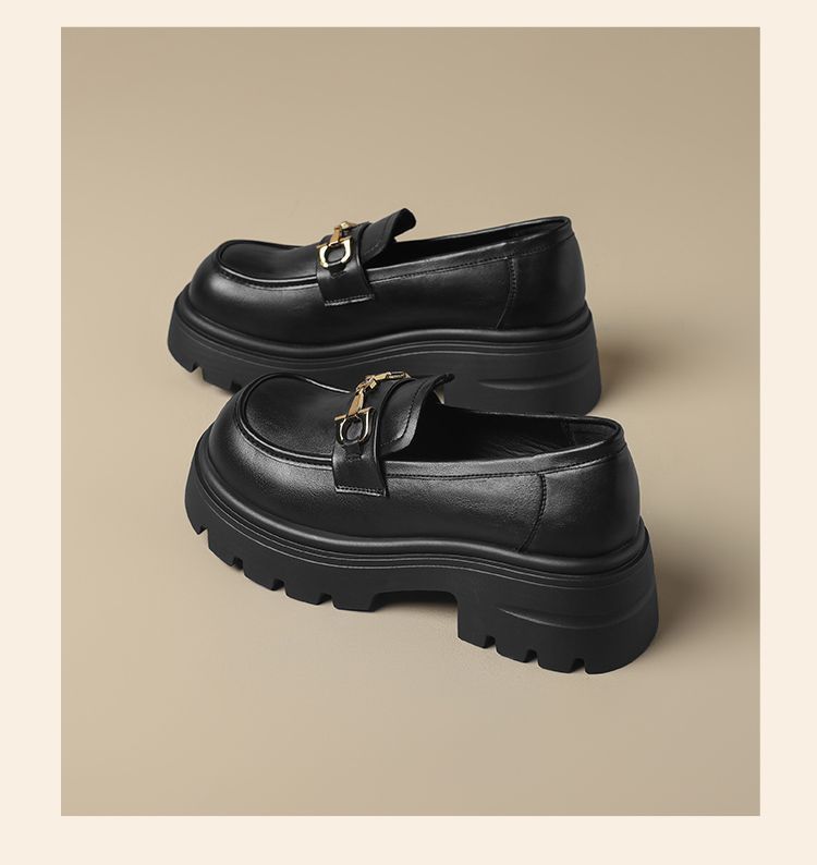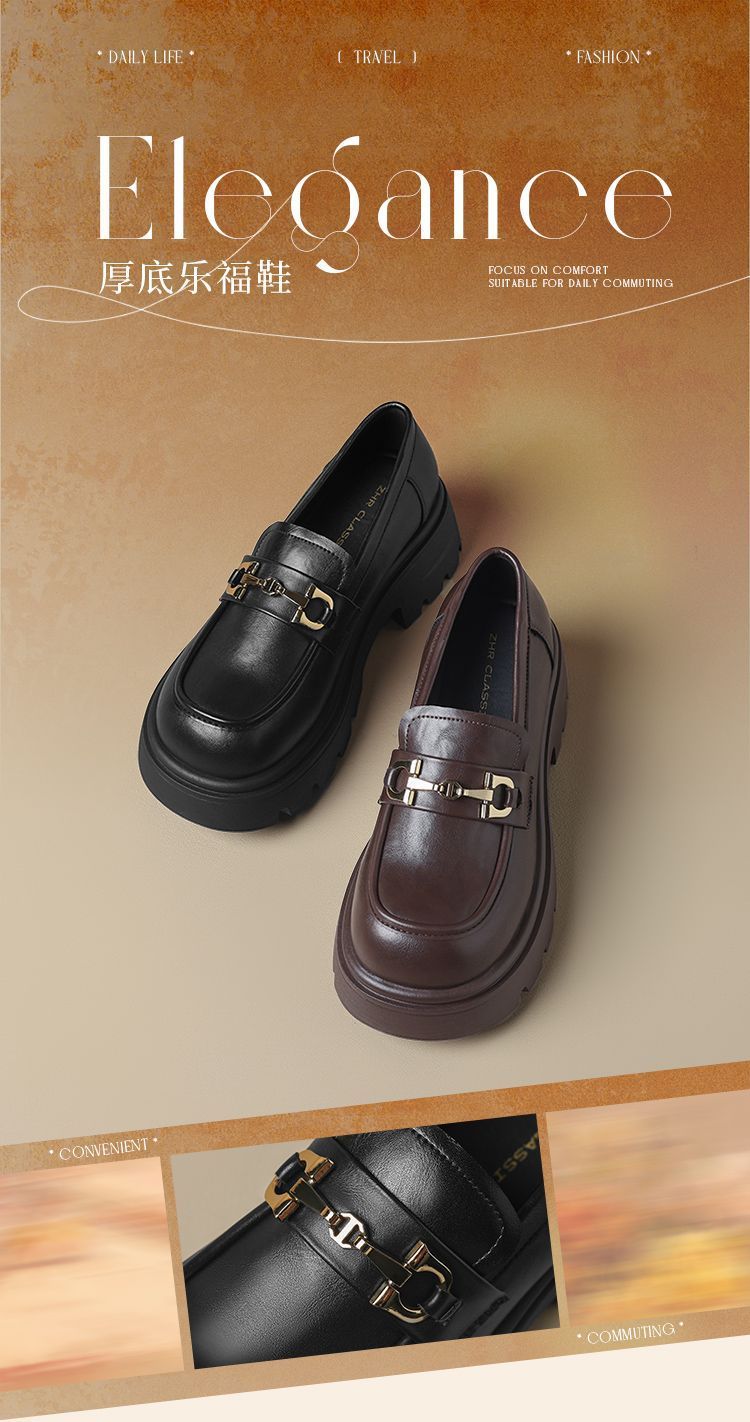 ZHR则则厚底增高6cm乐福鞋单鞋女2025新款百搭高跟小皮鞋学院女鞋