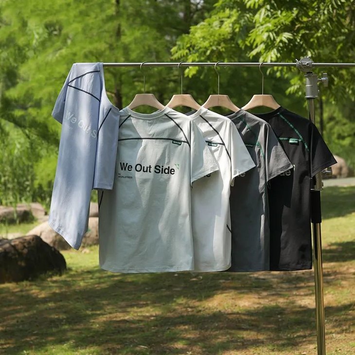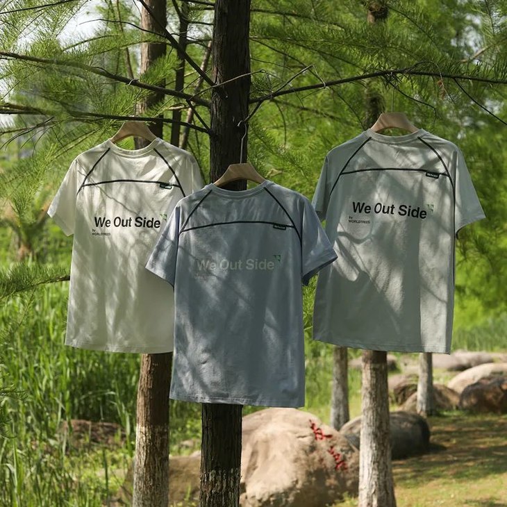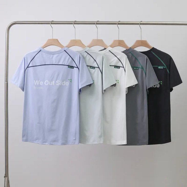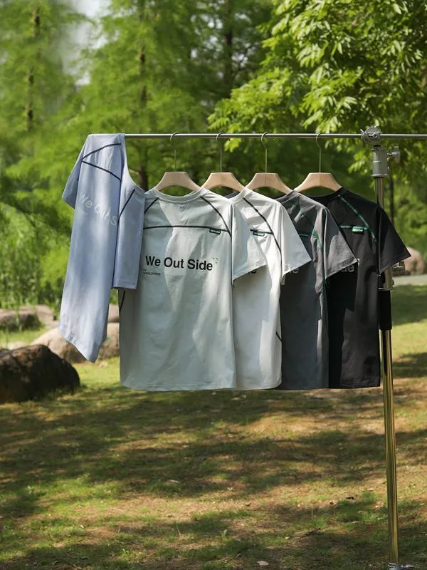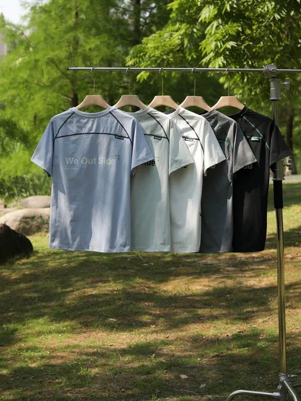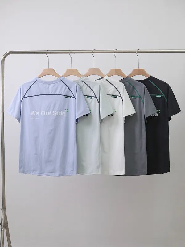 山系户外拼接撞色男女情侣款索罗娜撞色字母印花骑行运动休闲短袖T恤