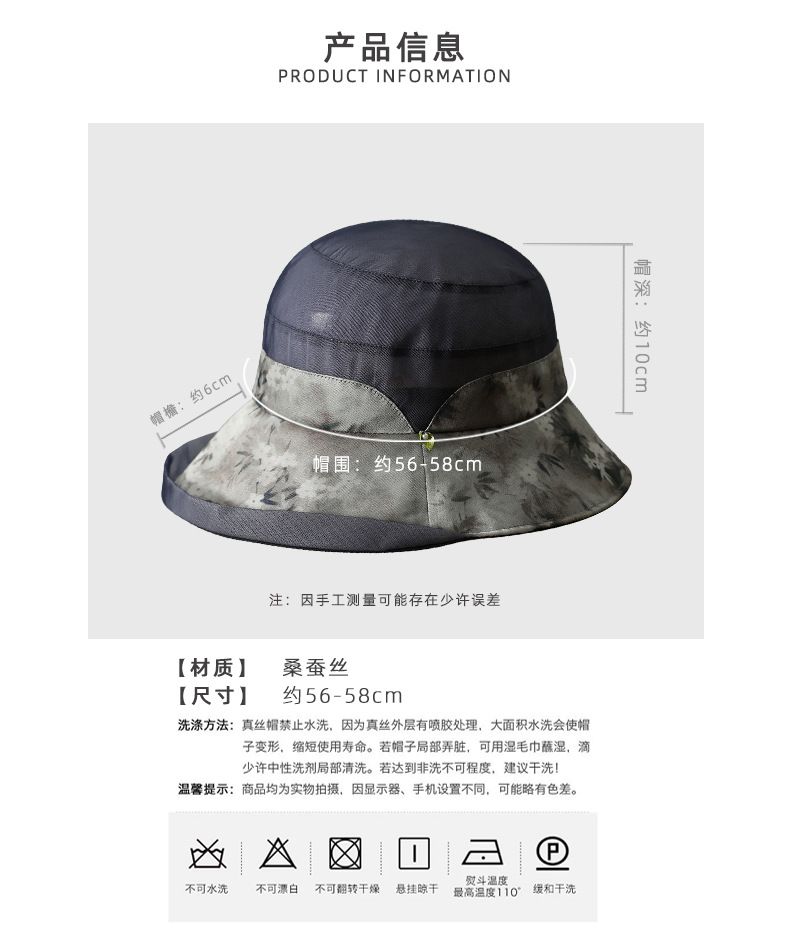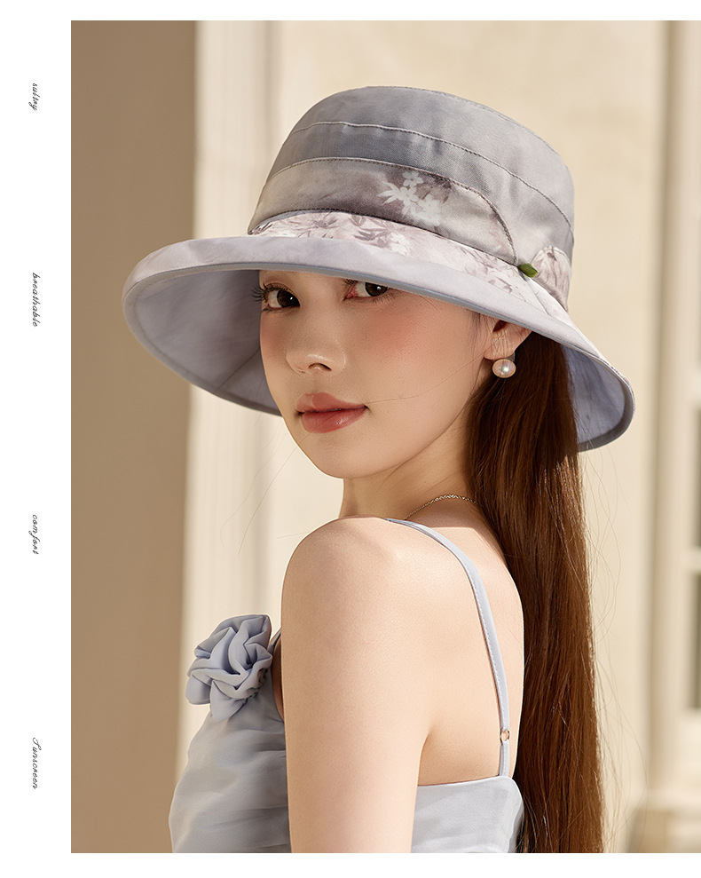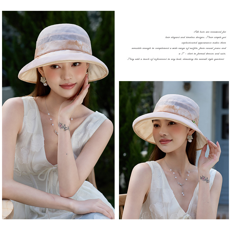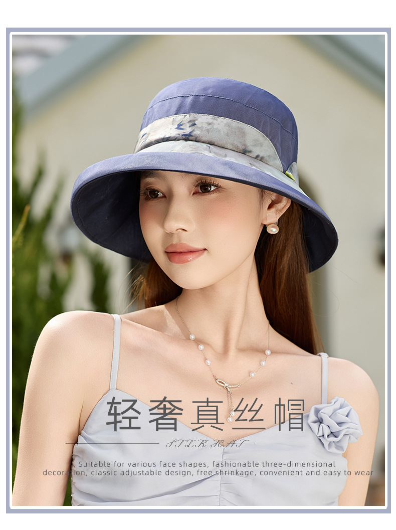 雀说 桑蚕丝防晒帽女夏季真丝透气逛街出游遮阳帽DUJ-9590