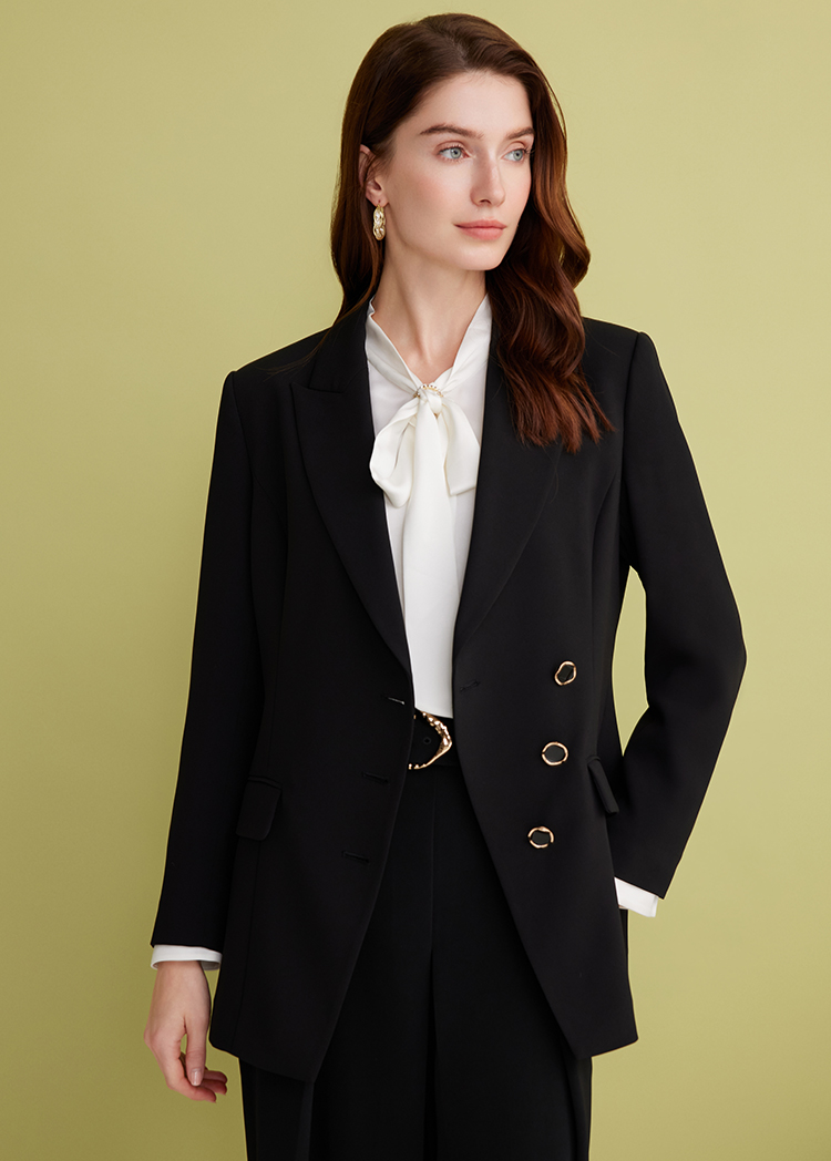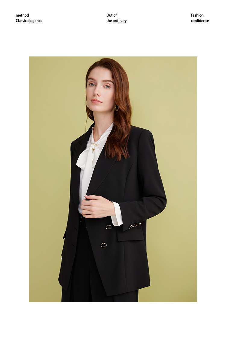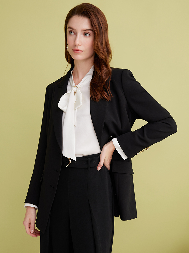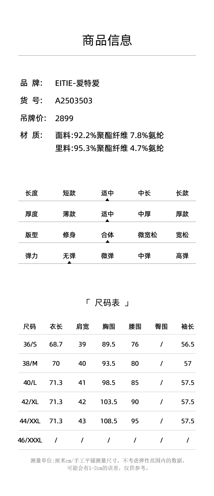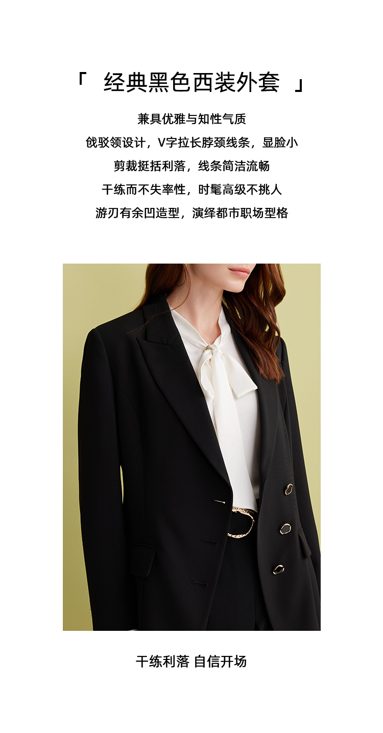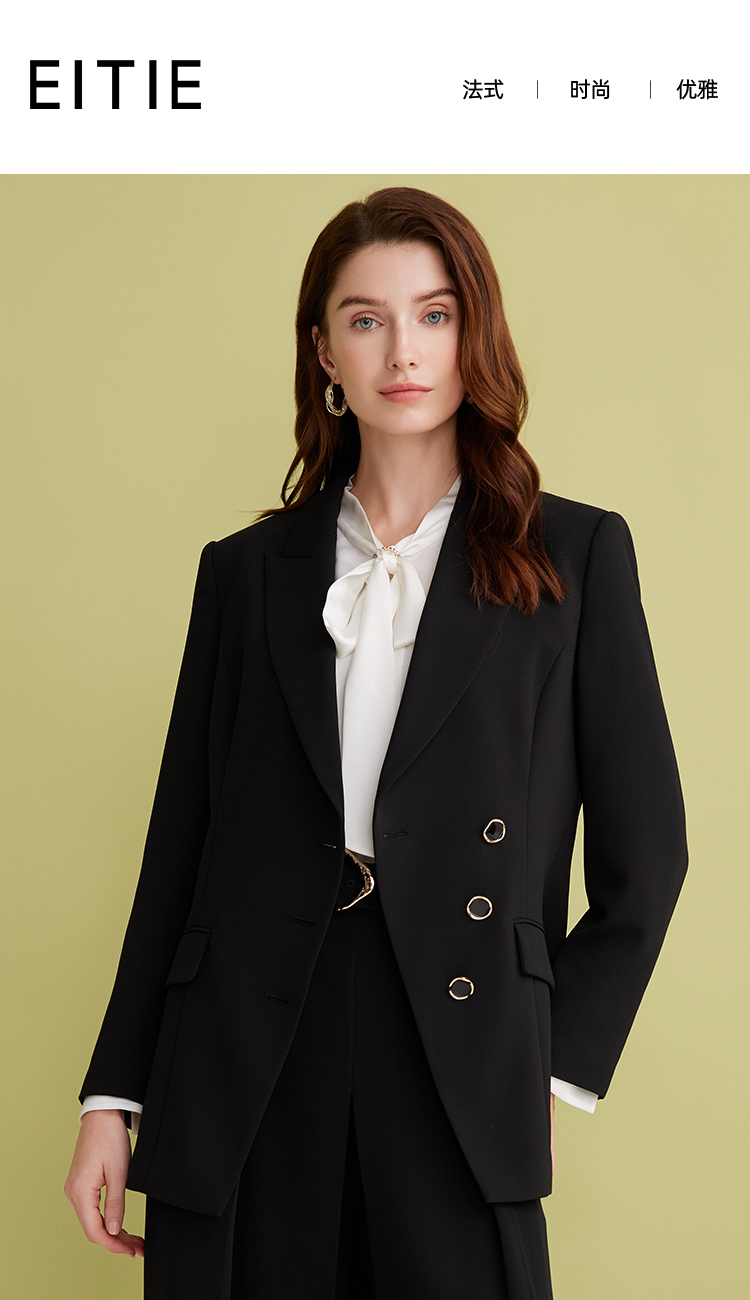 EITIE爱特爱气质精致通勤正式感收腰显瘦黑色西装外套2025春新款A2503503