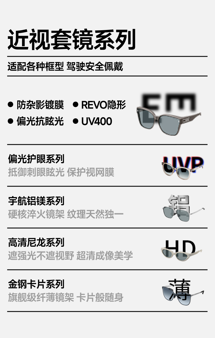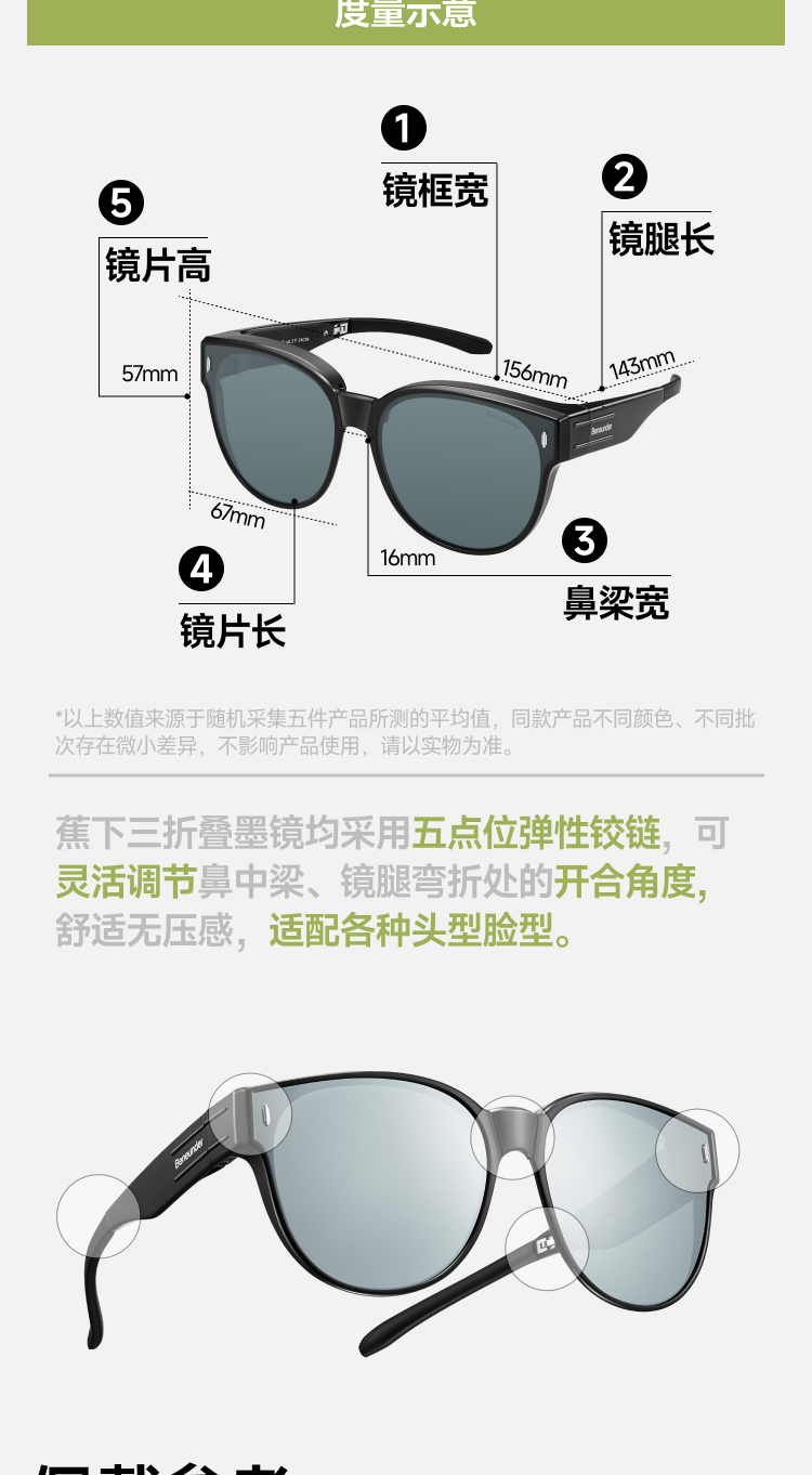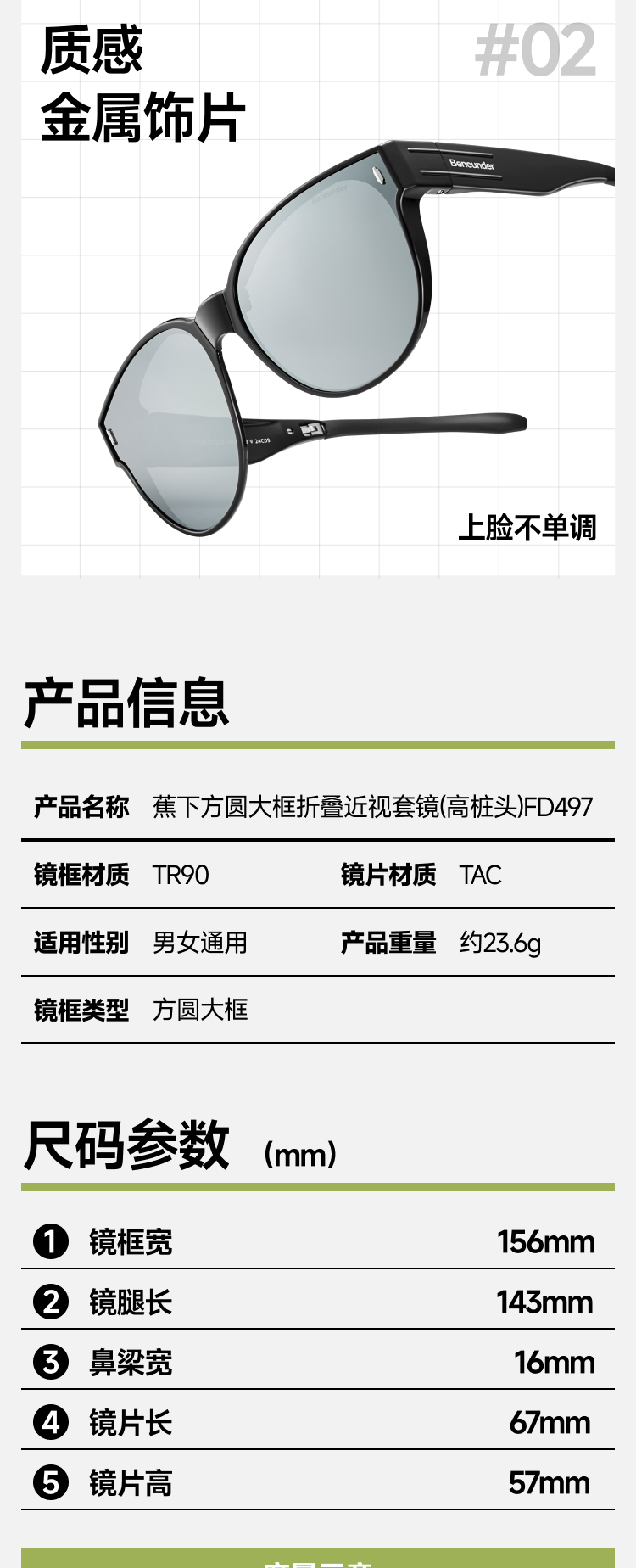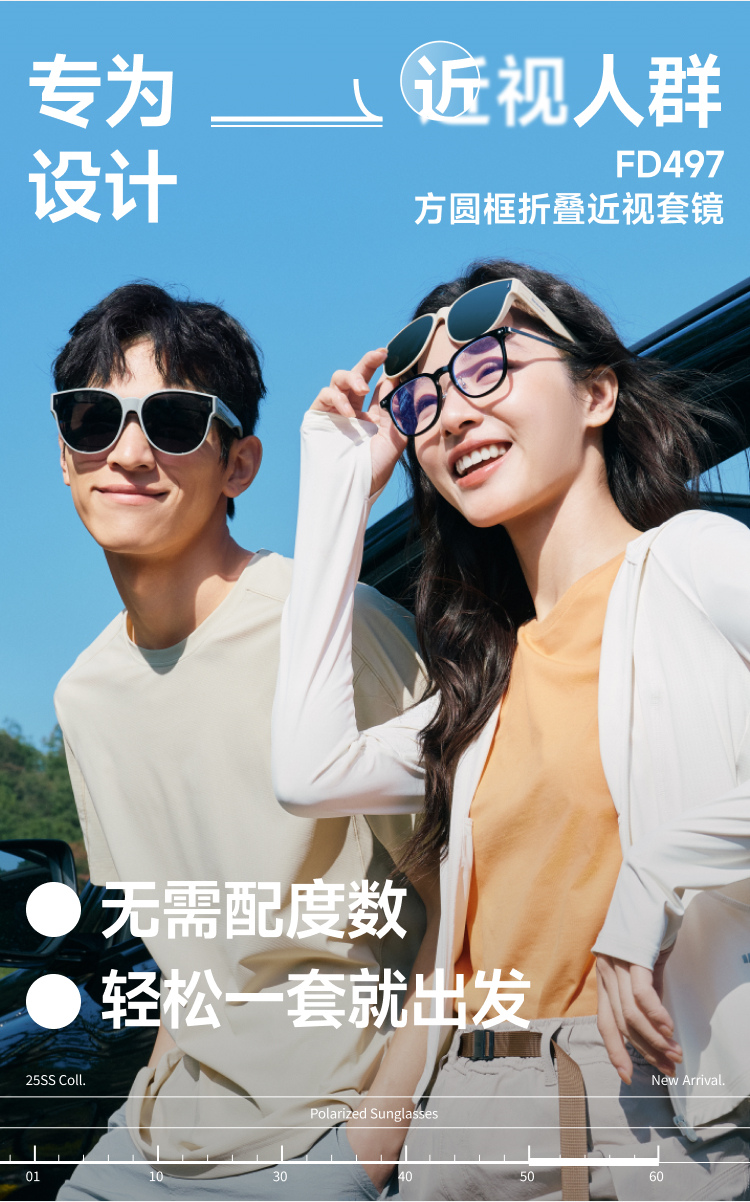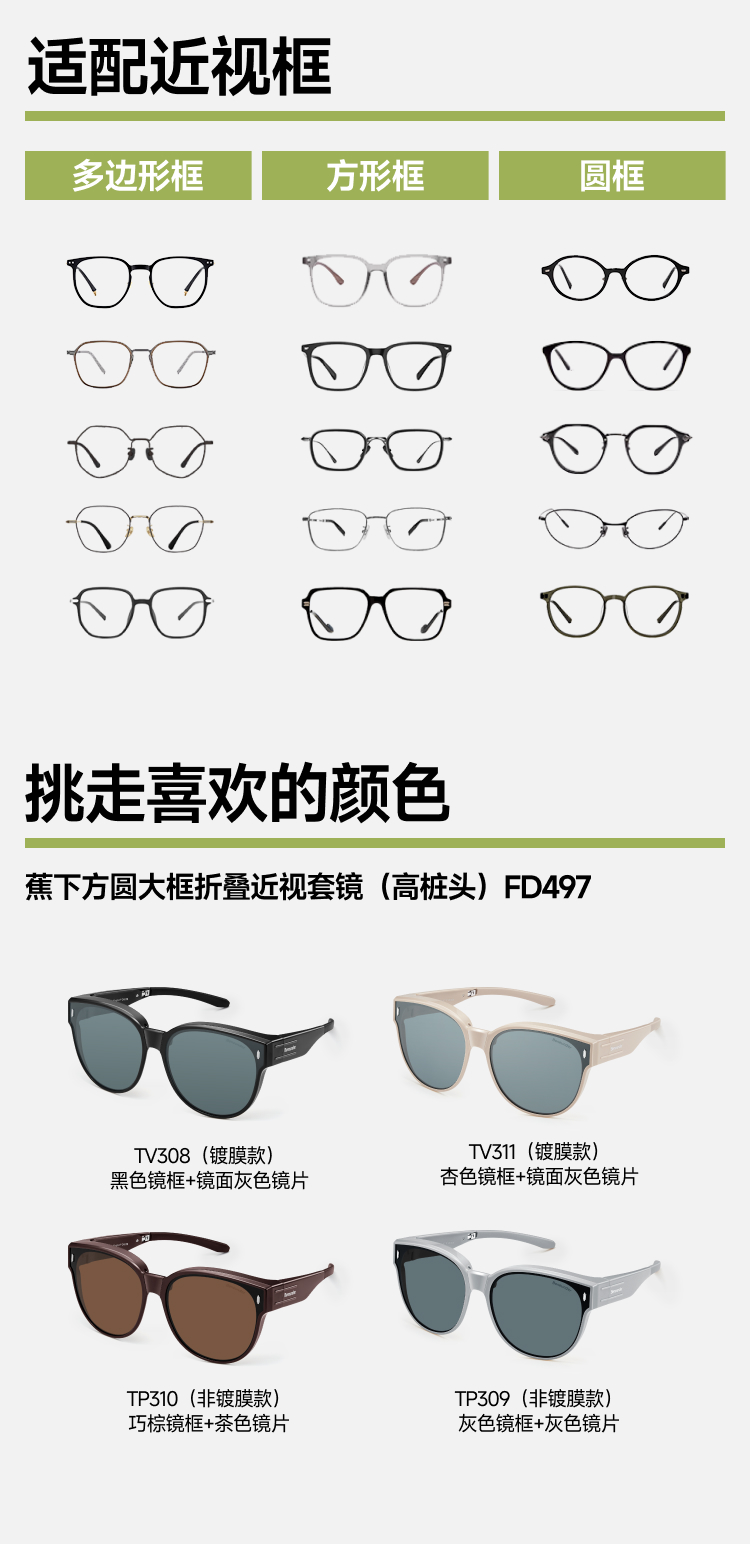 【25年新品】蕉下方圆大框折叠近视套镜(高桩头)FD497