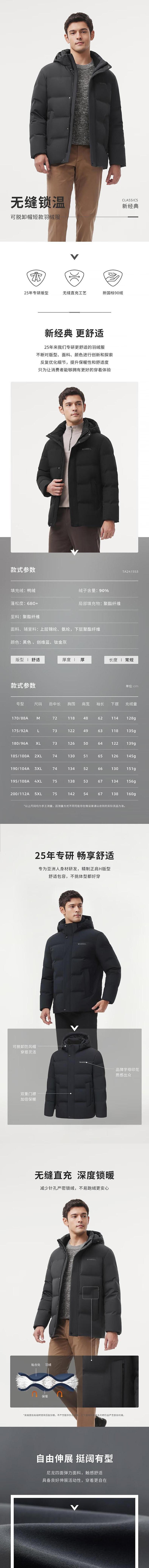 坦博尔 羽绒服男短款可脱卸帽 TA241553