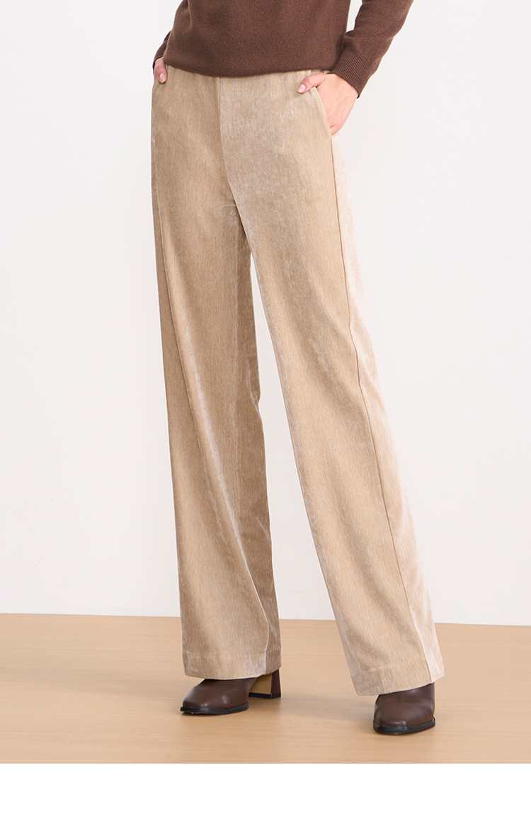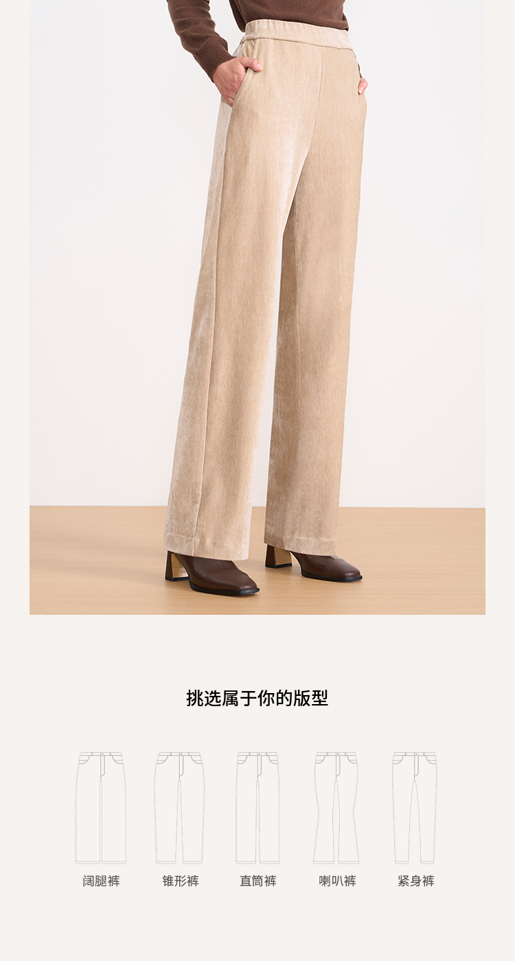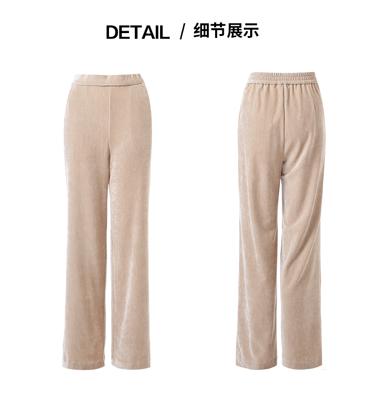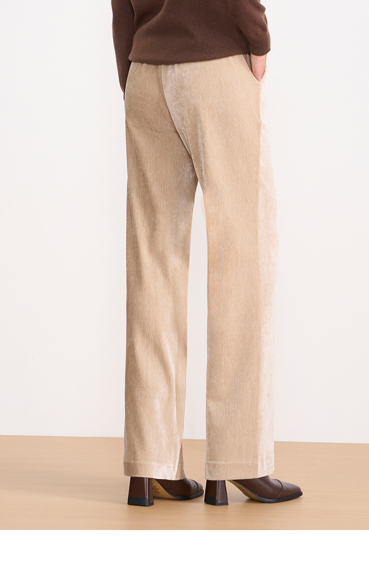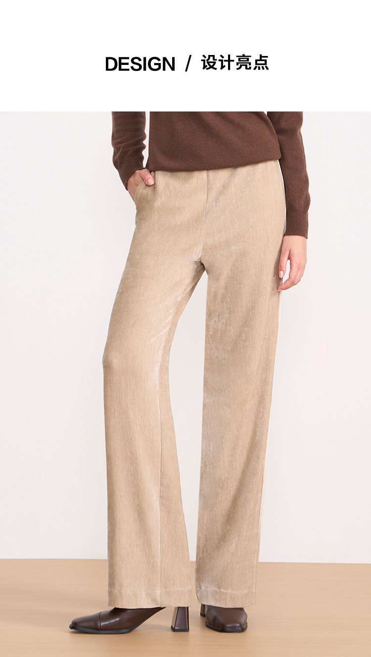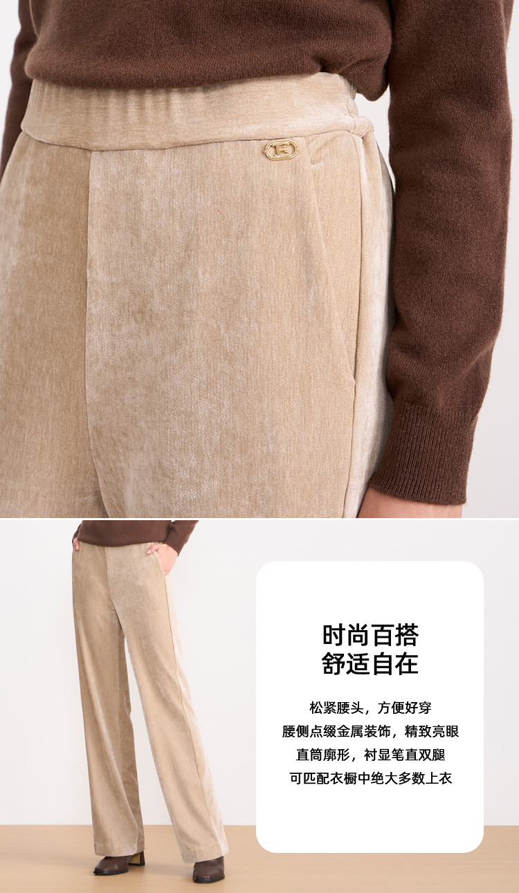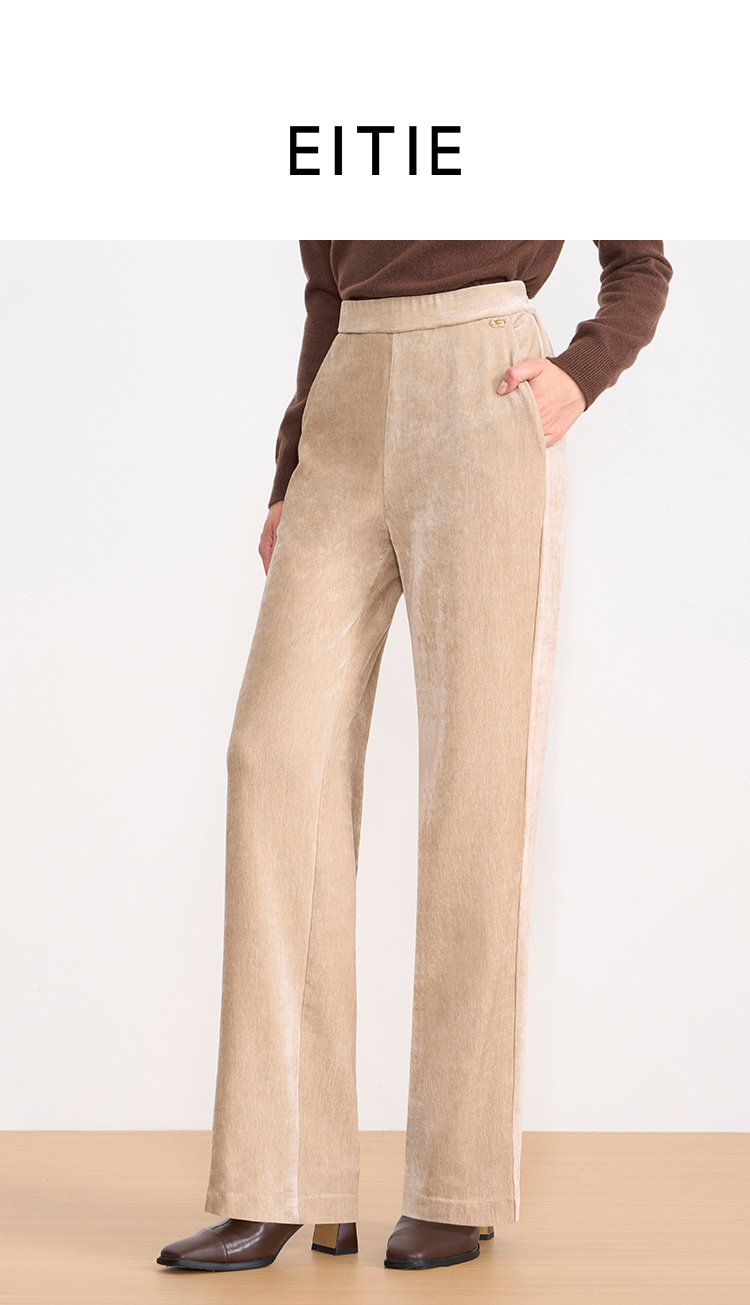 EITIE爱特爱气质燕麦色高腰显瘦休闲裤雪尼尔直筒裤冬季新款D2505909