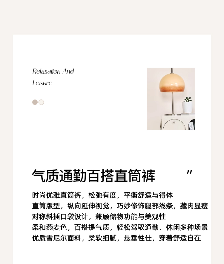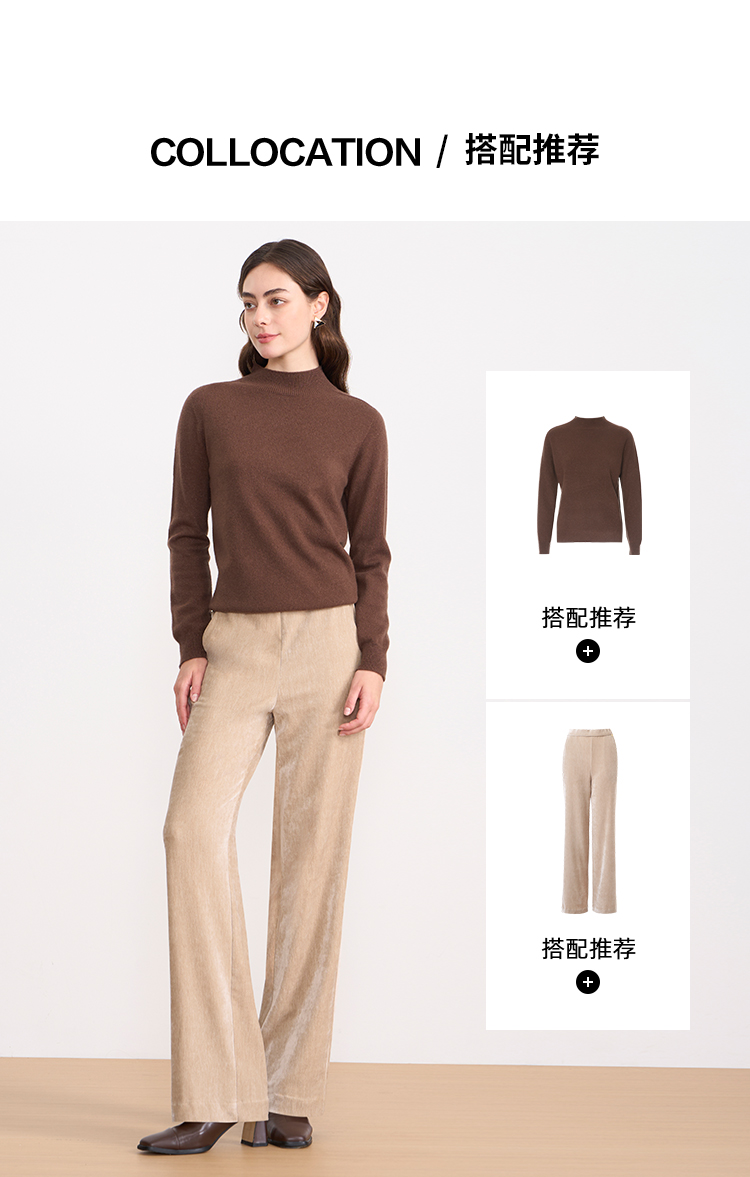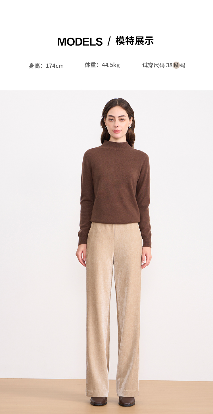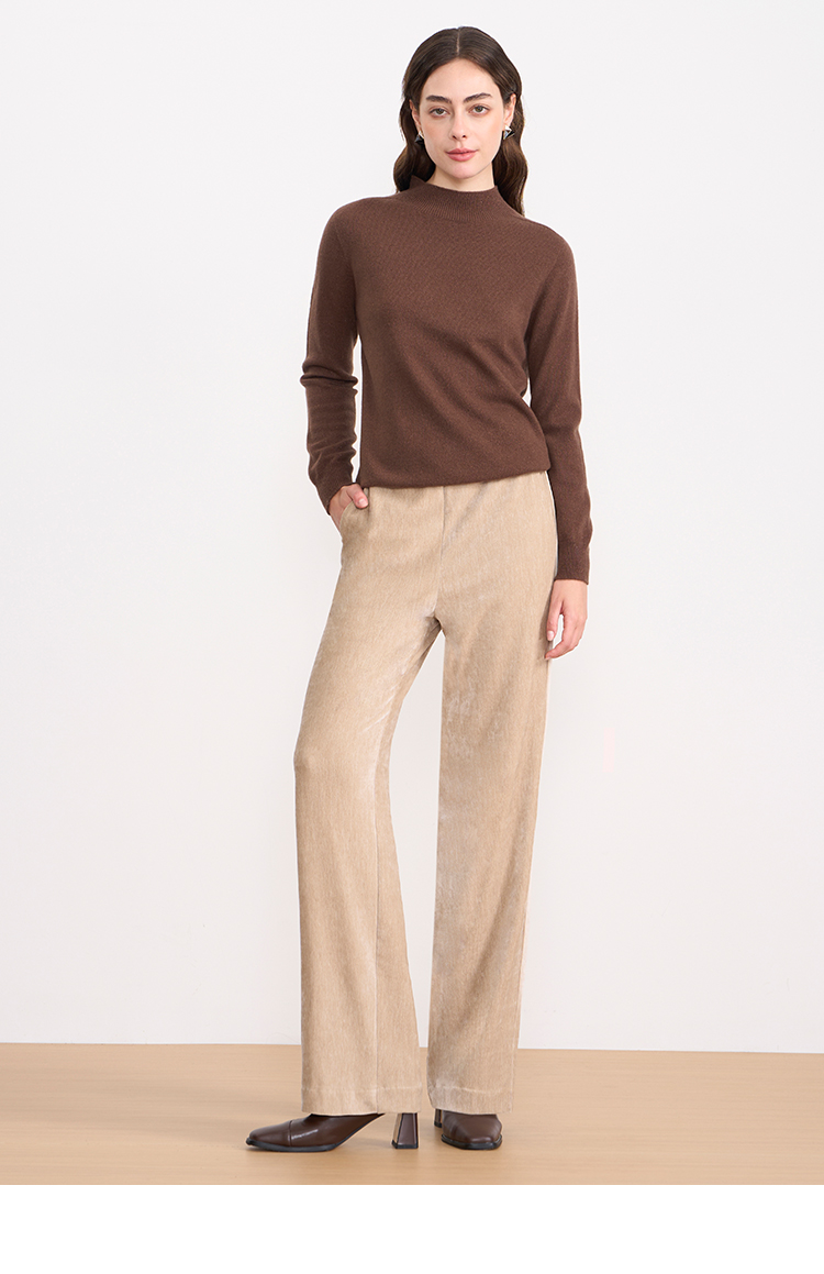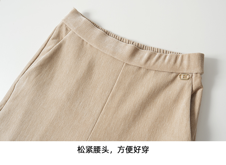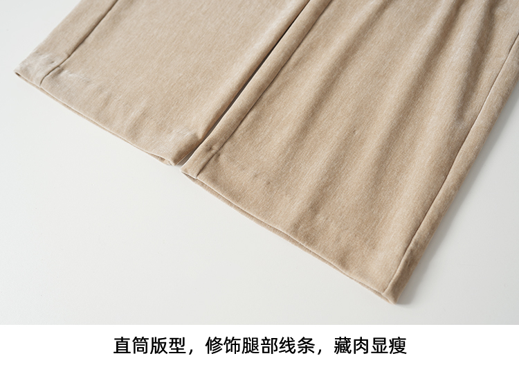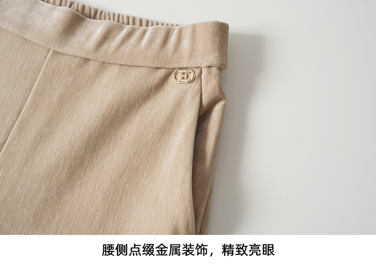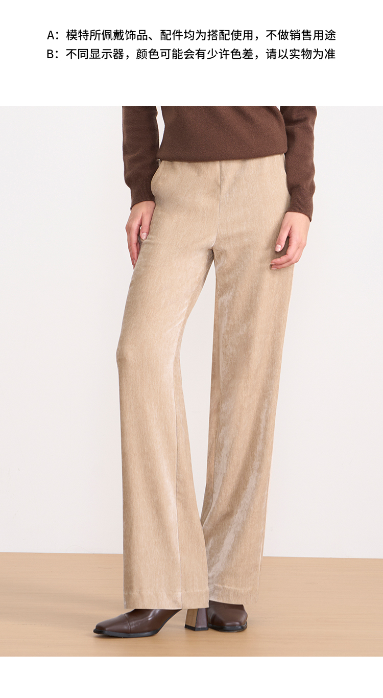 EITIE爱特爱气质燕麦色高腰显瘦休闲裤雪尼尔直筒裤冬季新款D2505909