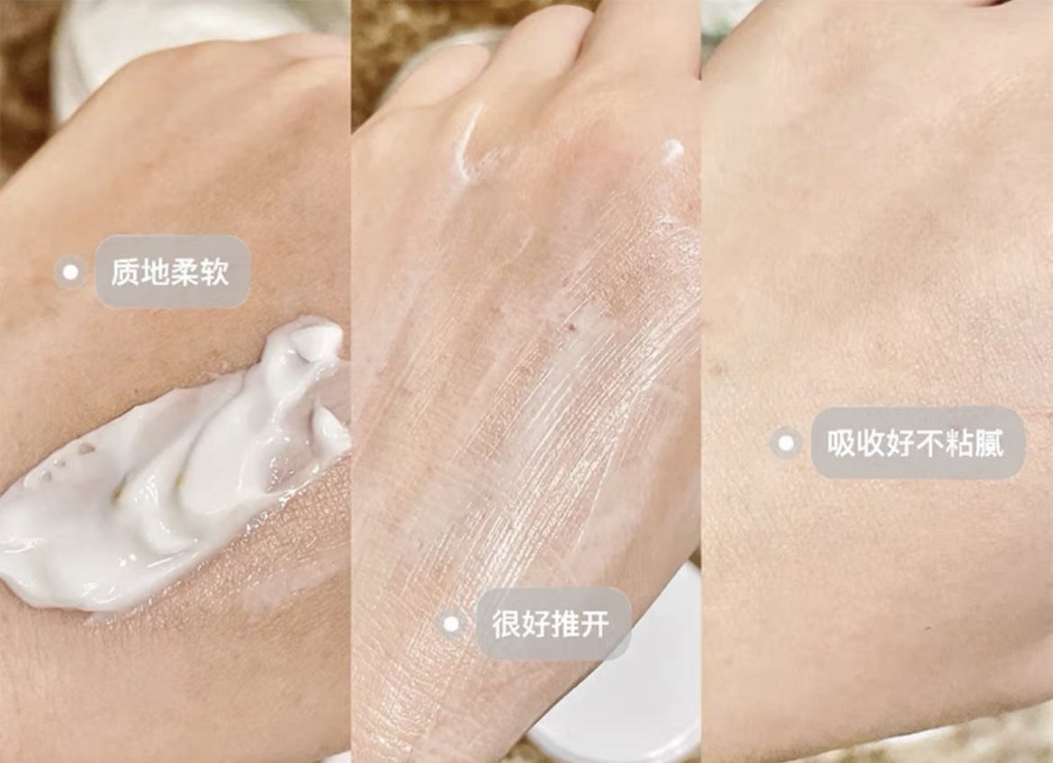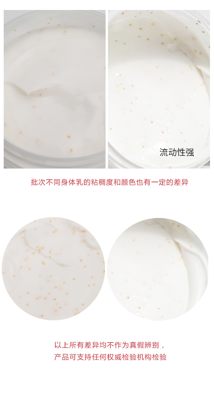 打开这罐润肤乳液,绿茶香水的清新扑面而来。仔细看看,这润滑的乳液中还混合了一粒一粒橘红色的小颗粒,原来,这是糅合了多种草本植物和天然蜂蜜而成的保湿精华颗粒,具有加倍保湿,营养之功效。