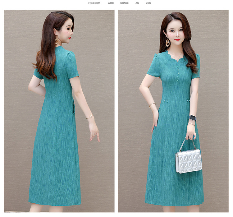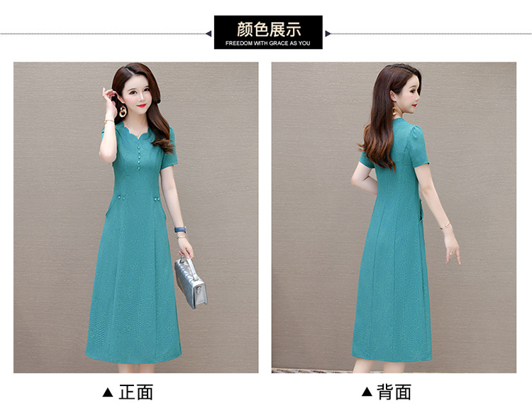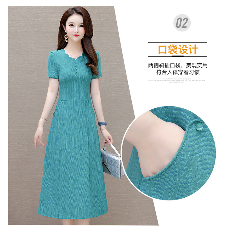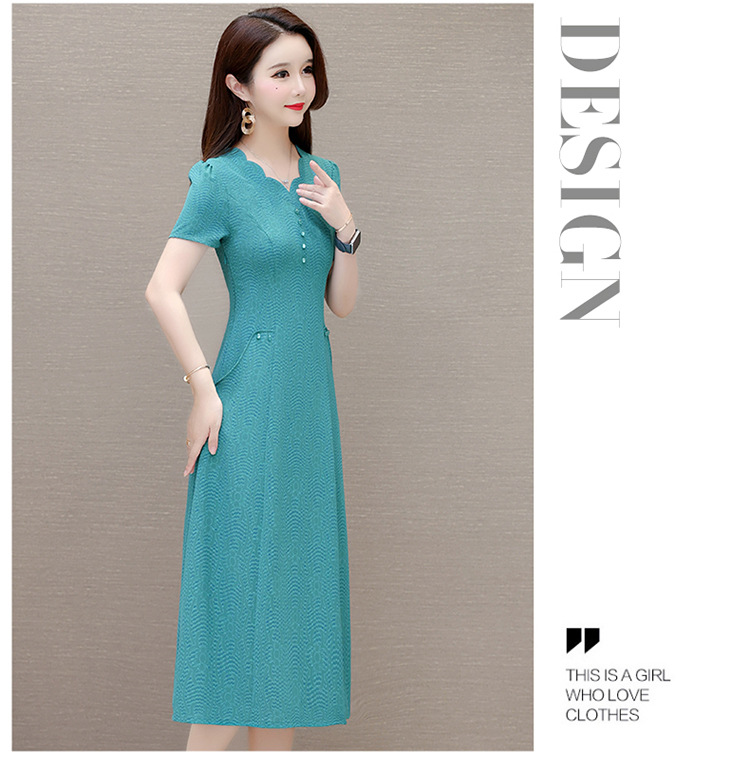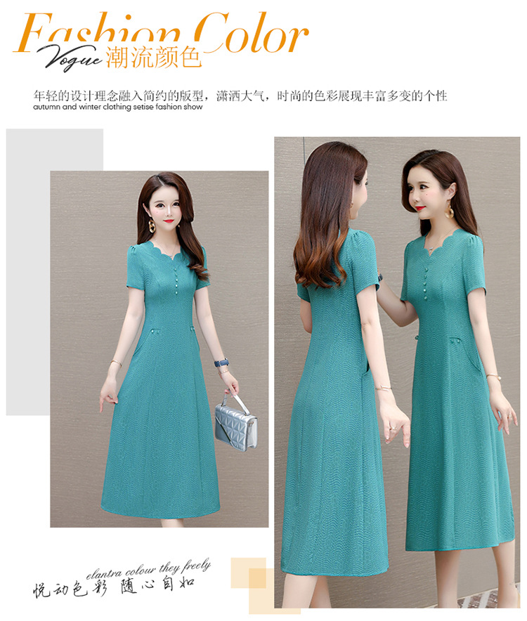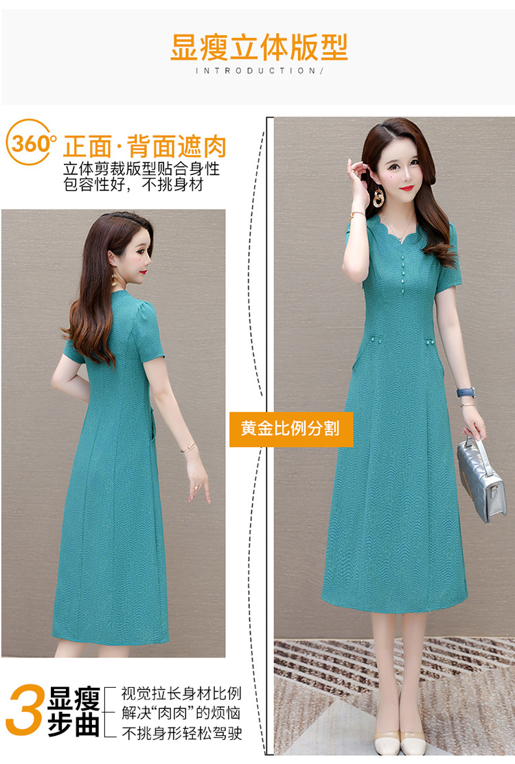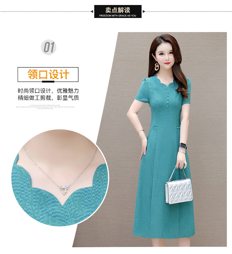短袖中长款波浪花纹,连衣裙A字裙QYM-KED-H1838-Y