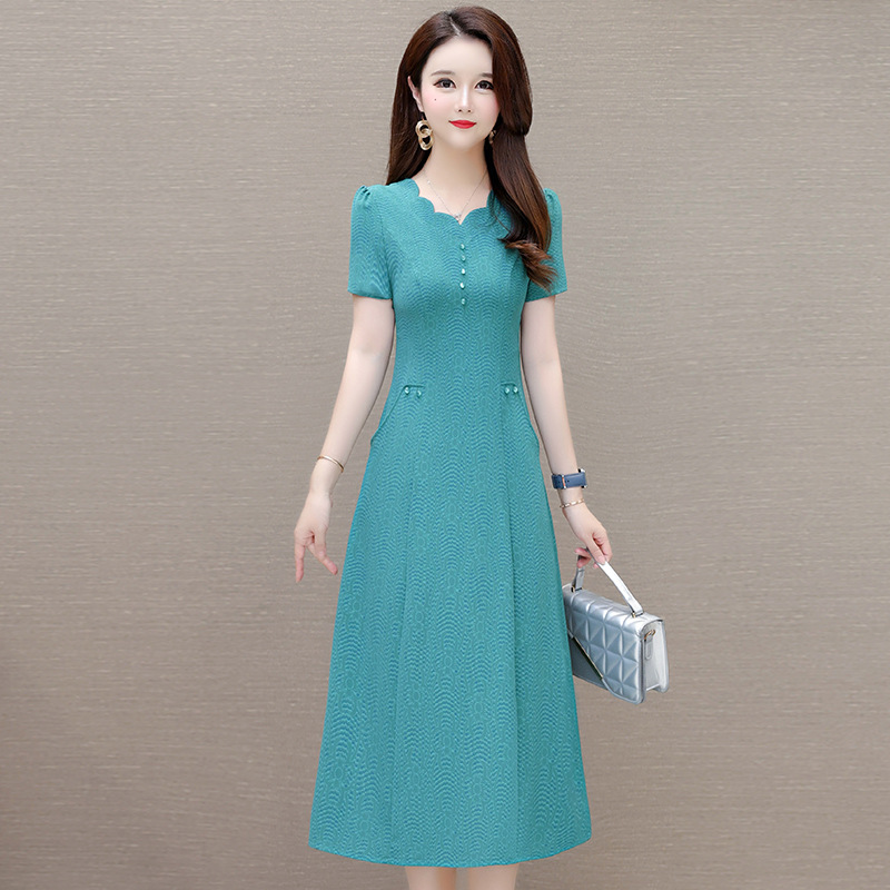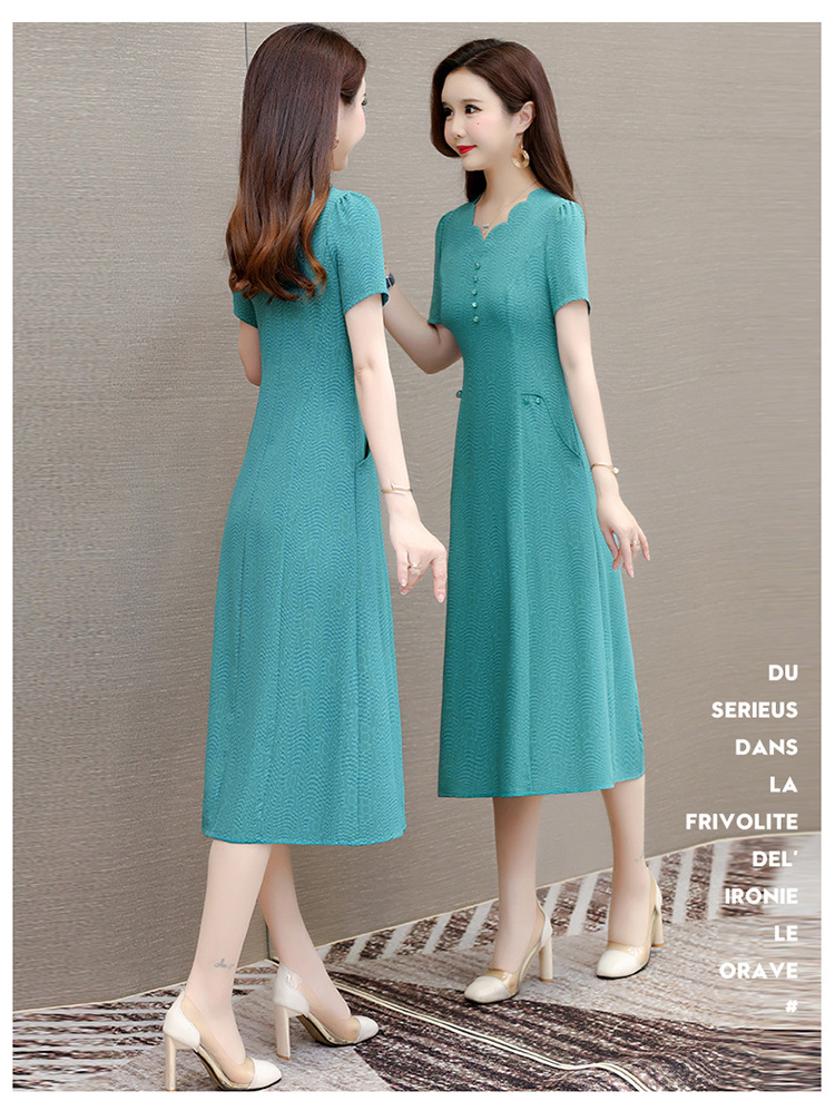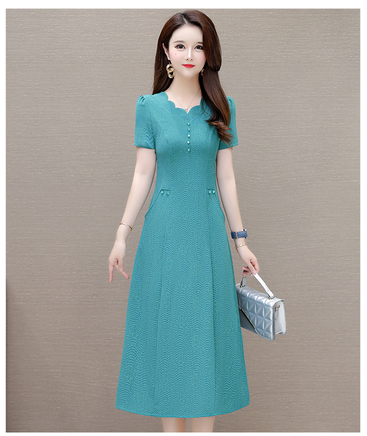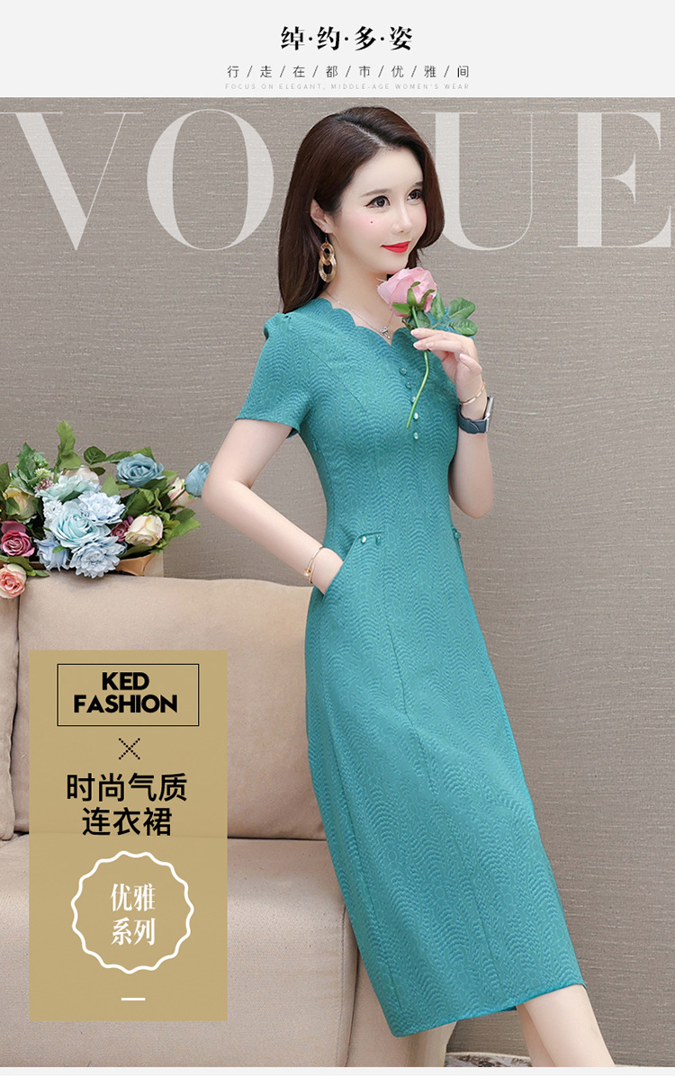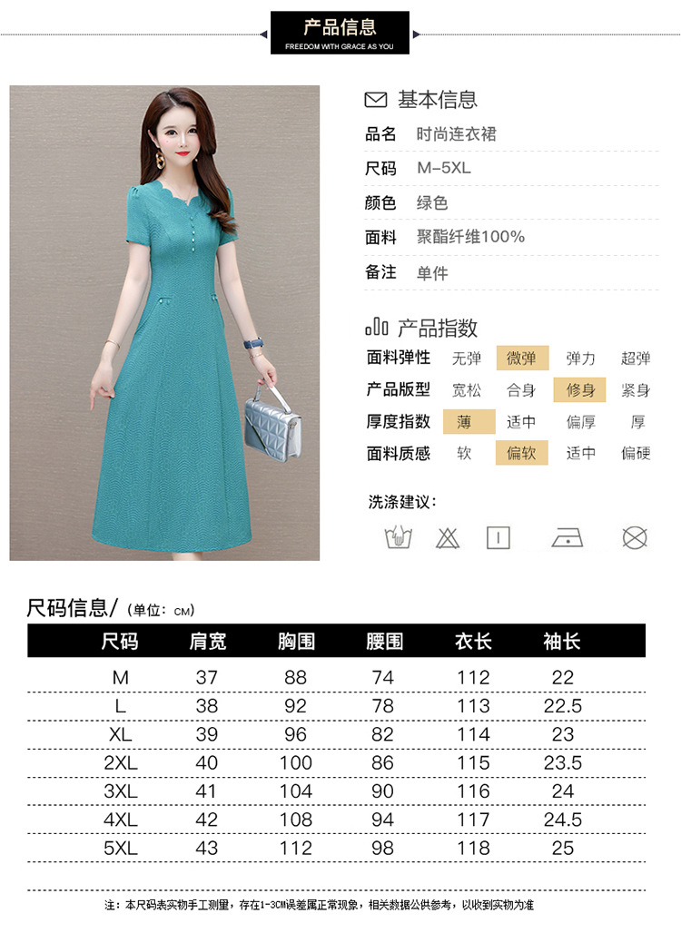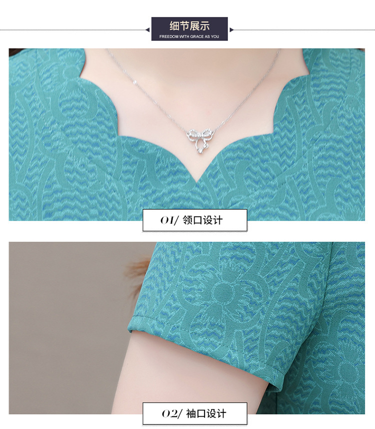 短袖中长款波浪花纹,连衣裙A字裙QYM-KED-H1838-Y