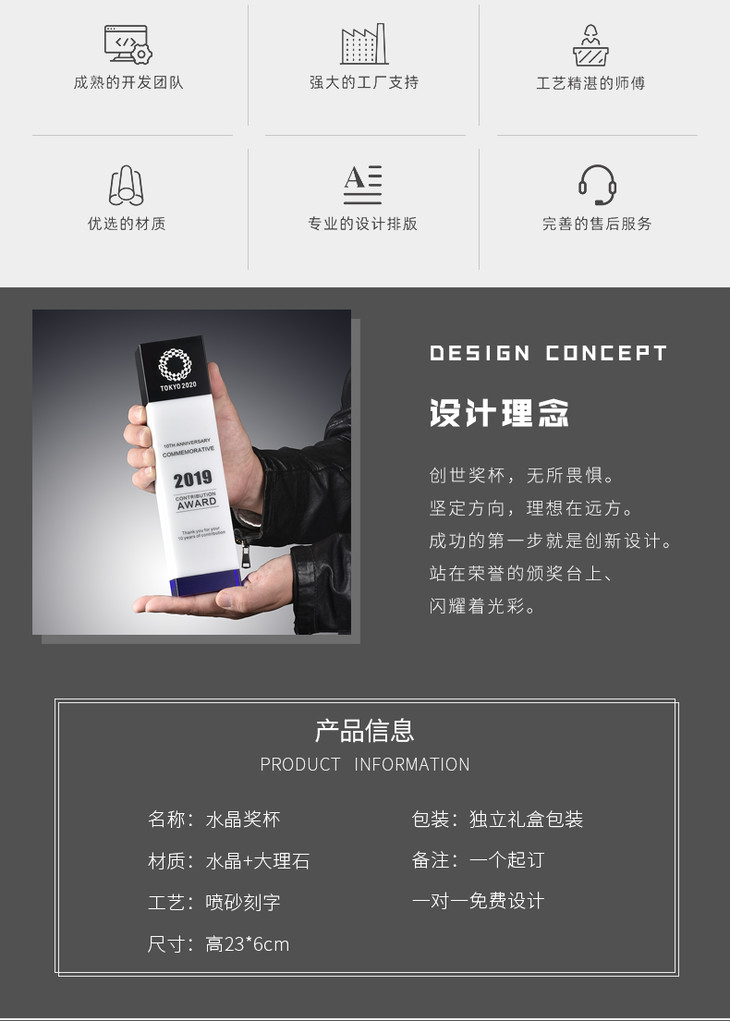 水晶奖杯定制定做大理石奖品高档创意玻璃比赛表彰荣誉纪念品