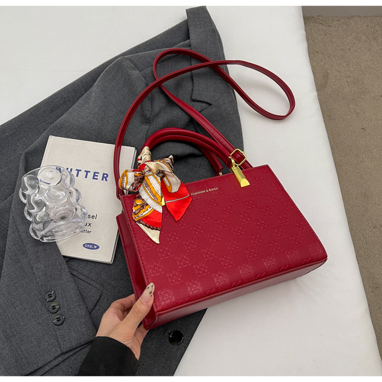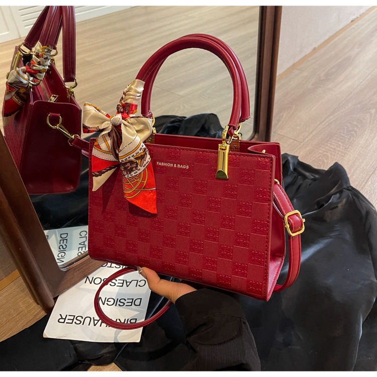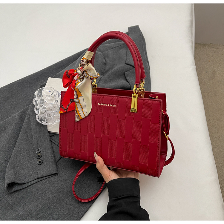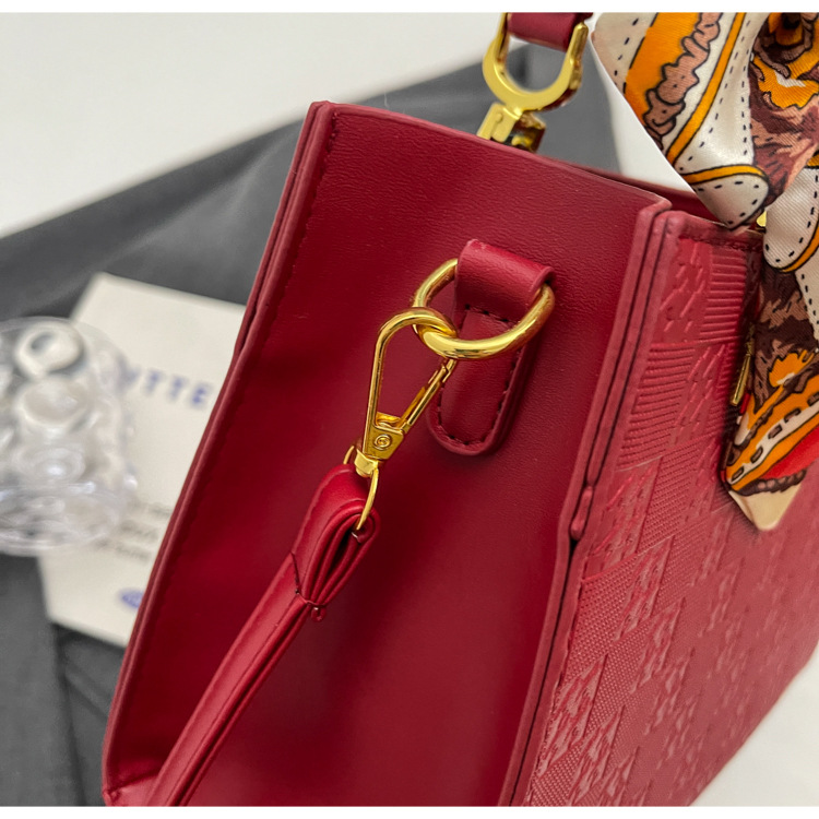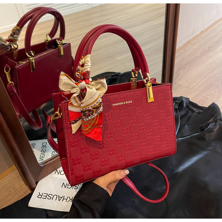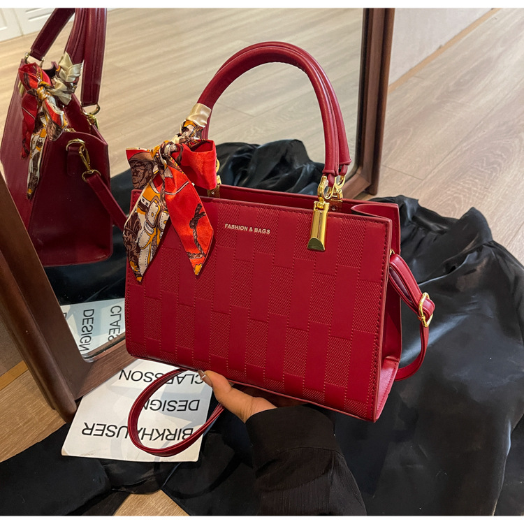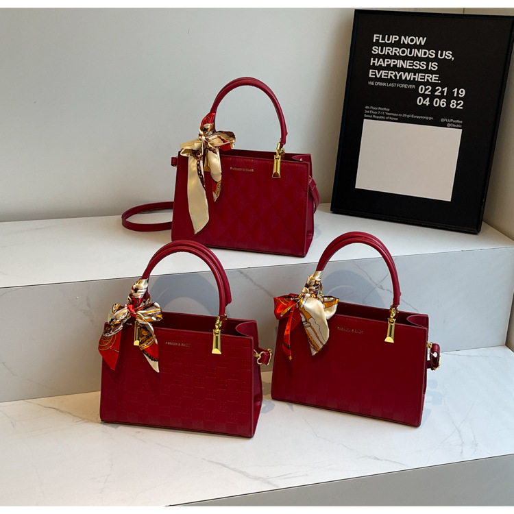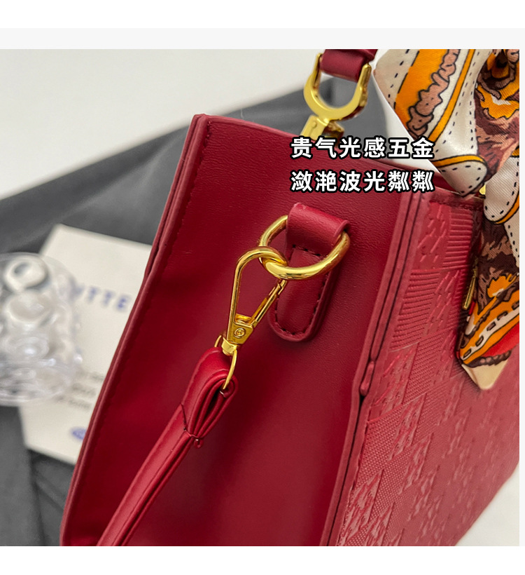【新款红色手提包】大容量时尚大气单肩包 斜挎丝巾结婚伴娘新娘手提包