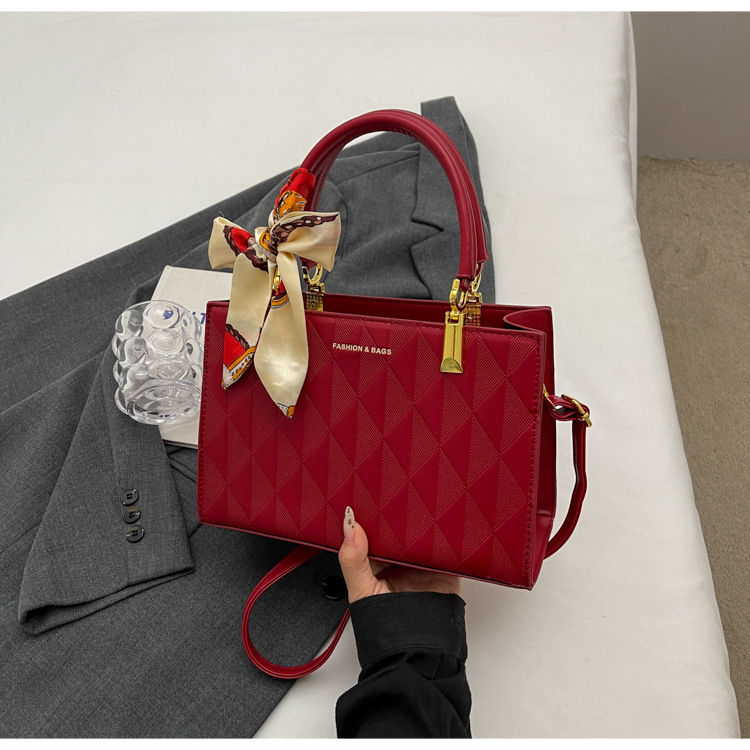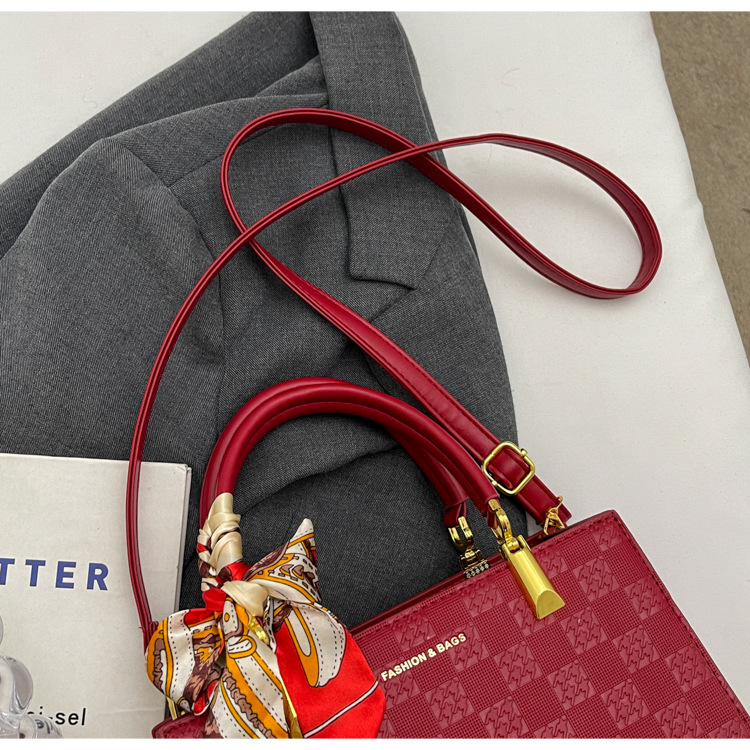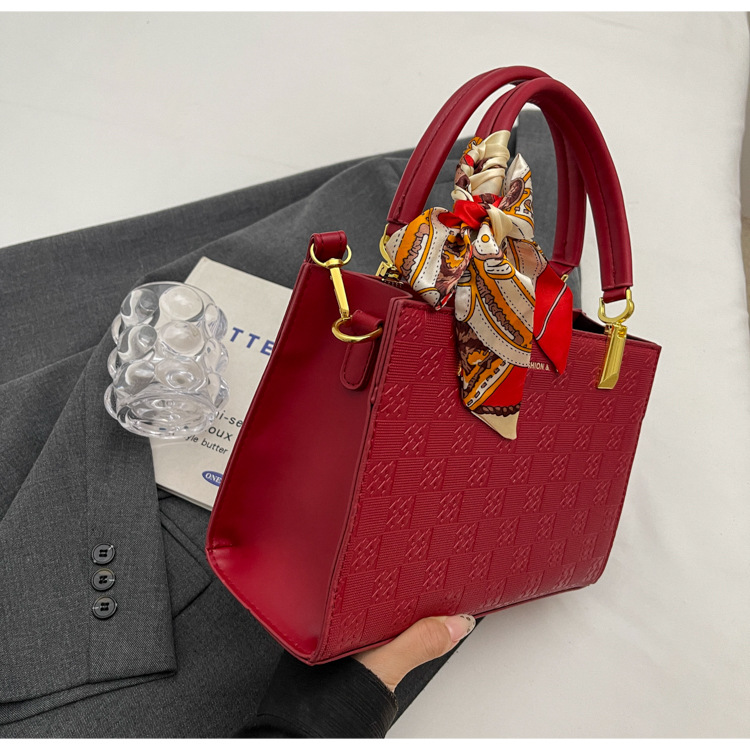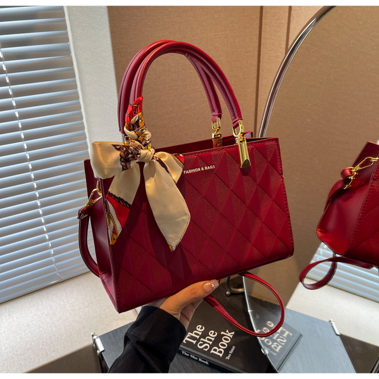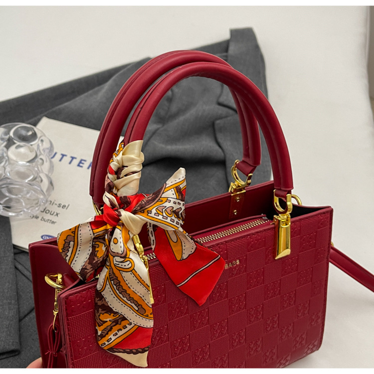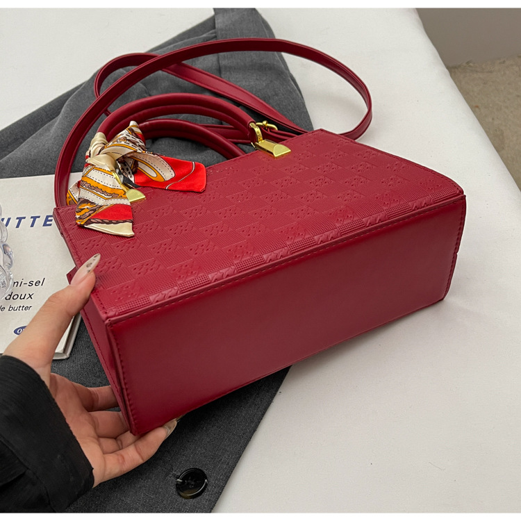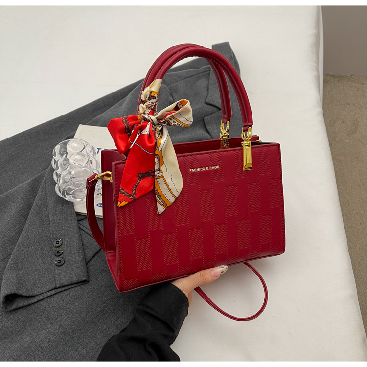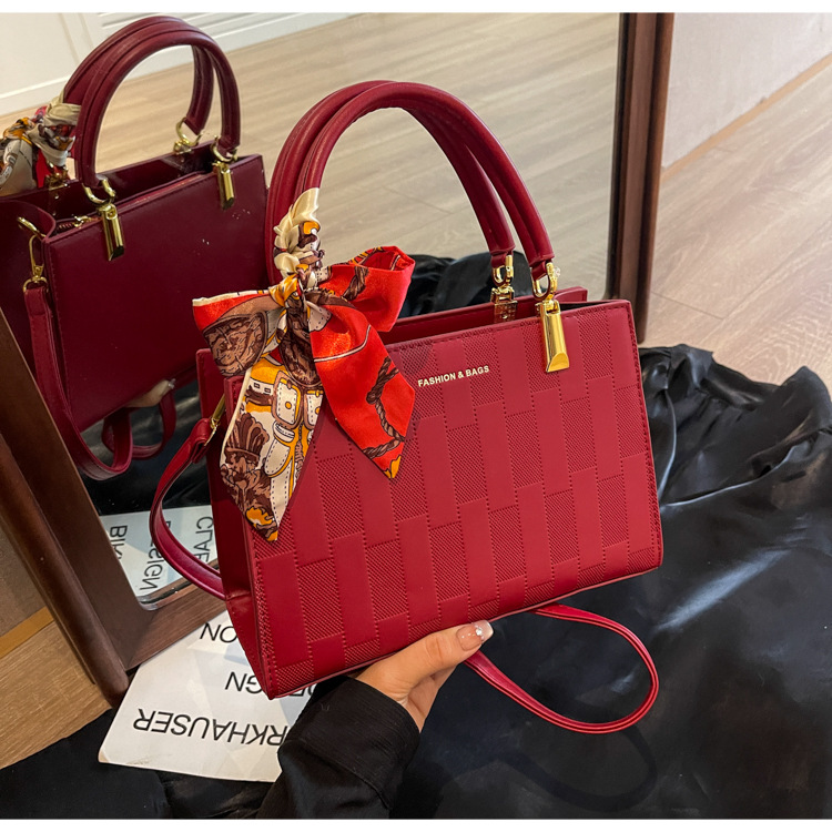 【新款红色手提包】大容量时尚大气单肩包 斜挎丝巾结婚伴娘新娘手提包