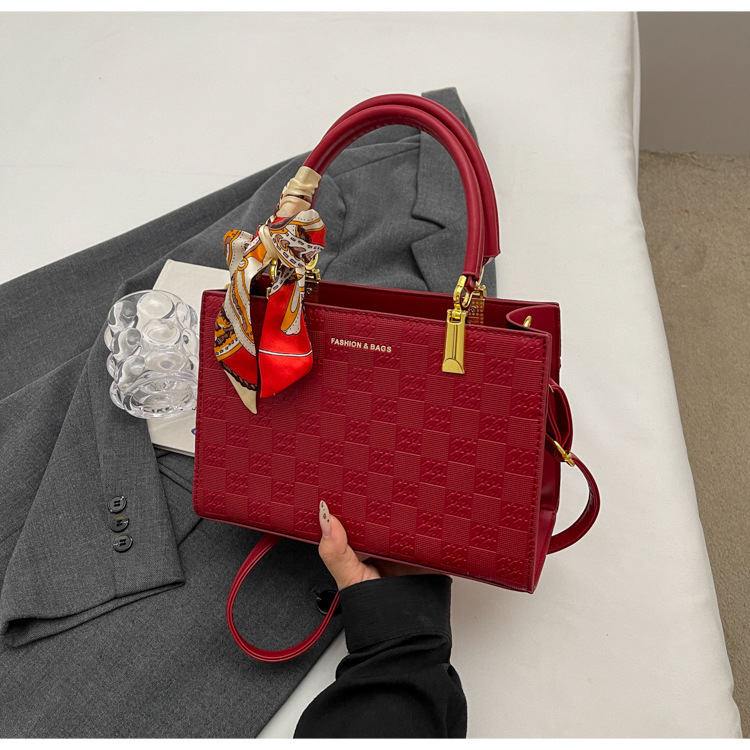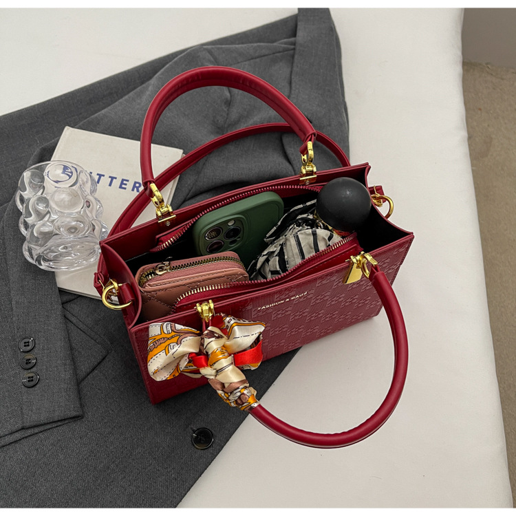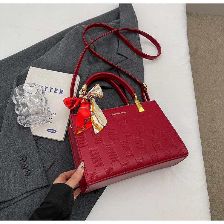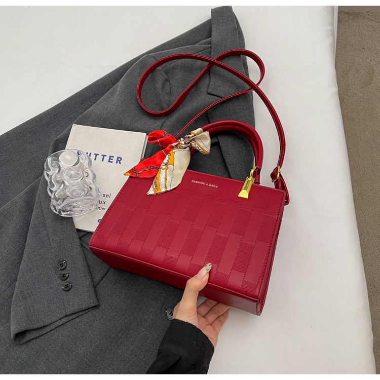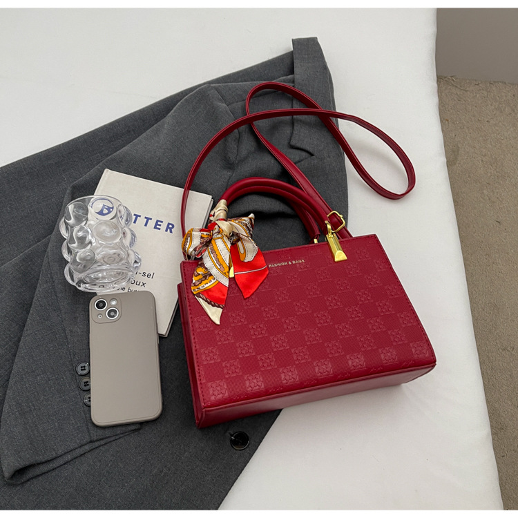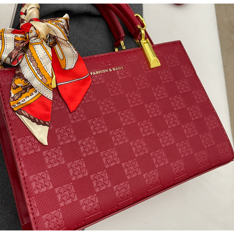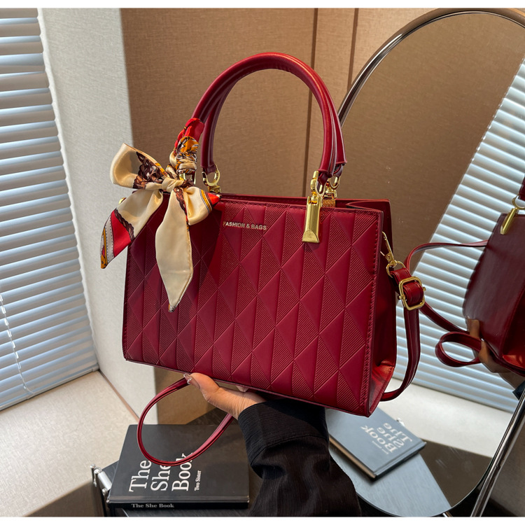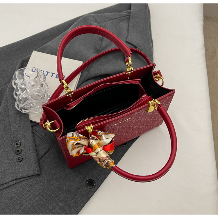 【新款红色手提包】大容量时尚大气单肩包 斜挎丝巾结婚伴娘新娘手提包