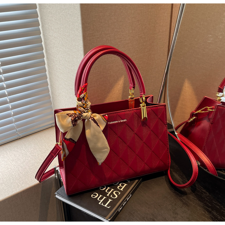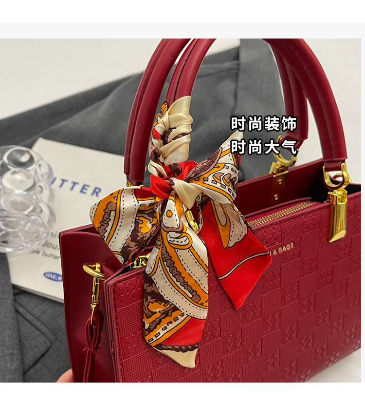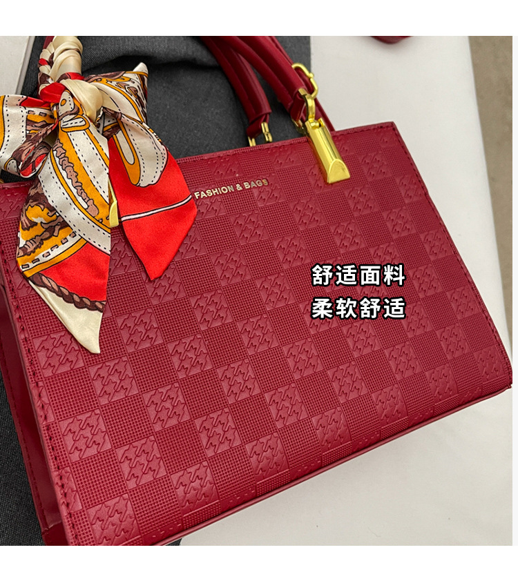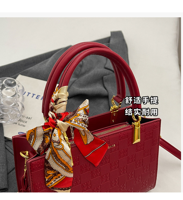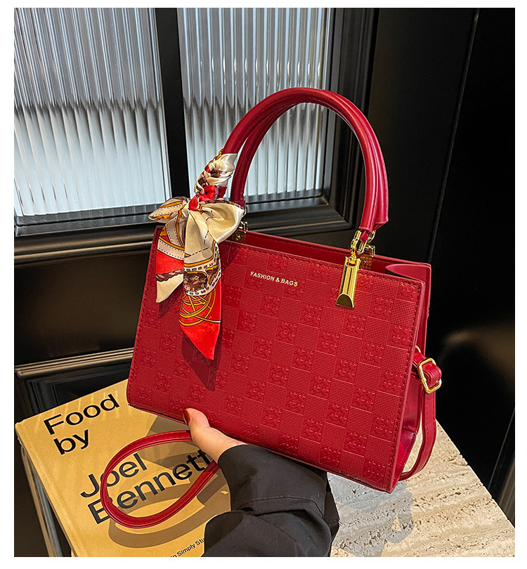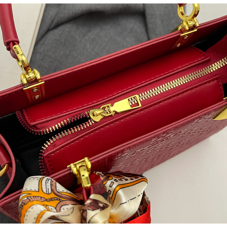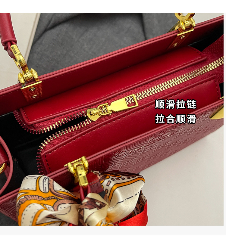【新款红色手提包】大容量时尚大气单肩包 斜挎丝巾结婚伴娘新娘手提包 商品图0