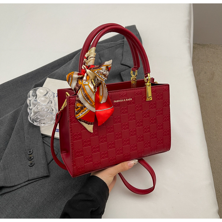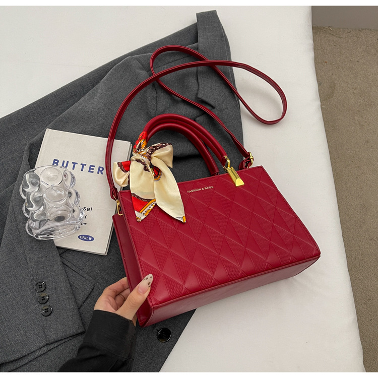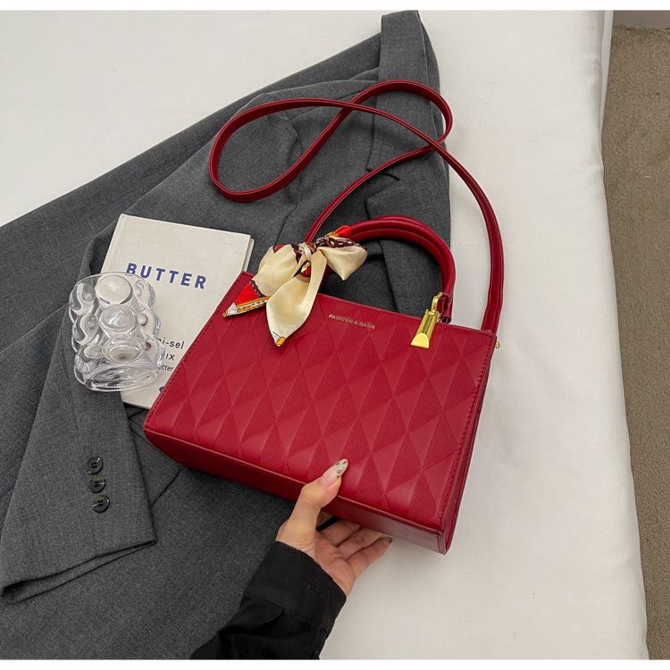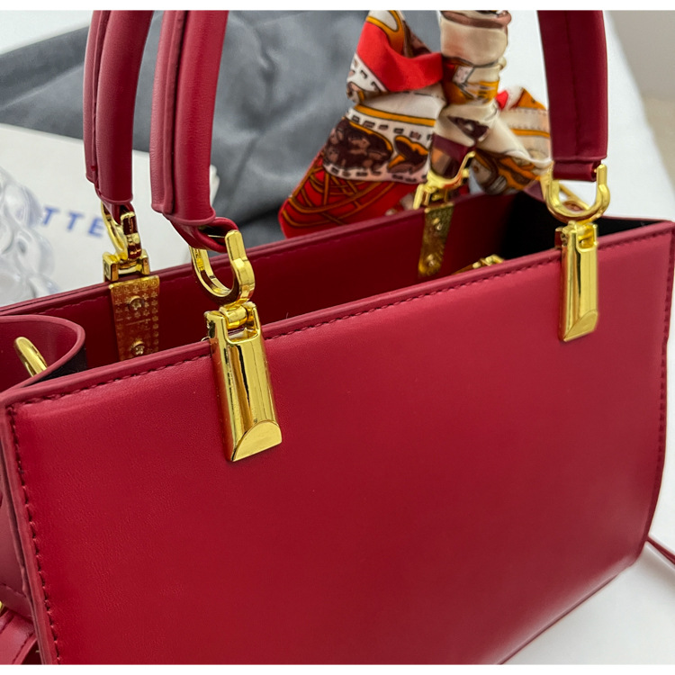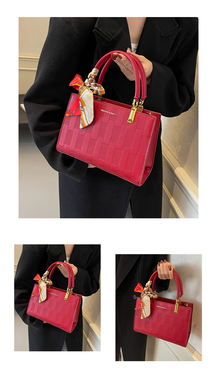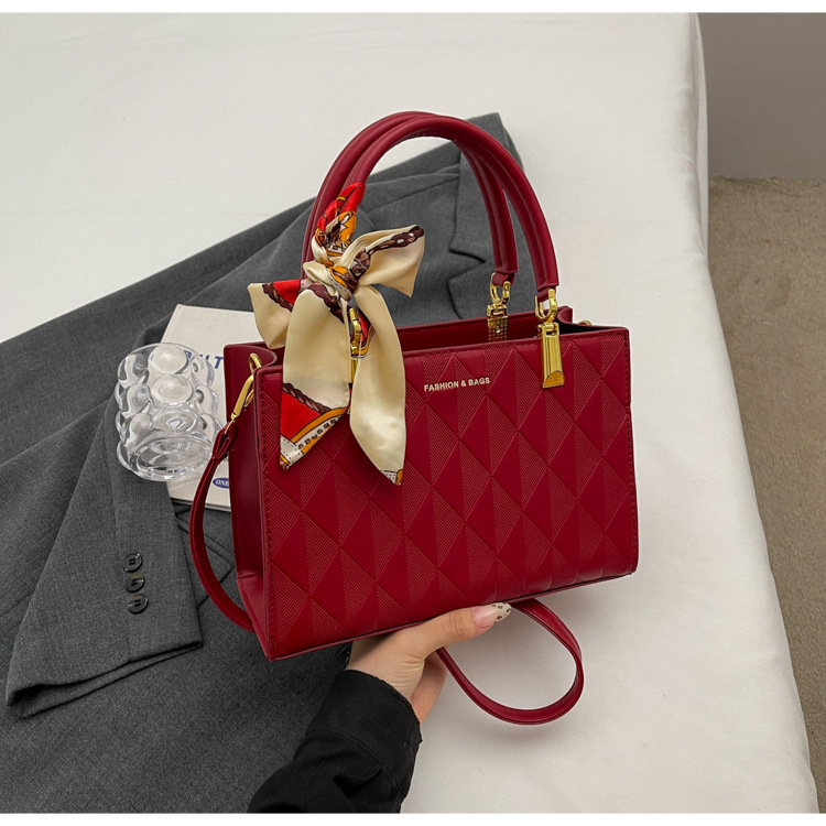 【新款红色手提包】大容量时尚大气单肩包 斜挎丝巾结婚伴娘新娘手提包 商品图0