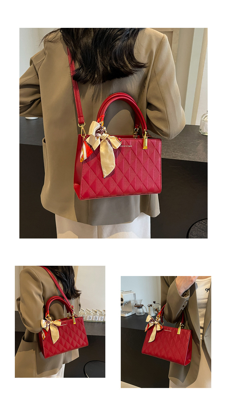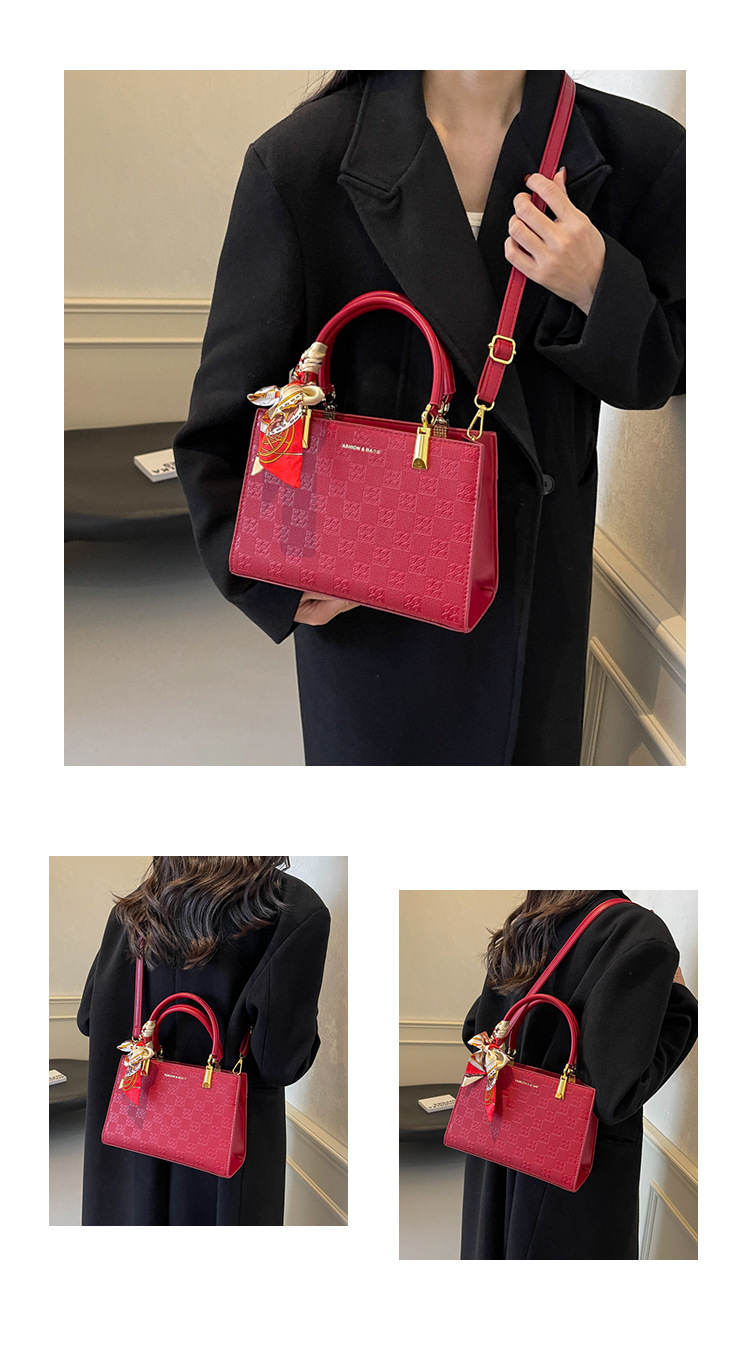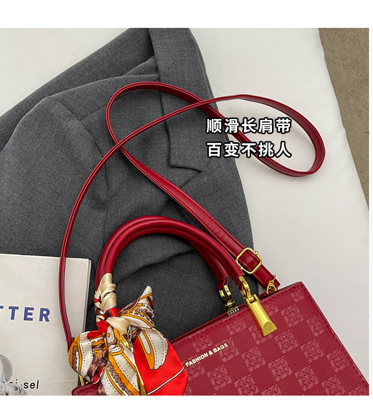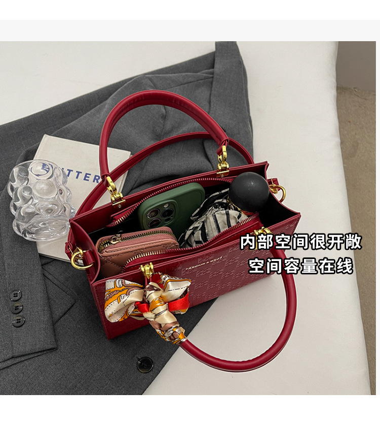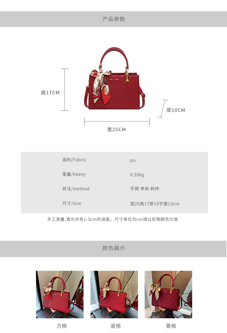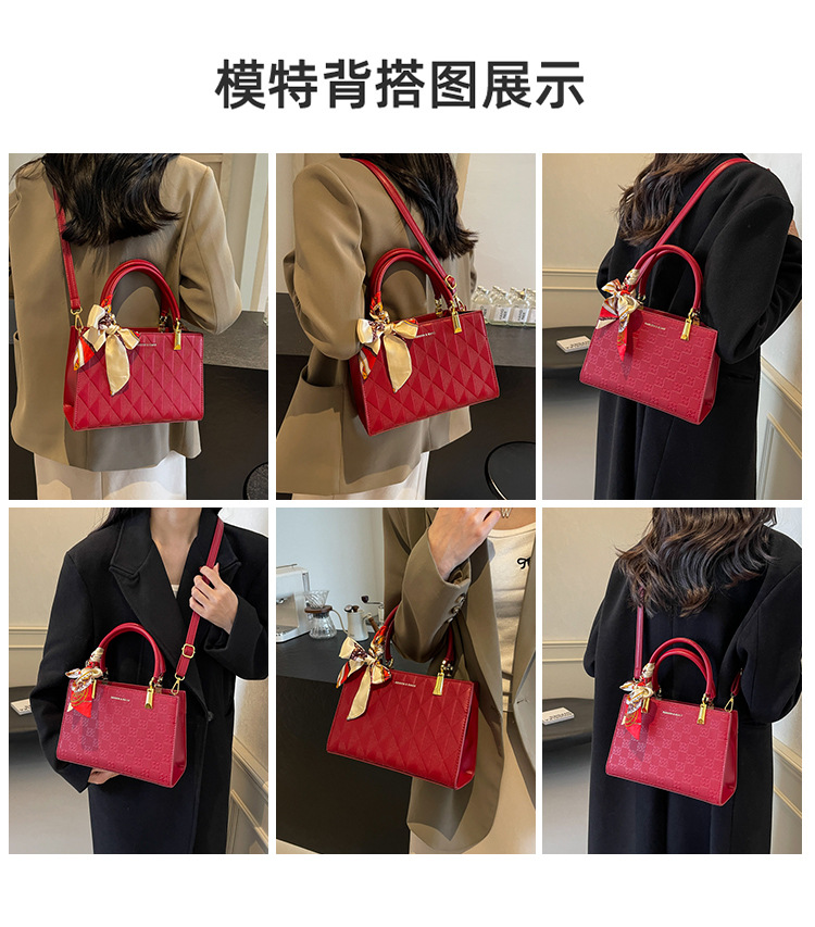 【新款红色手提包】大容量时尚大气单肩包 斜挎丝巾结婚伴娘新娘手提包 商品图4