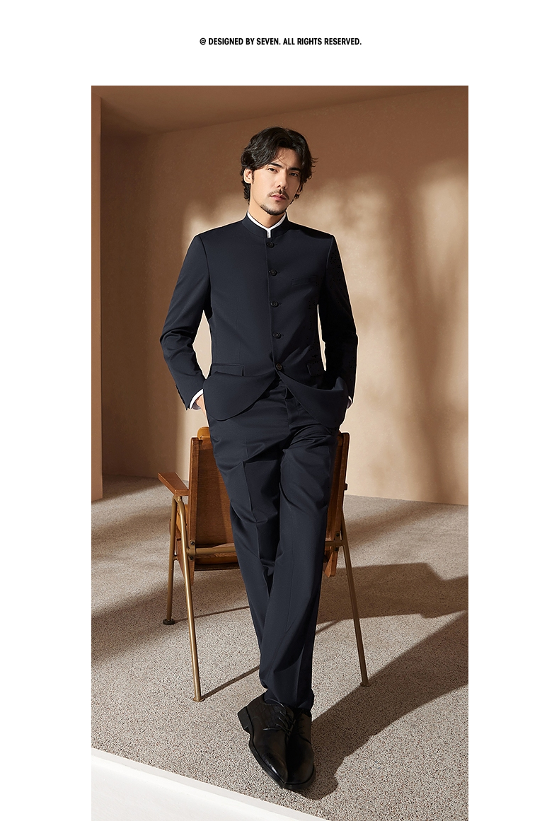 柒牌西服男套装2024新款可拆卸衬衫领商务通勤上班含羊毛西装礼服 127C71120