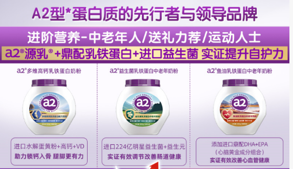 ①A2鱼油乳铁蛋白中老年奶粉调制乳粉