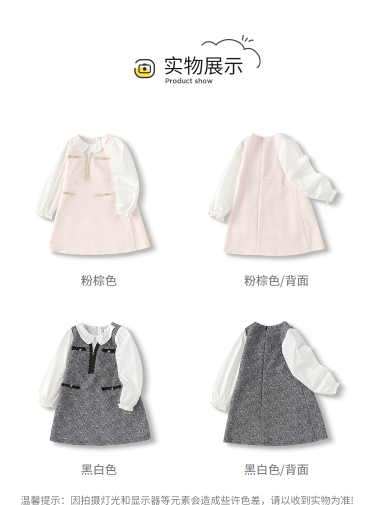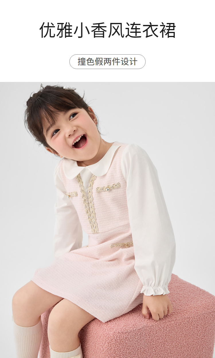 巴拉巴拉童装女童连衣裙秋装新款儿童小香风假两件裙子洋气潮
