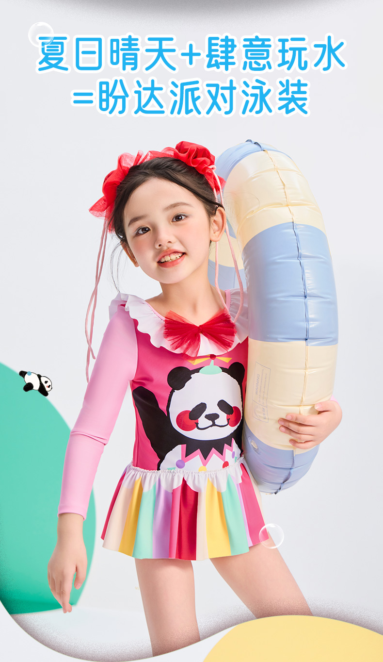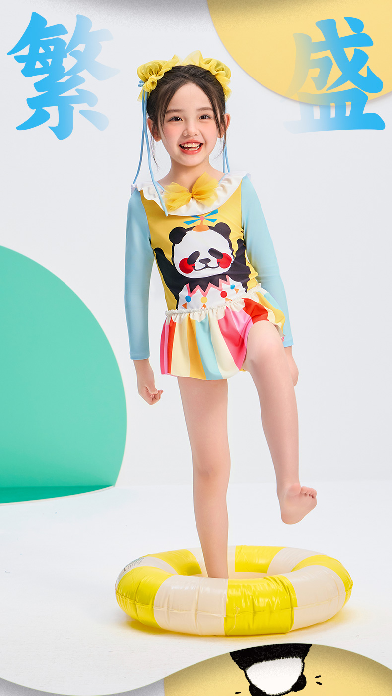 年衣童装连体泳衣2025夏新款卡通多巴胺泳装长袖盼达派对泳装