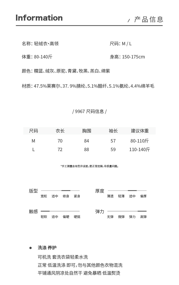 【拍2件99元】【天丝醋酸羊毛针织衫】秋冬莱赛尔修身高领上衣高级感洋气内搭T恤