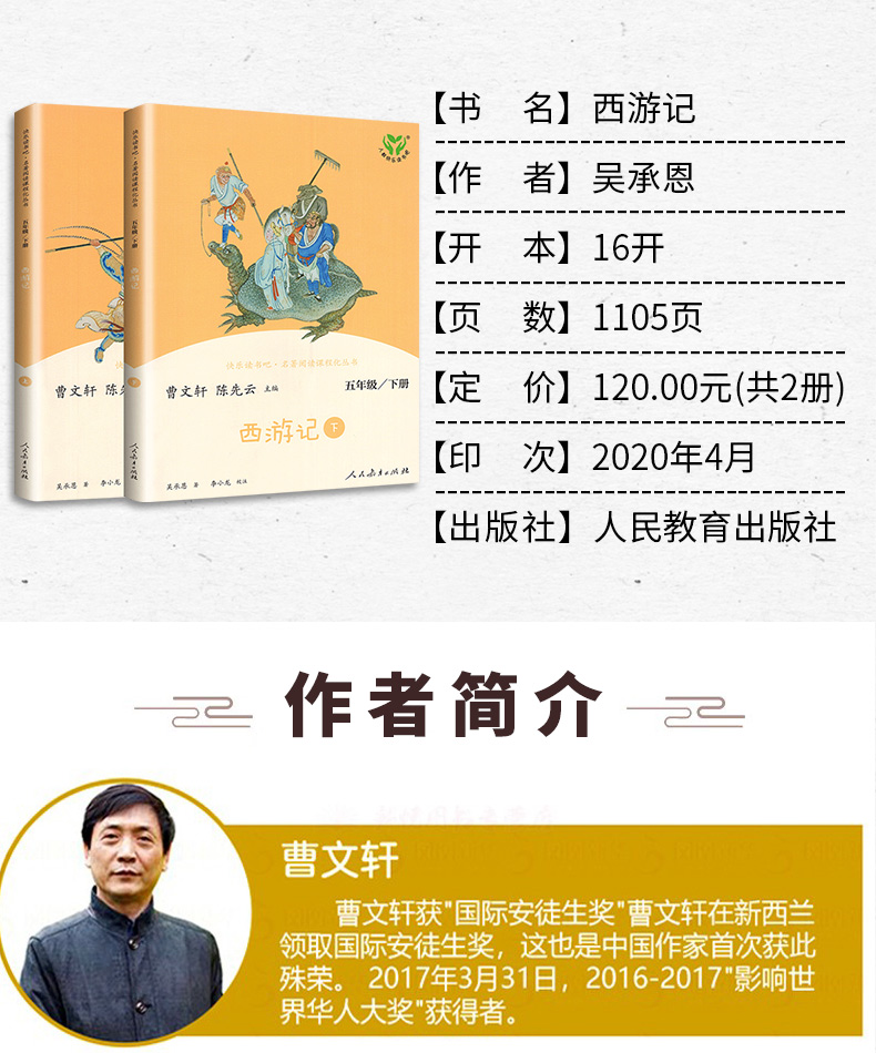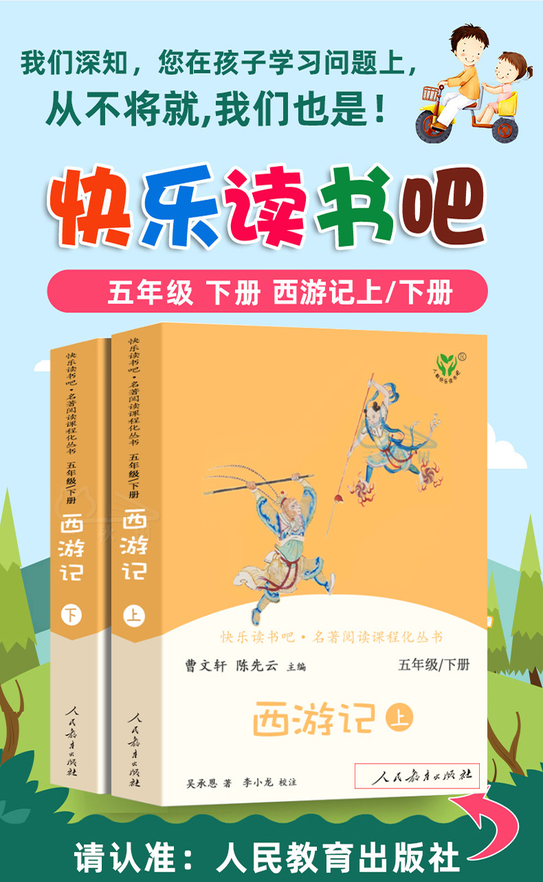 上下两册西游记原著正版人民教育出版社小学生版 五年级课外书必读老师推荐5年级课外阅读书籍白话文人教四大名著曹文轩快乐读书吧
