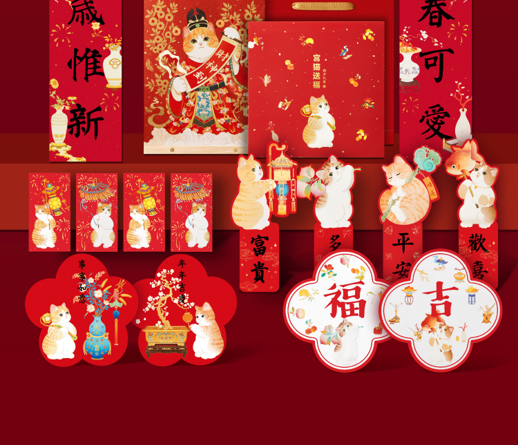 【故宫家居】2025故宫猫福盒蛇年新年春节对联春联福字静电贴